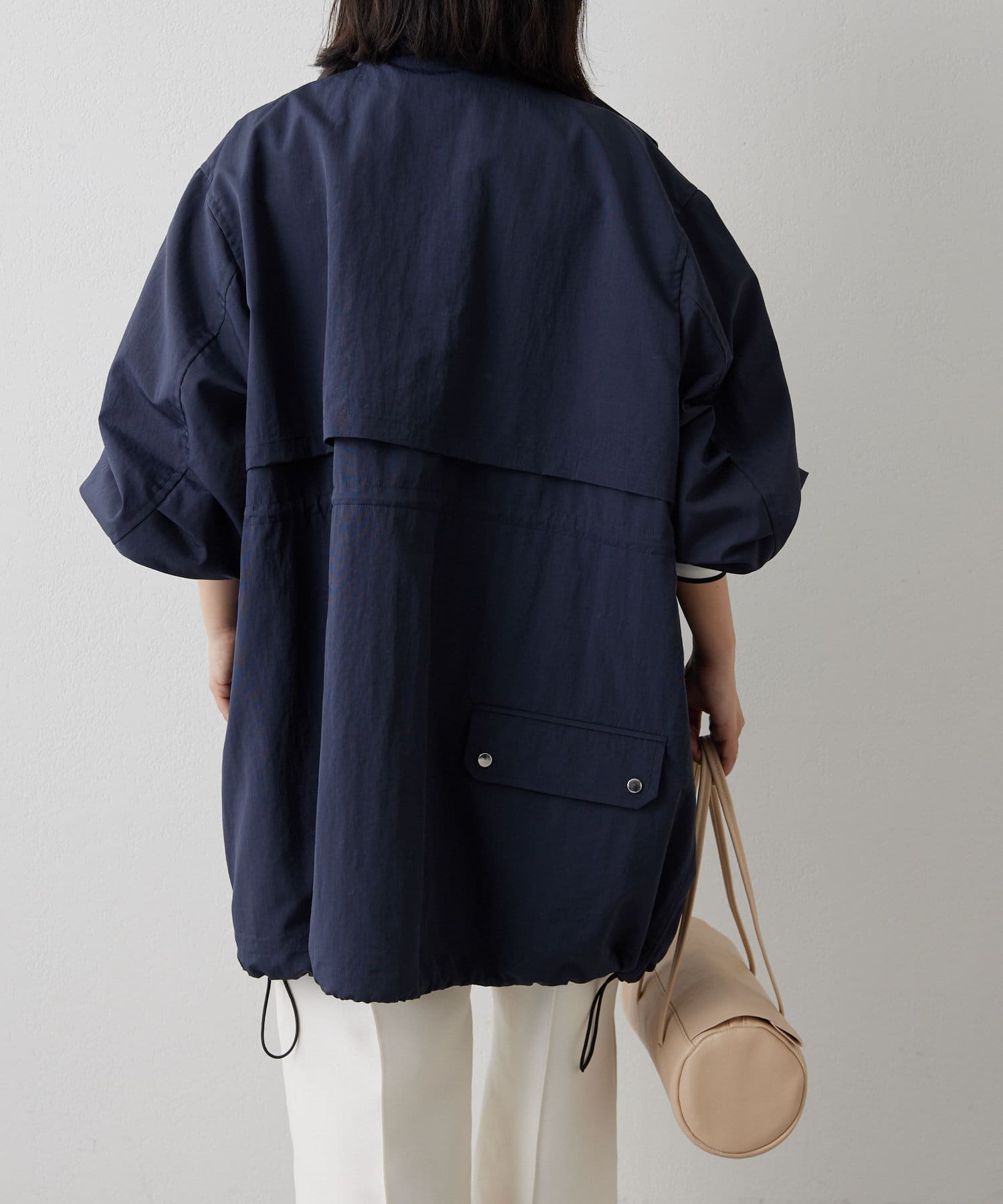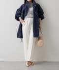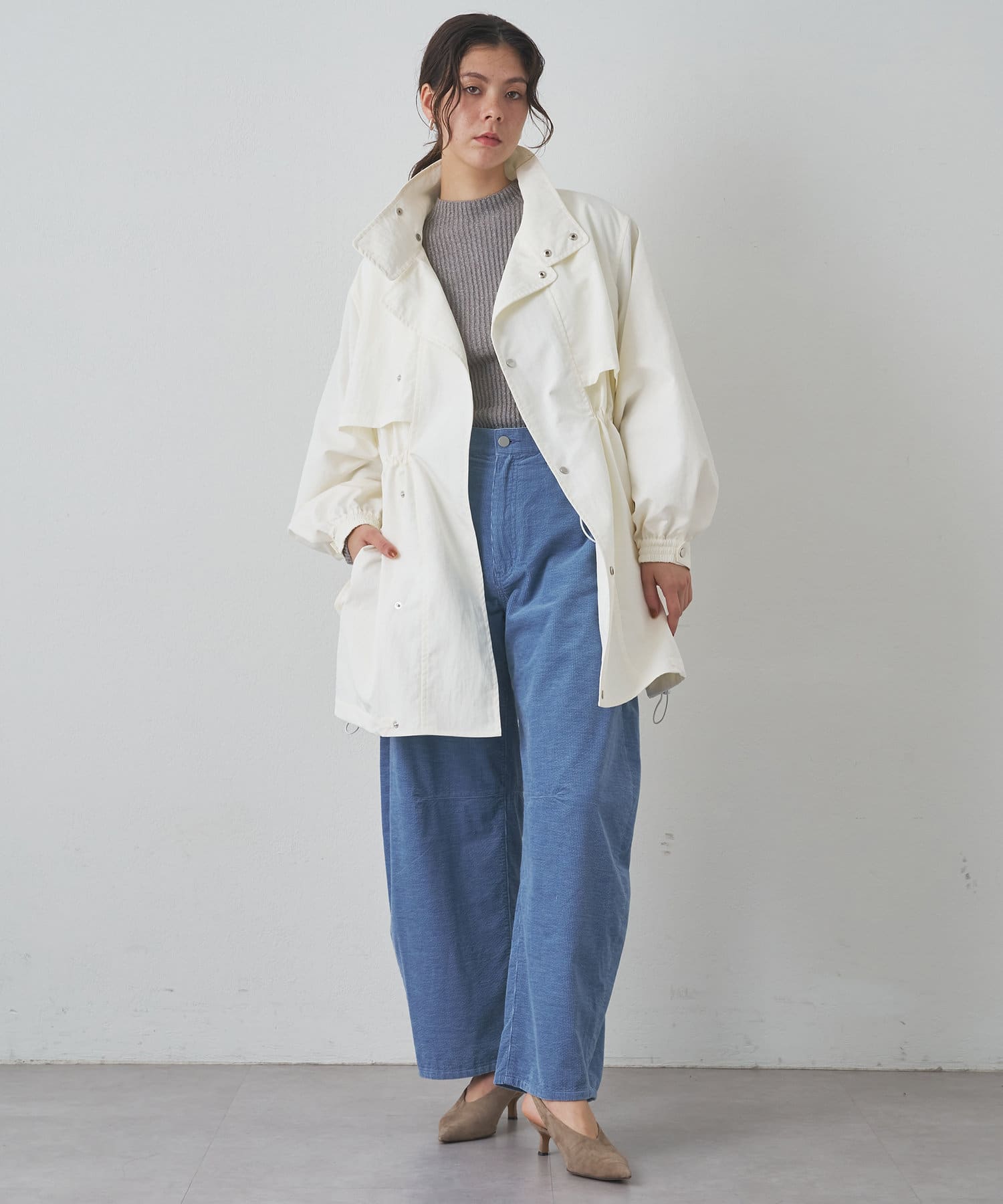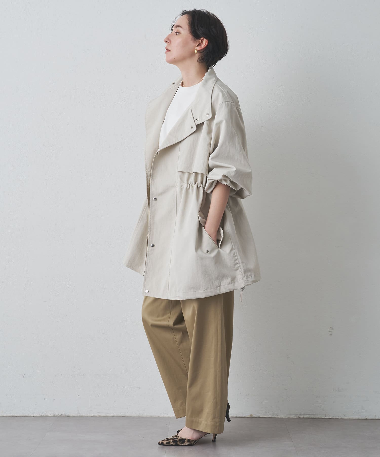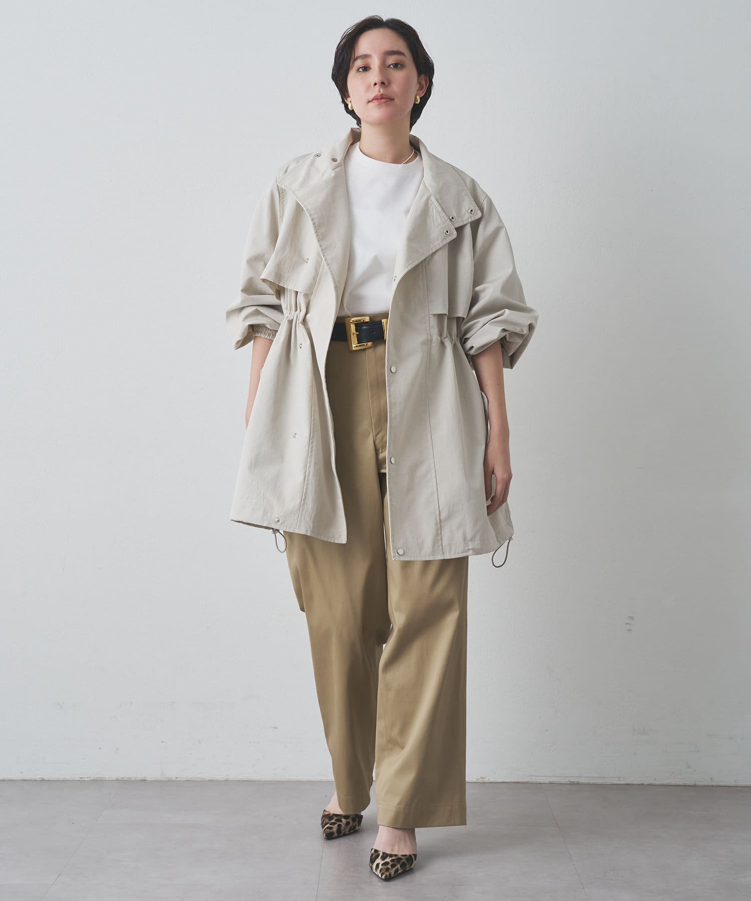 ニットの上からも羽織れるオーバーシルエットですが、ウエストと袖口をキュッと絞れるデザインになっていてメリハリのあるスタイルを作ることができます◎