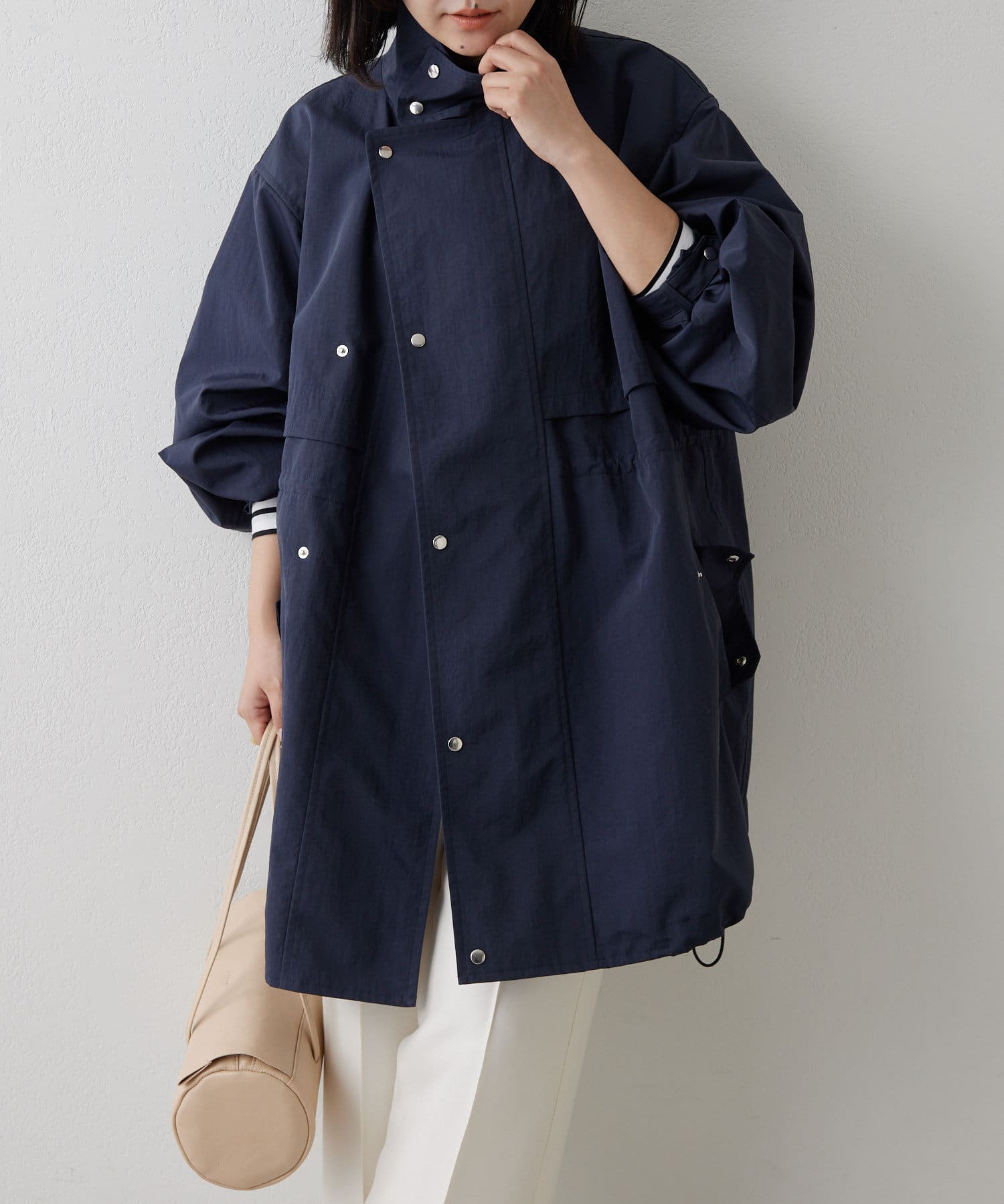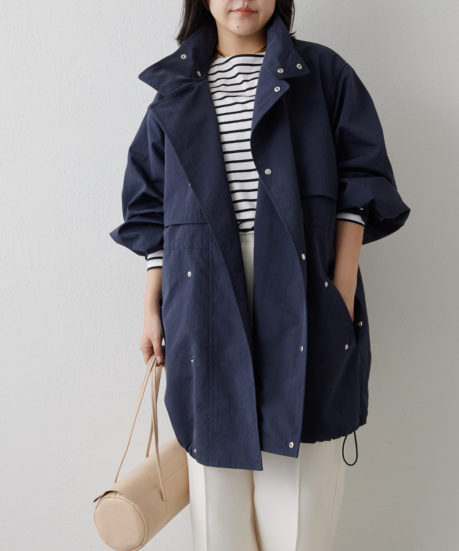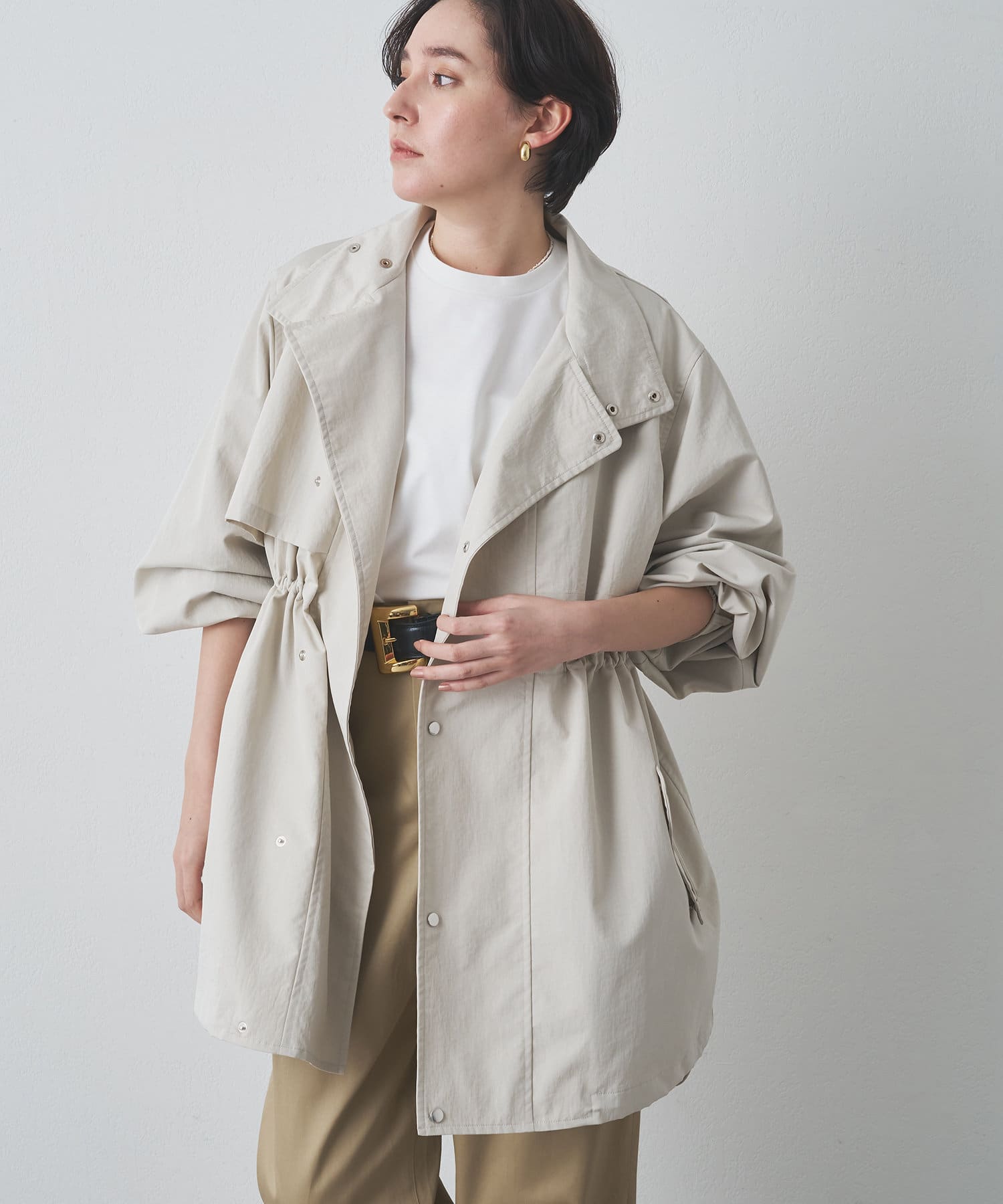 フォルム感がきれいに出る、ドライタッチなナイロンコート