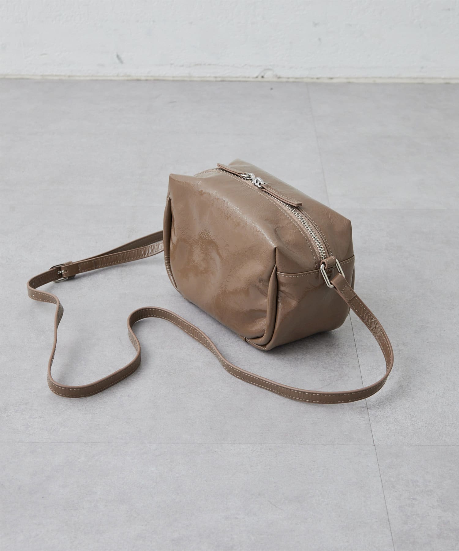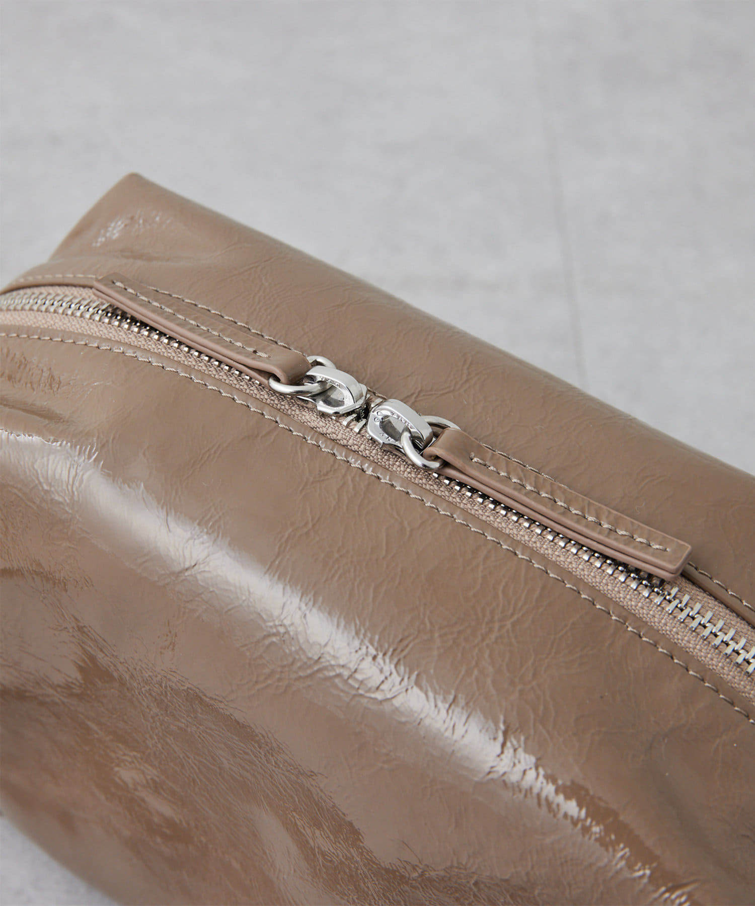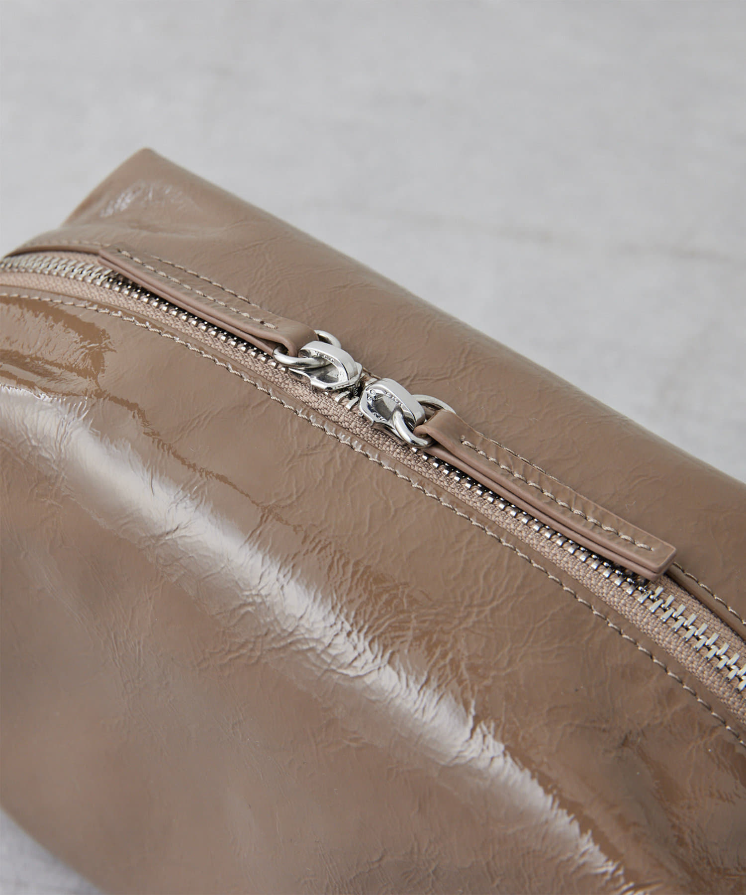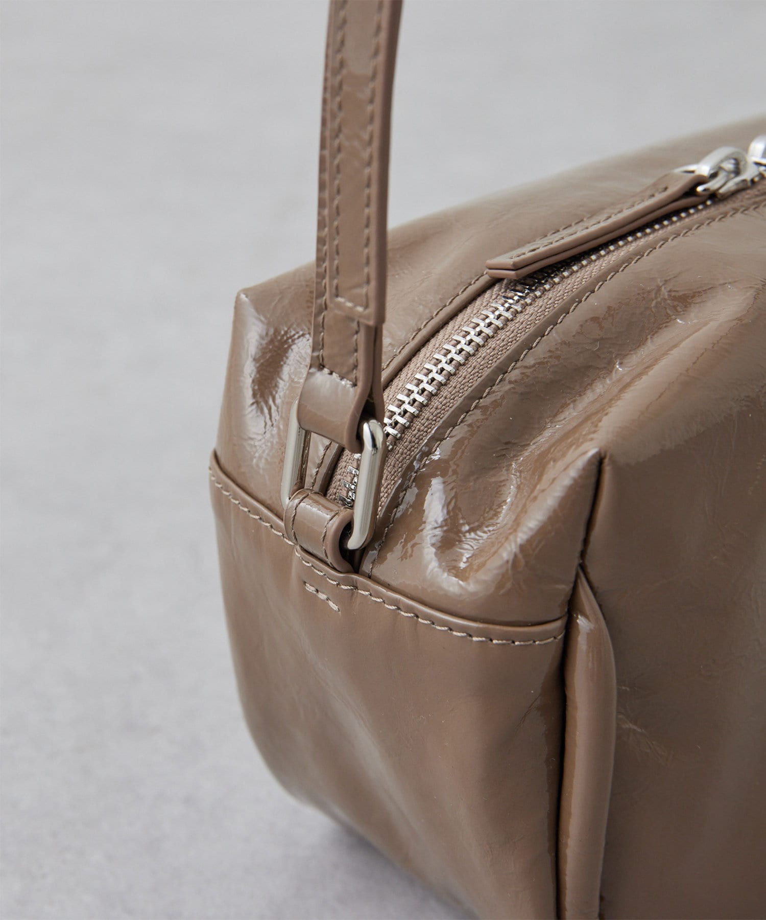 ■パテントの艶感が女性らしくもエッジの効いた印象に。