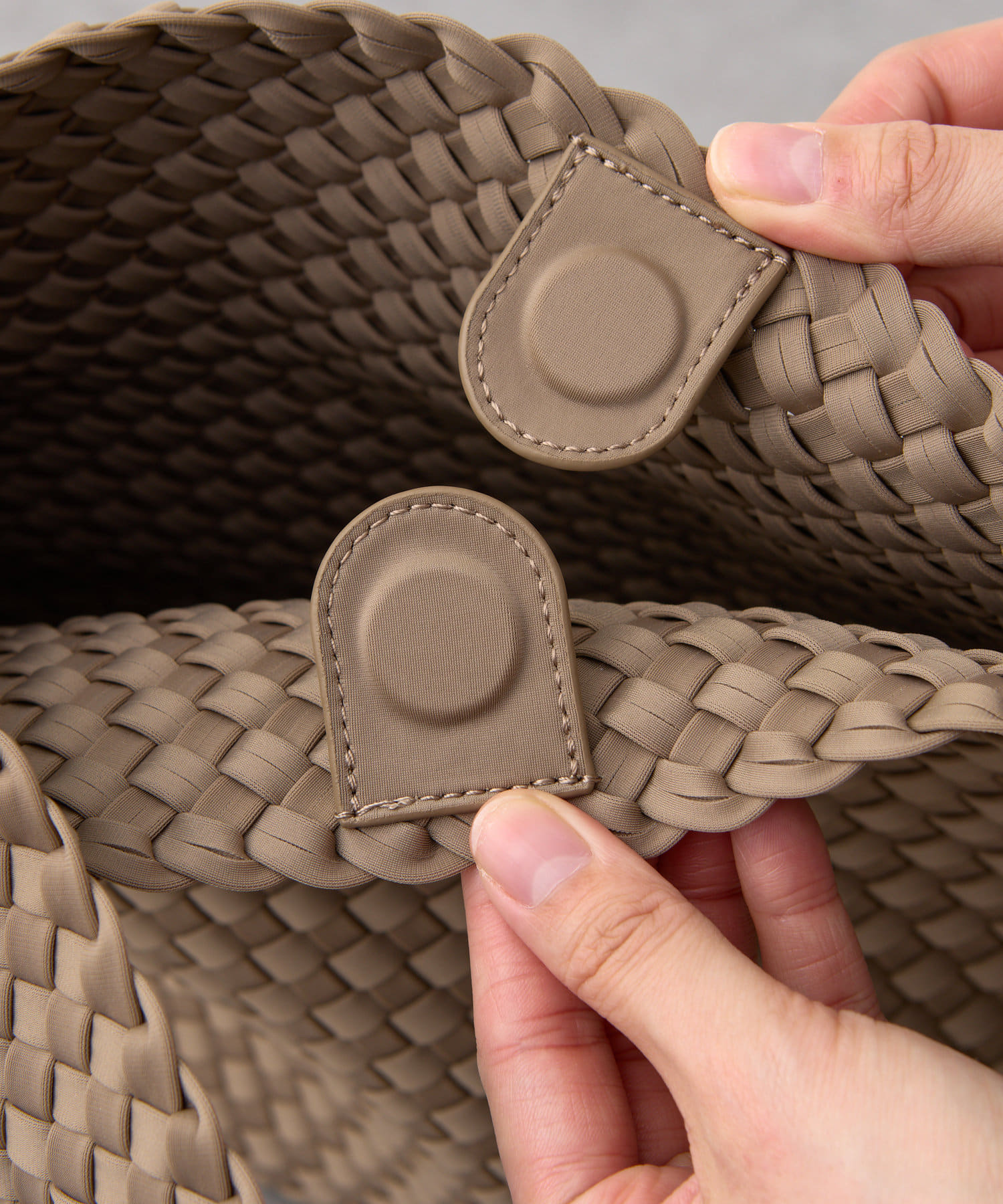■軽量で防水性に優れたネオプレン素材で作られたトートバッグ。