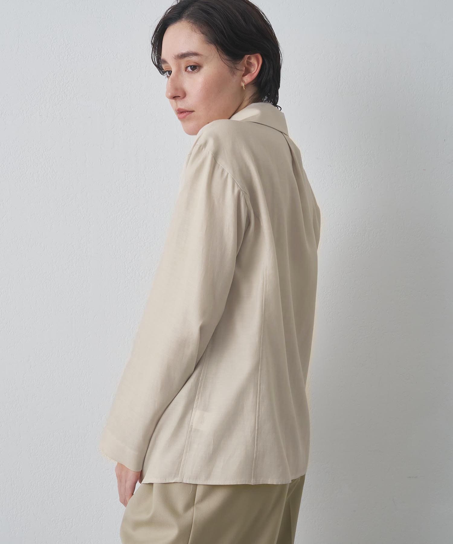 サラッとシャツのように羽織れるジャケットは、素材感の良さもポイント。お家で洗える扱いの良さも◎インして着るのもおすすめです!
