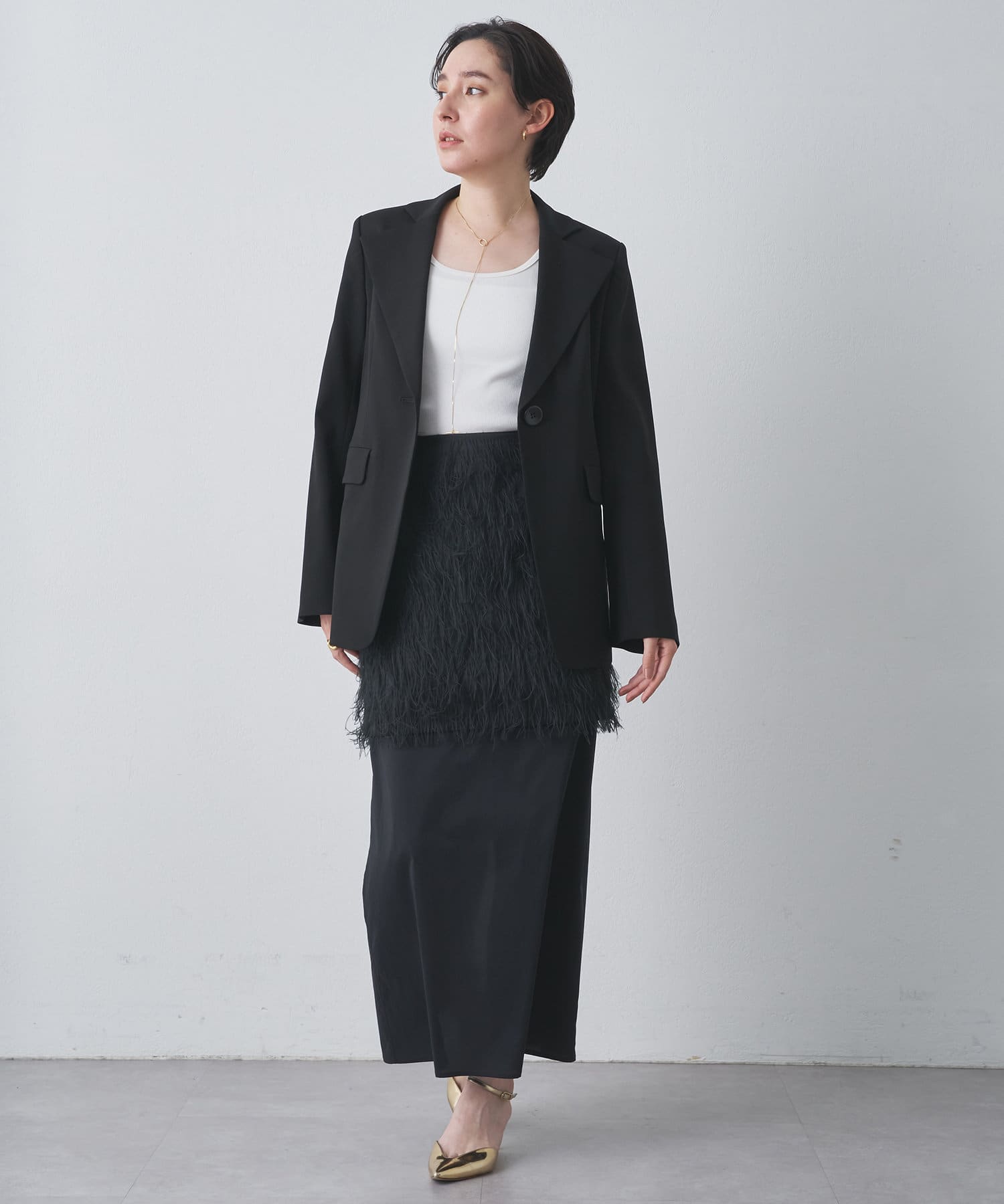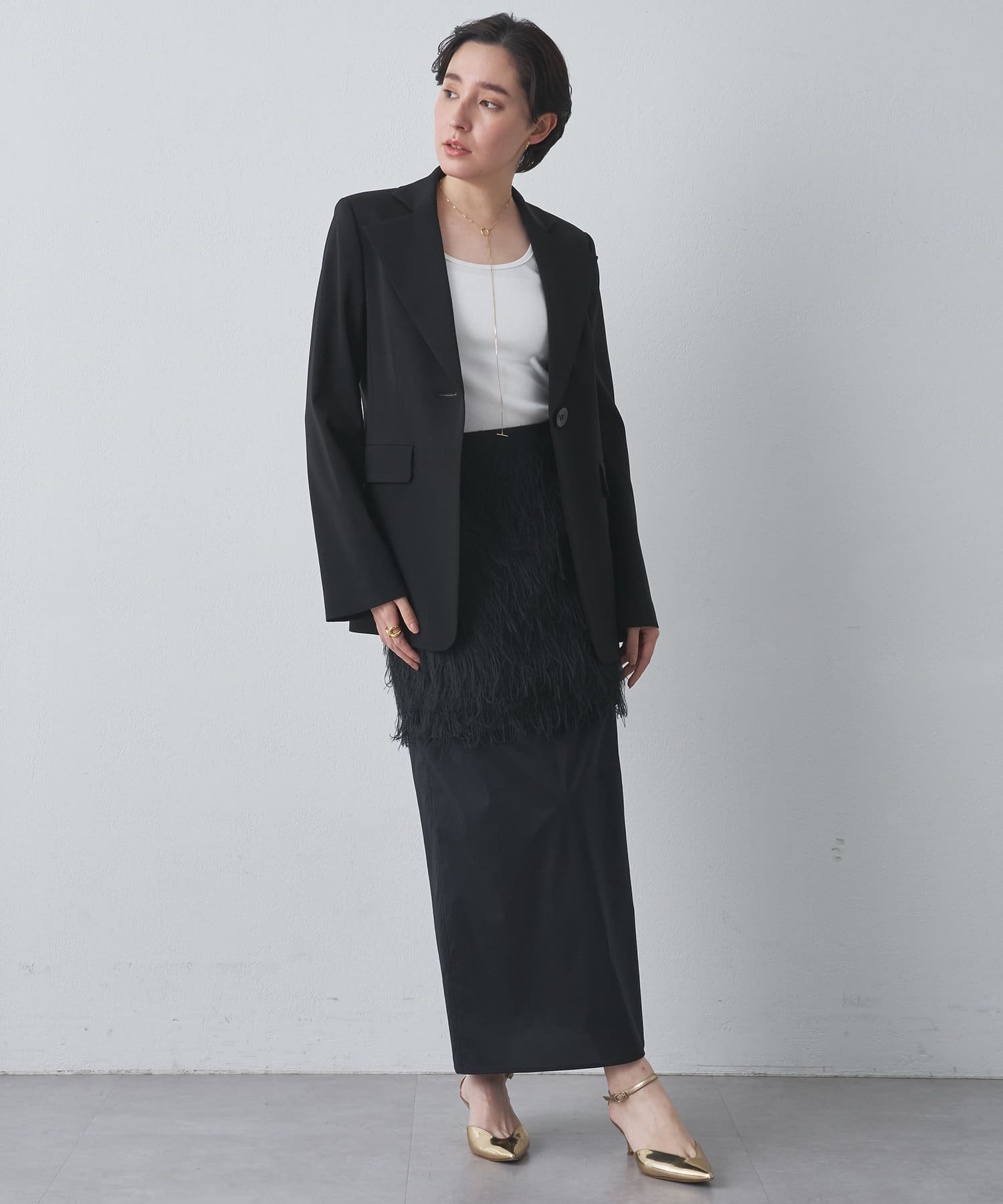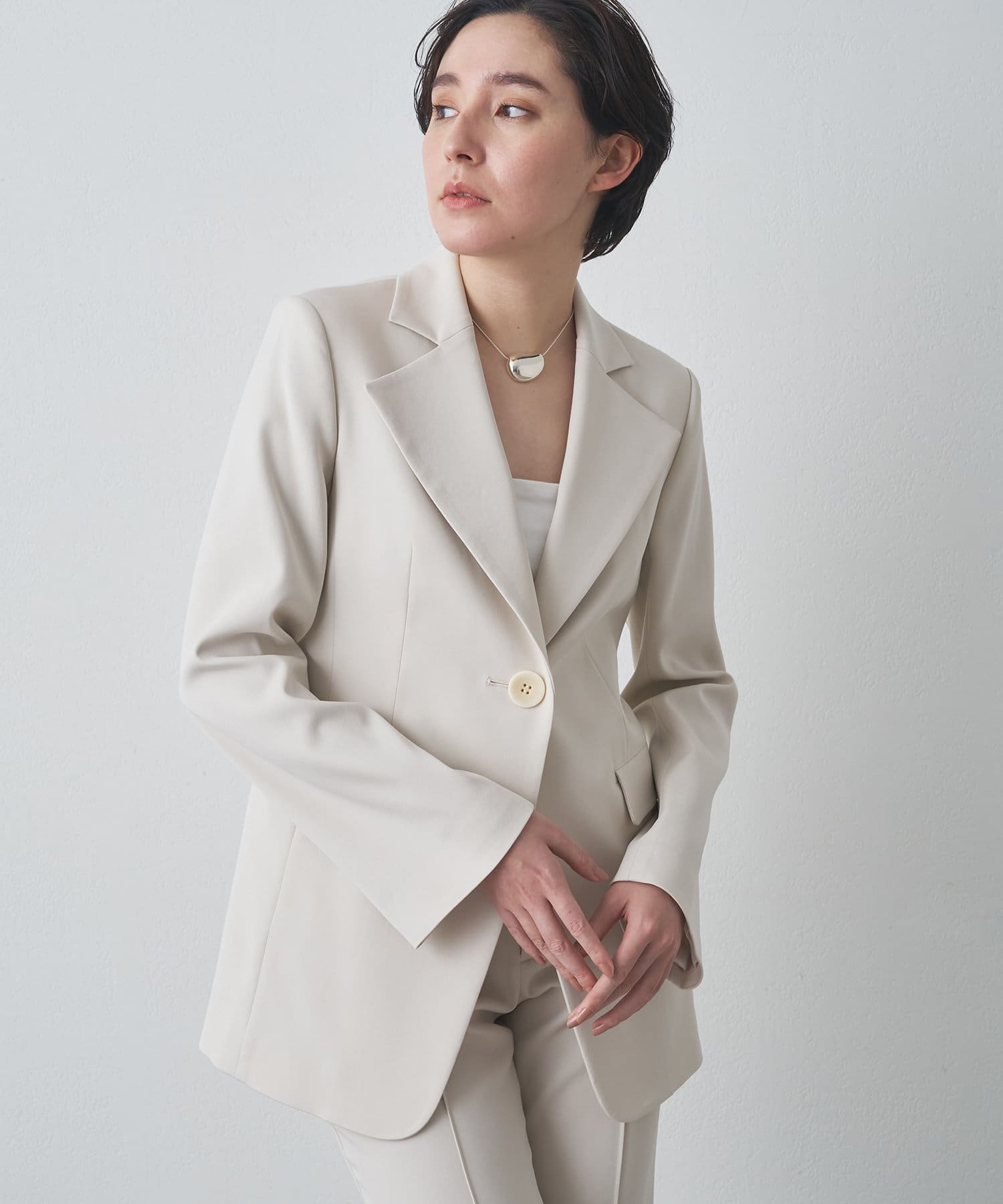 デザインはウエストシェイプ、シングルボタンですっきり綺麗めな印象で着られます!