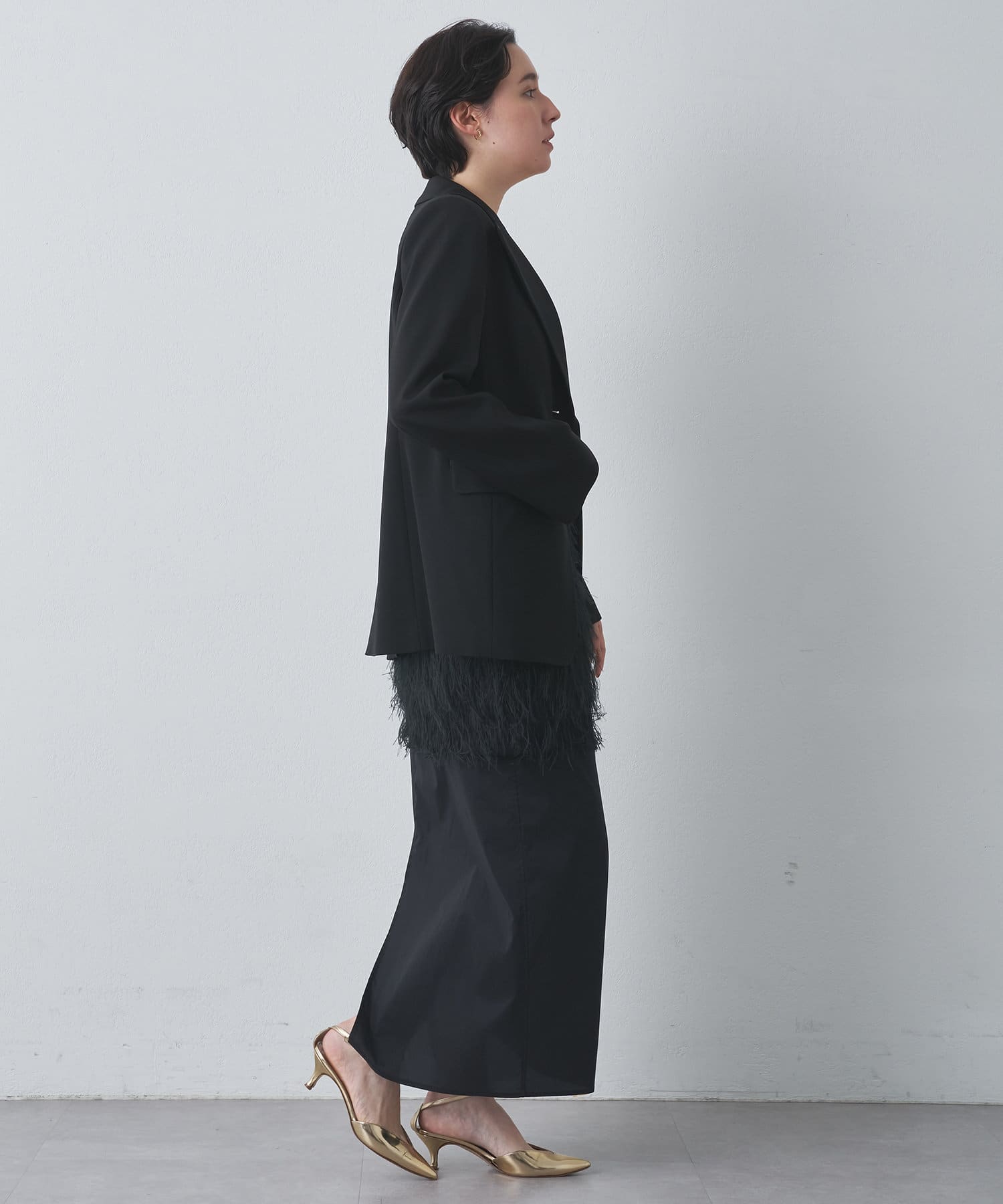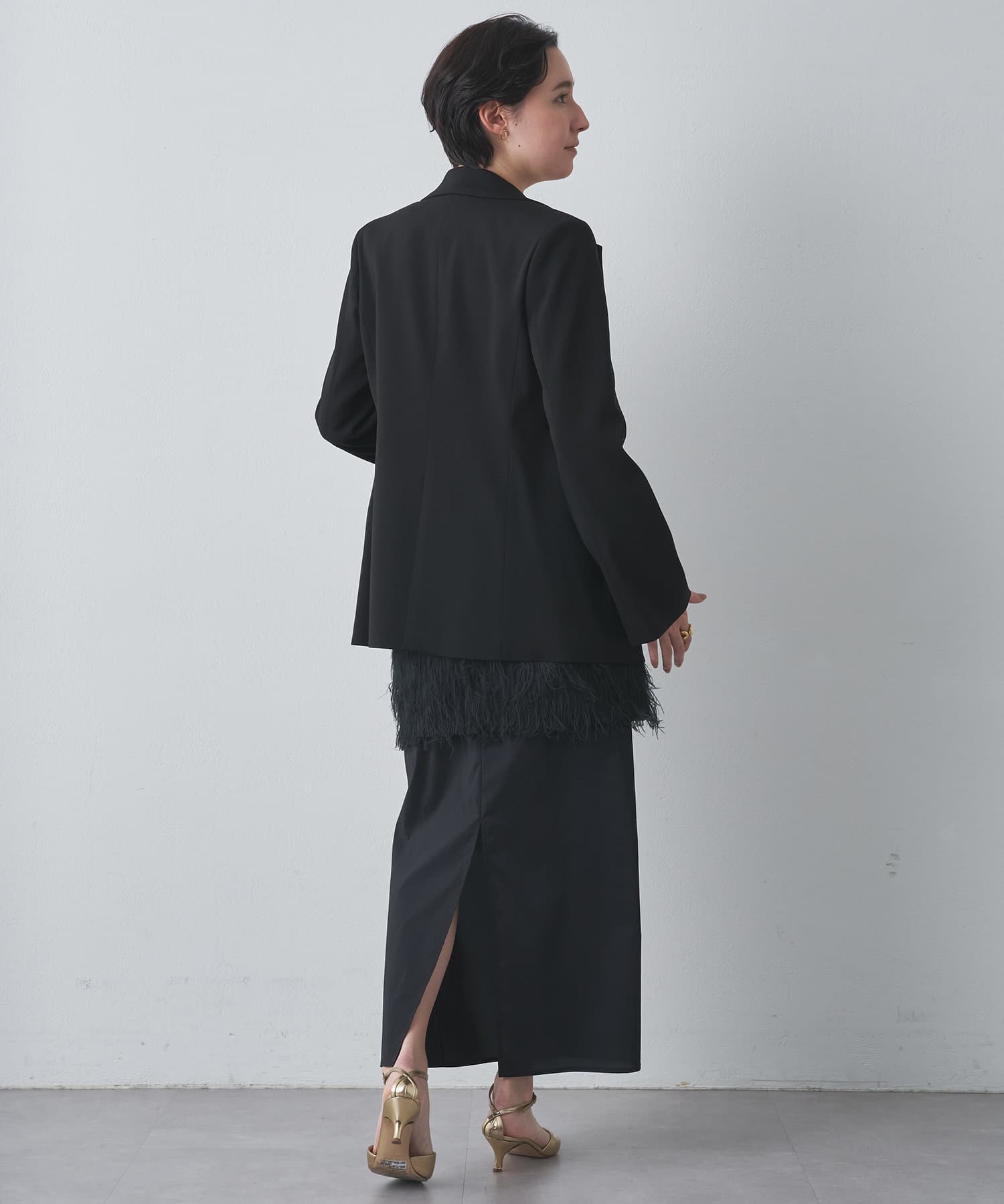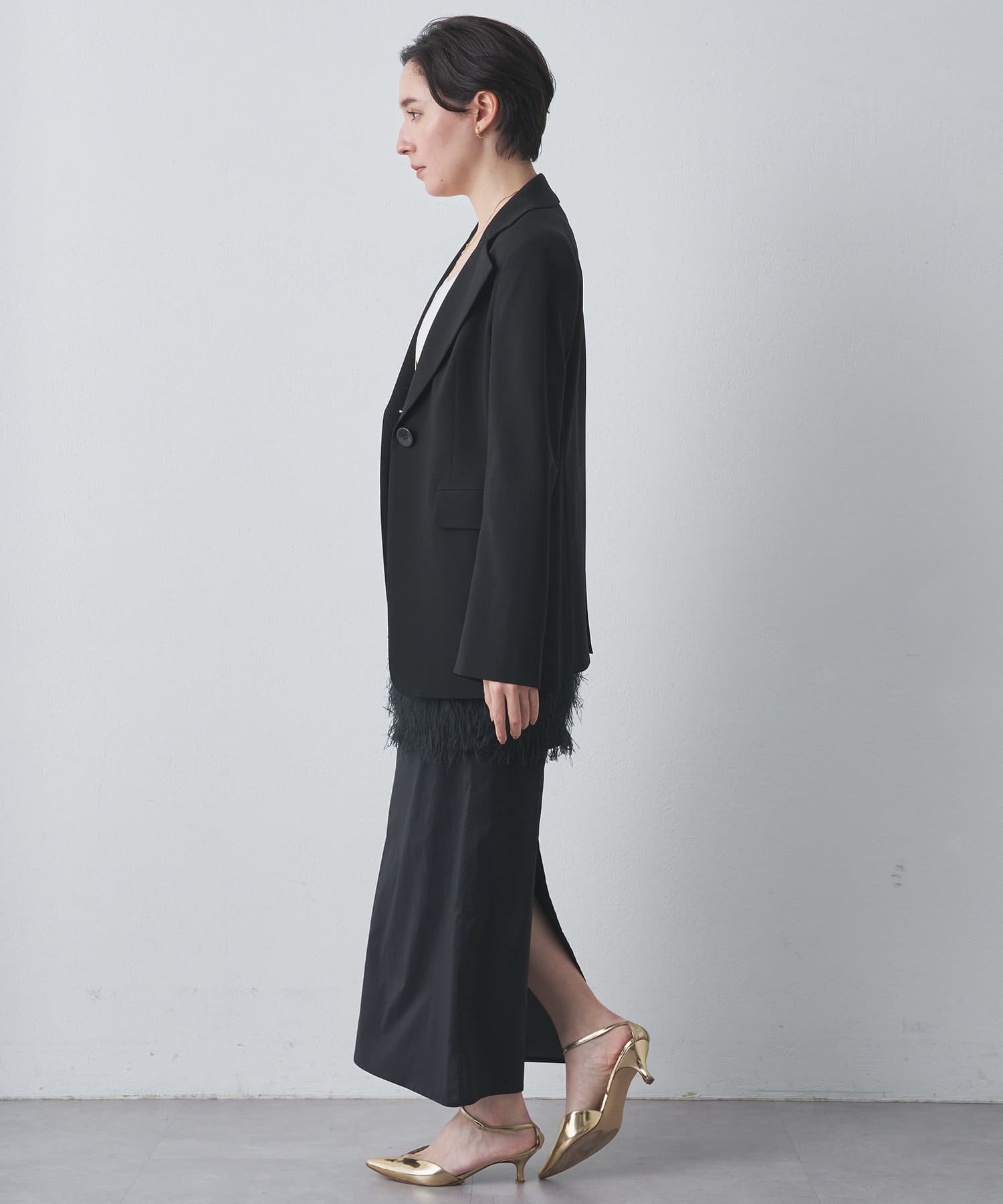 デザインはウエストシェイプ、シングルボタンですっきり綺麗めな印象で着られます!