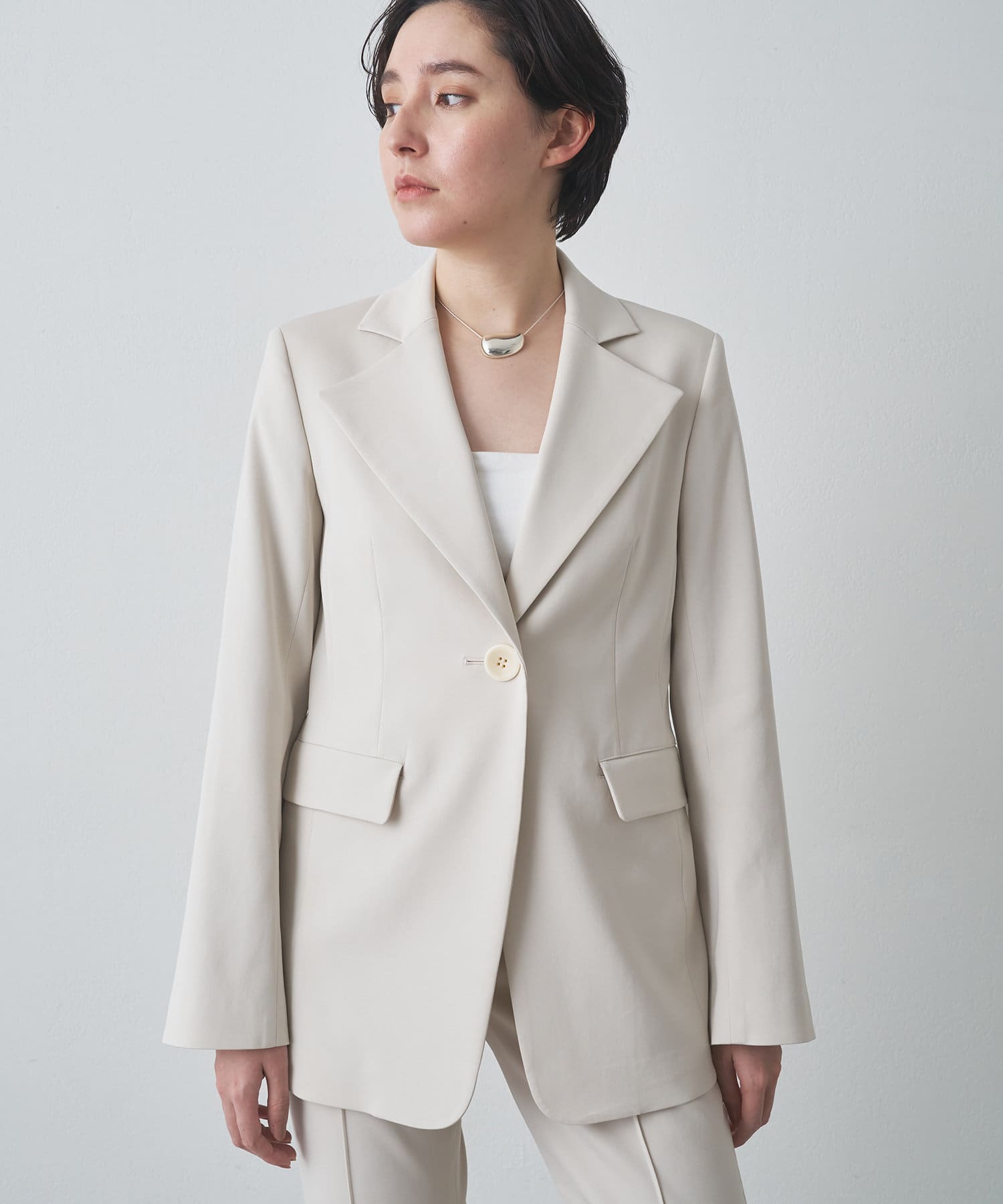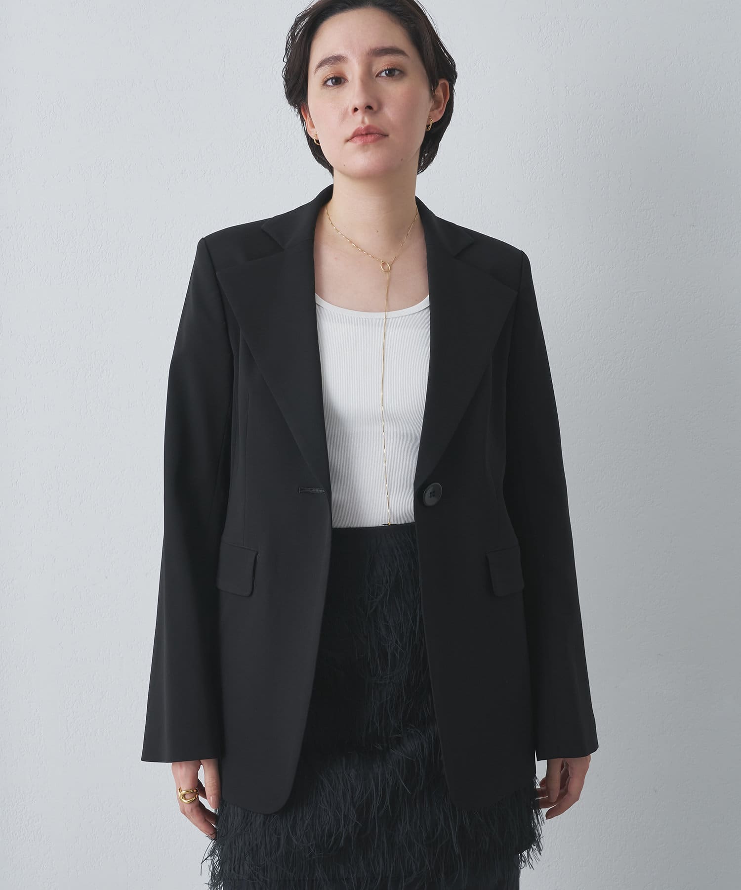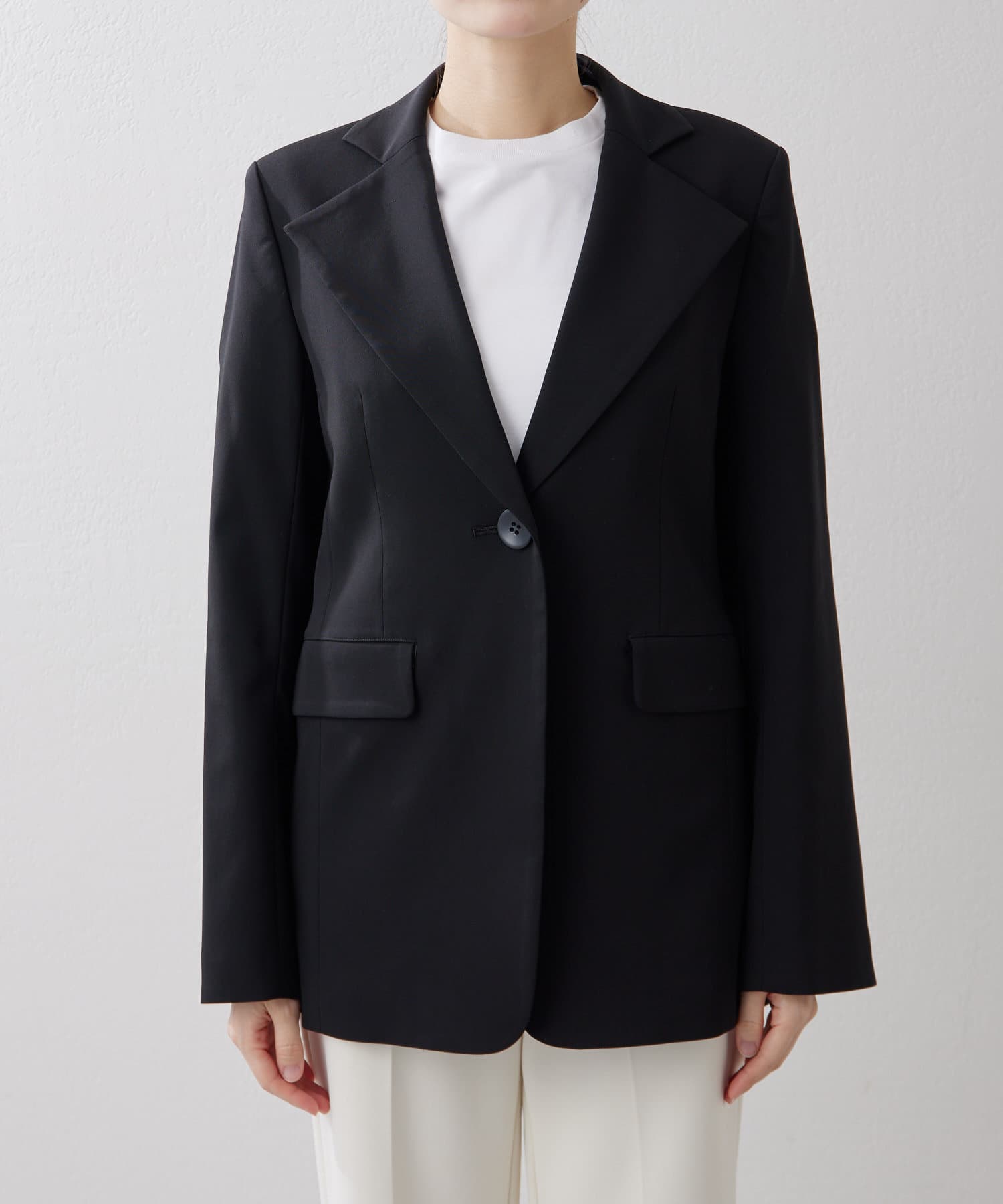 ■大きめのラペルと大きめの一つ釦がポイントのジャケット。