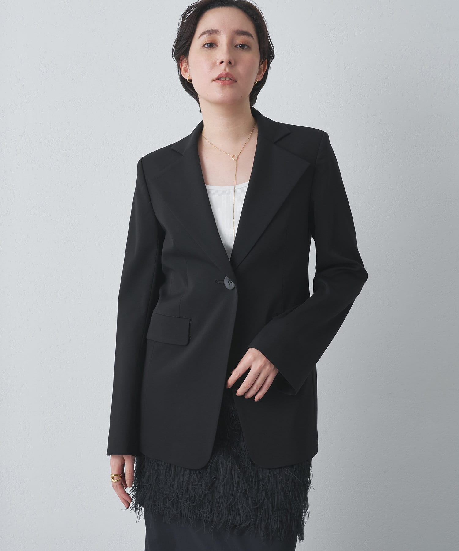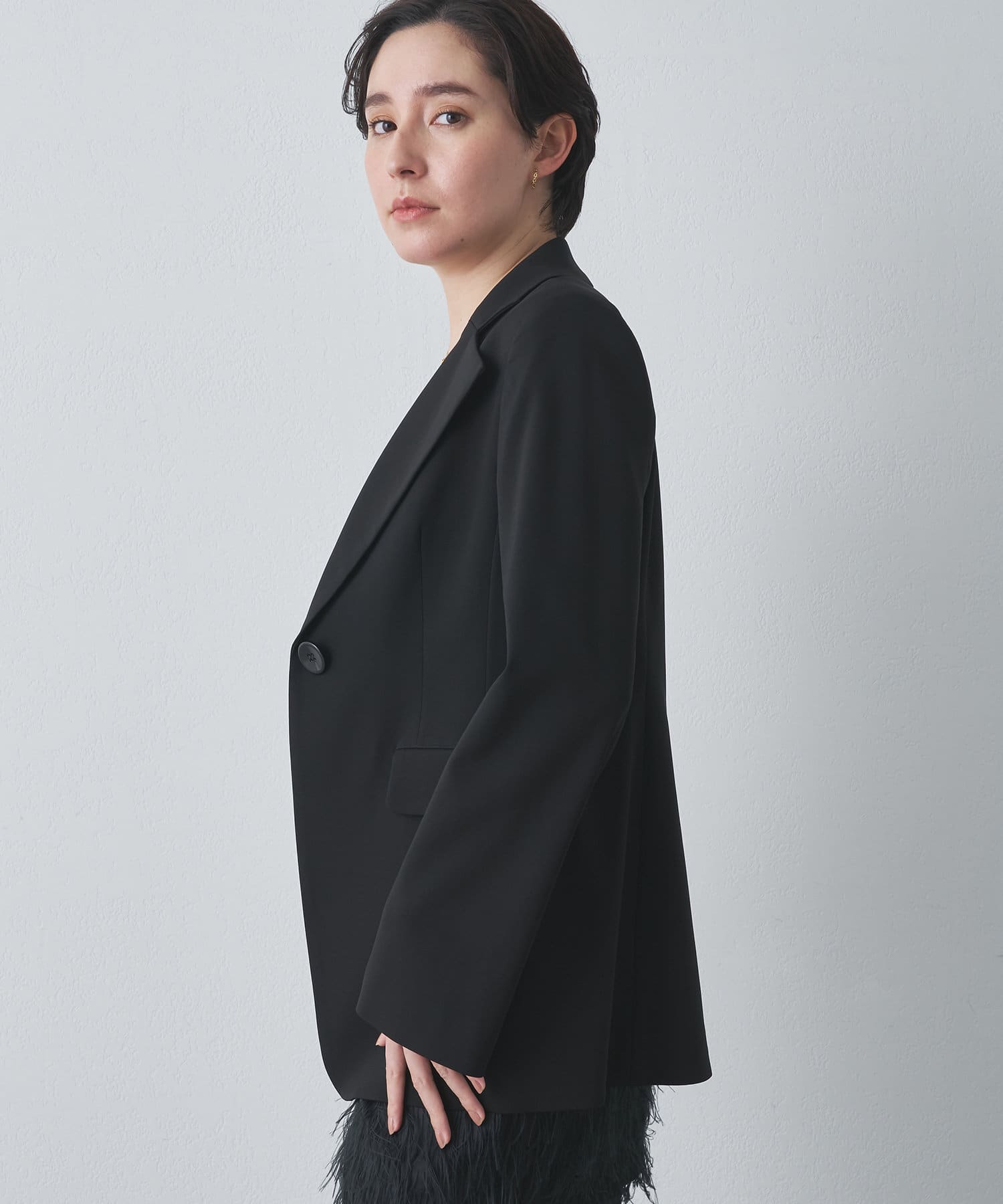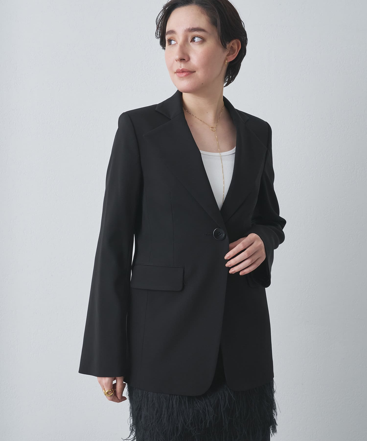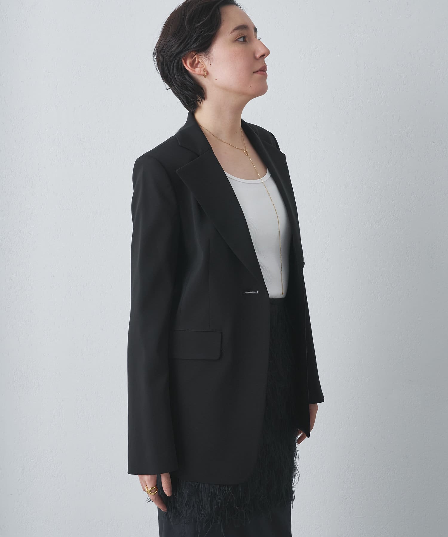 ■大きめのラペルと大きめの一つ釦がポイントのジャケット。
