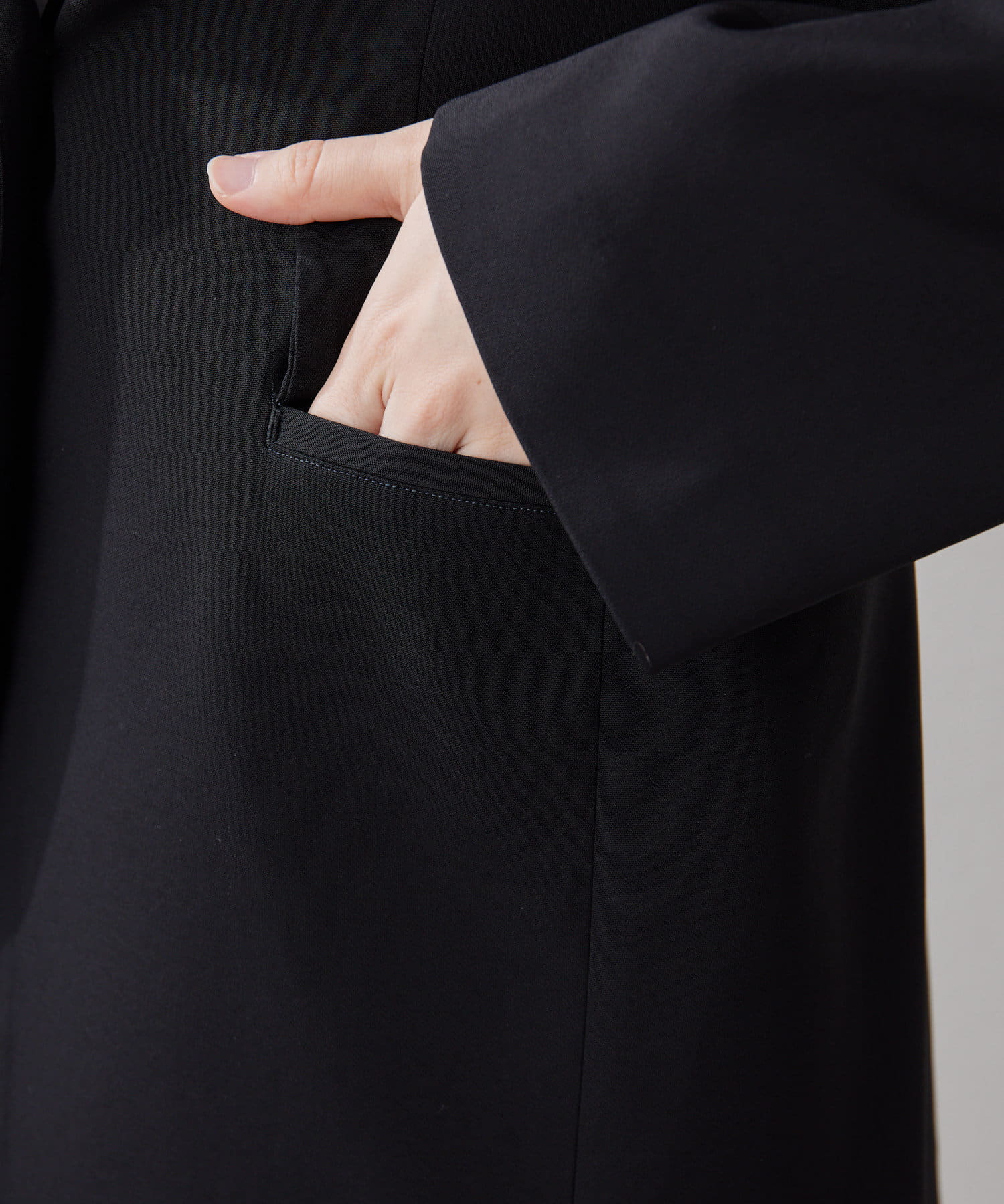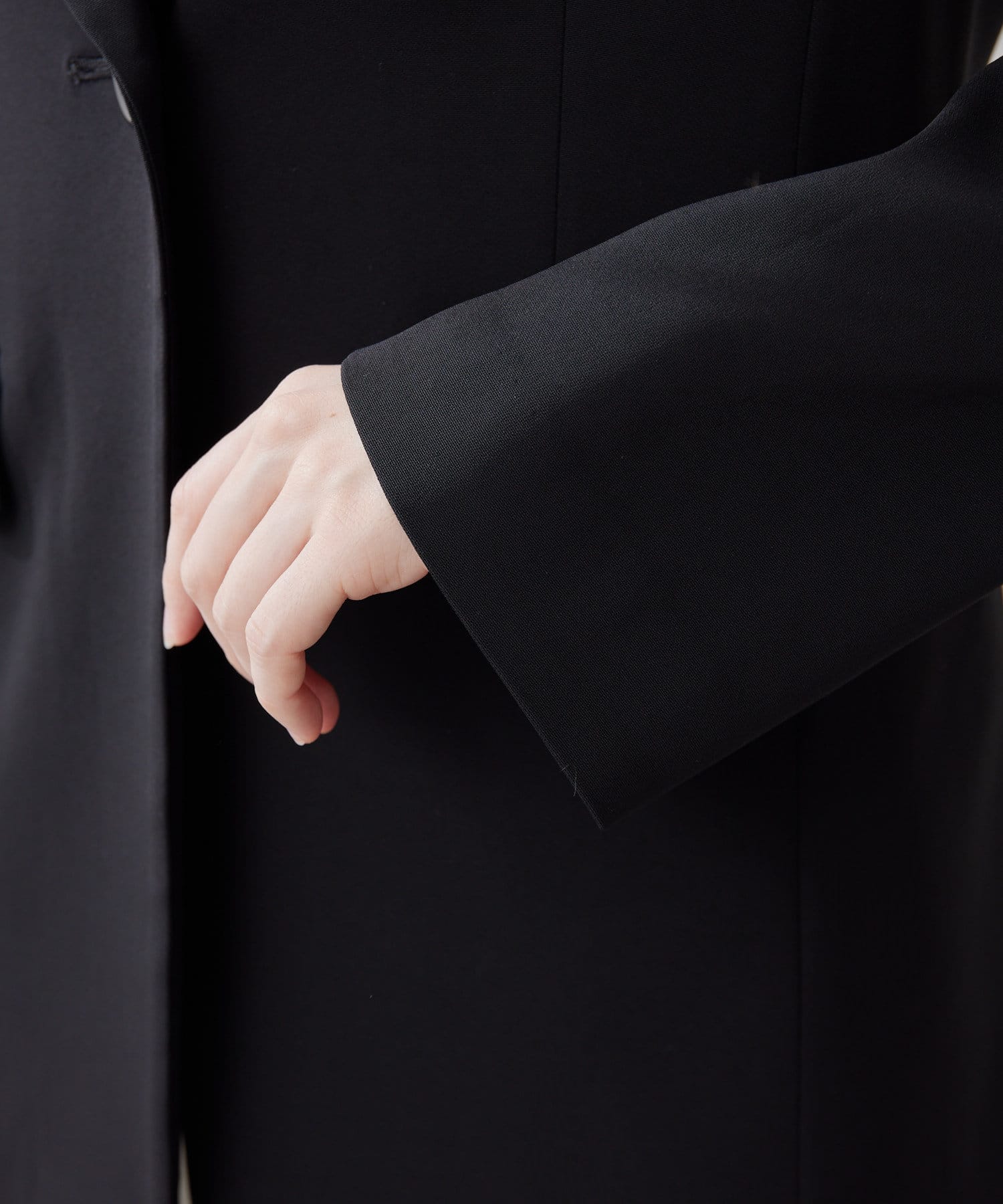 少し広めのお袖と大きめの襟もポイントで、ボタンを閉めて着てもエレガント。ボタン位置が高いので、スタイルアップ効果もあります!