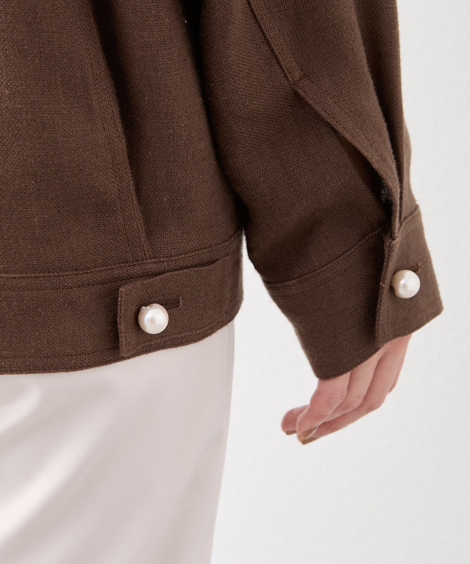 ■パールボタンがアクセントになり、カジュアル感を抑えて上品な印象に。