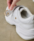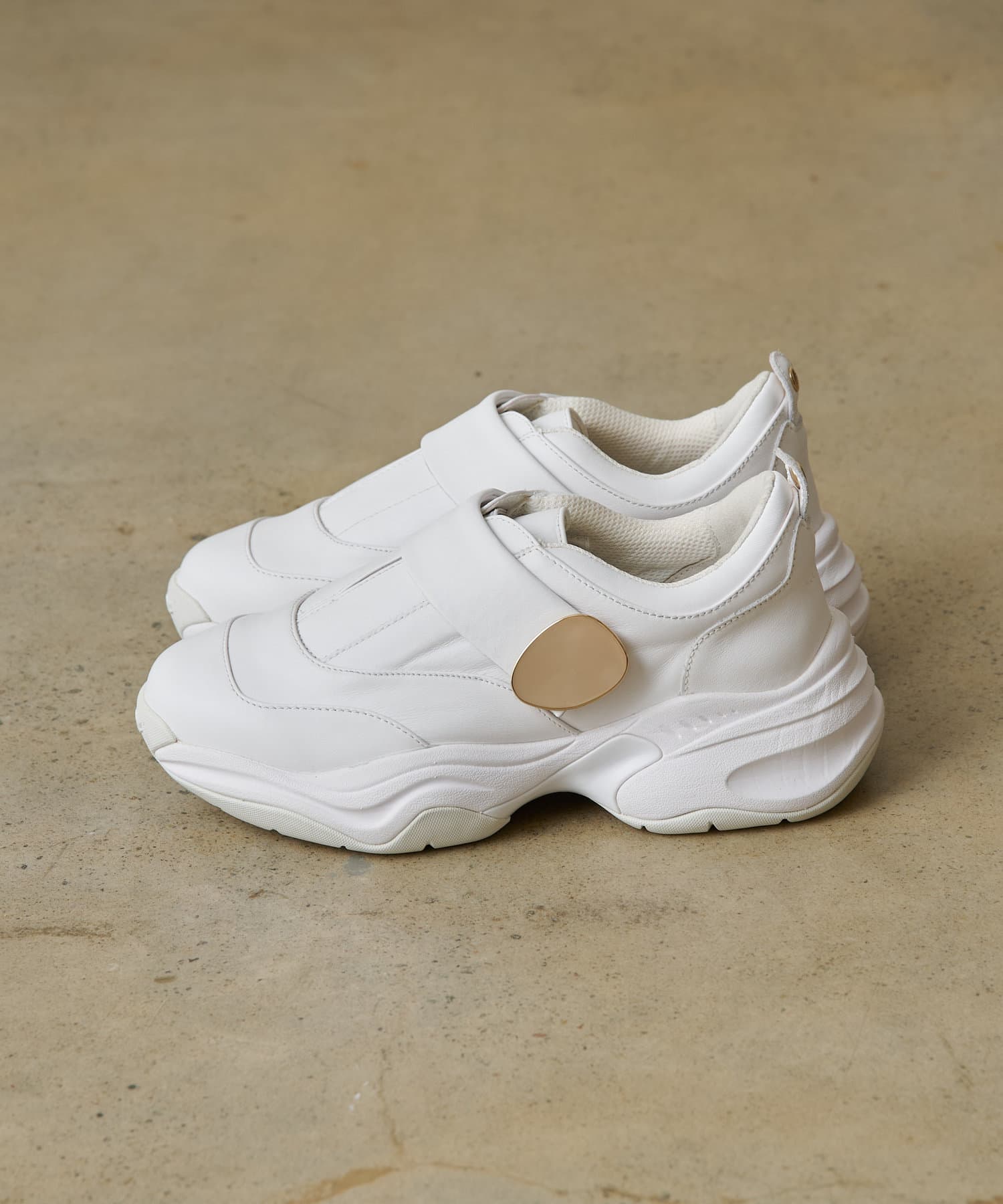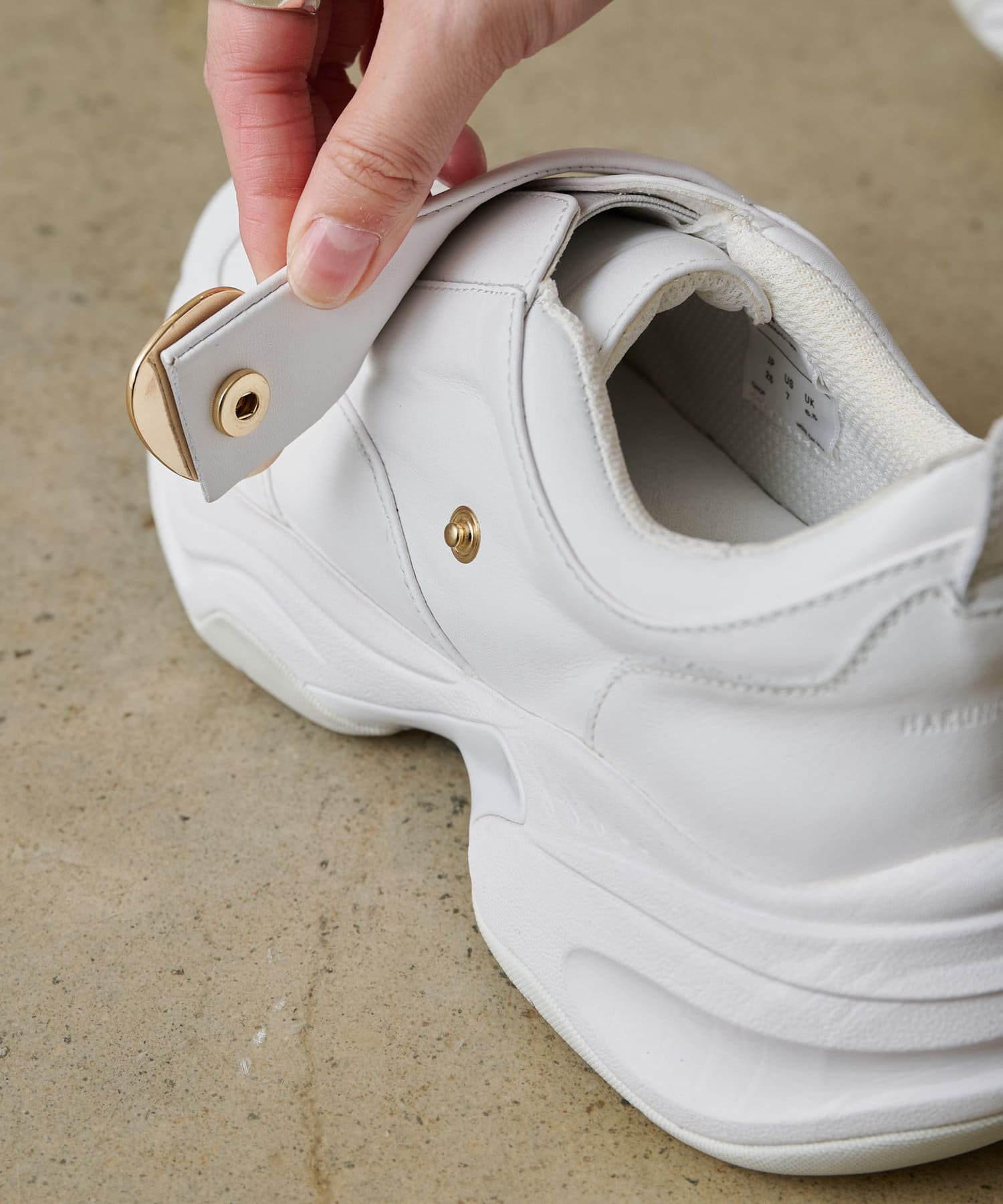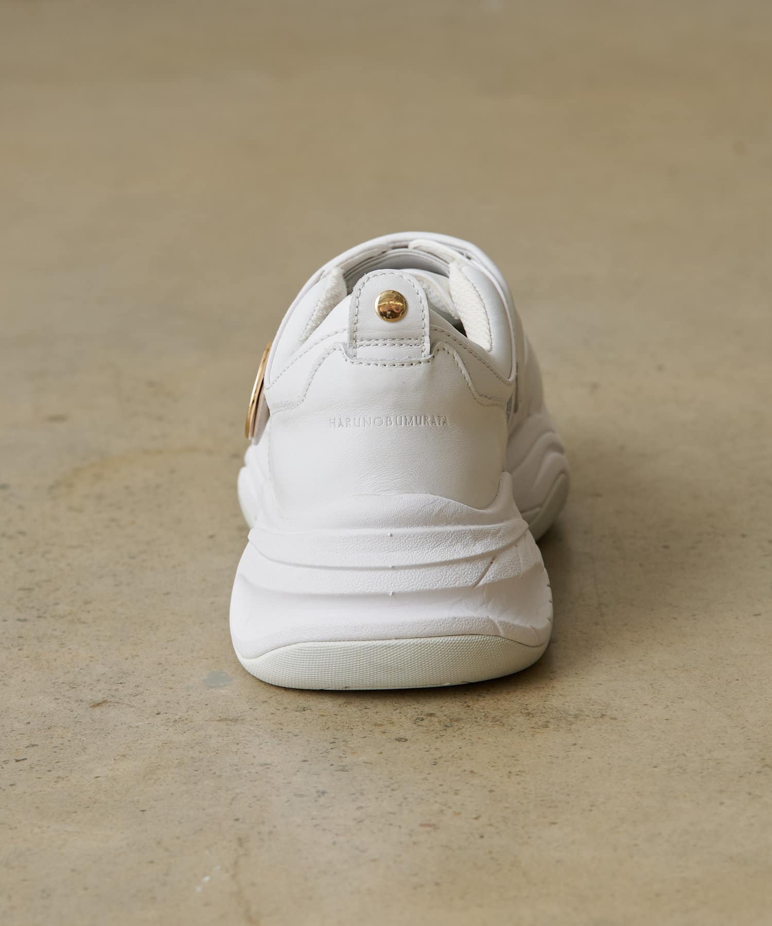 ■ハルノブムラタを象徴するディティールであるゴールドプレートをあしらった上品なスニーカー。