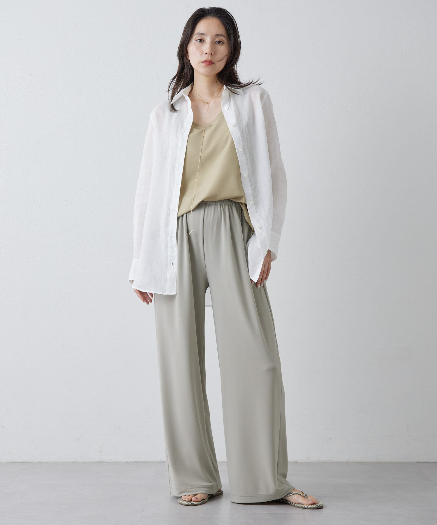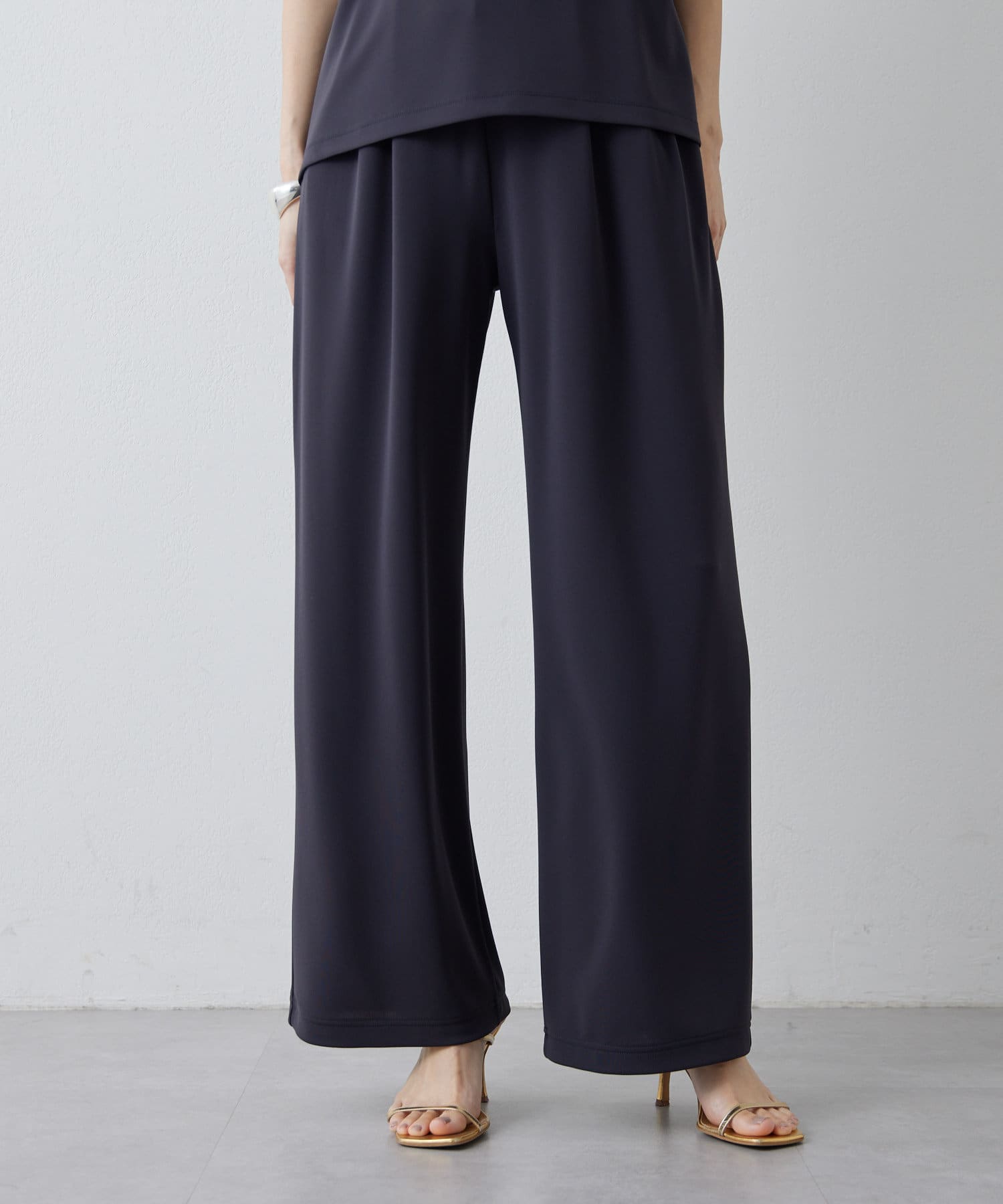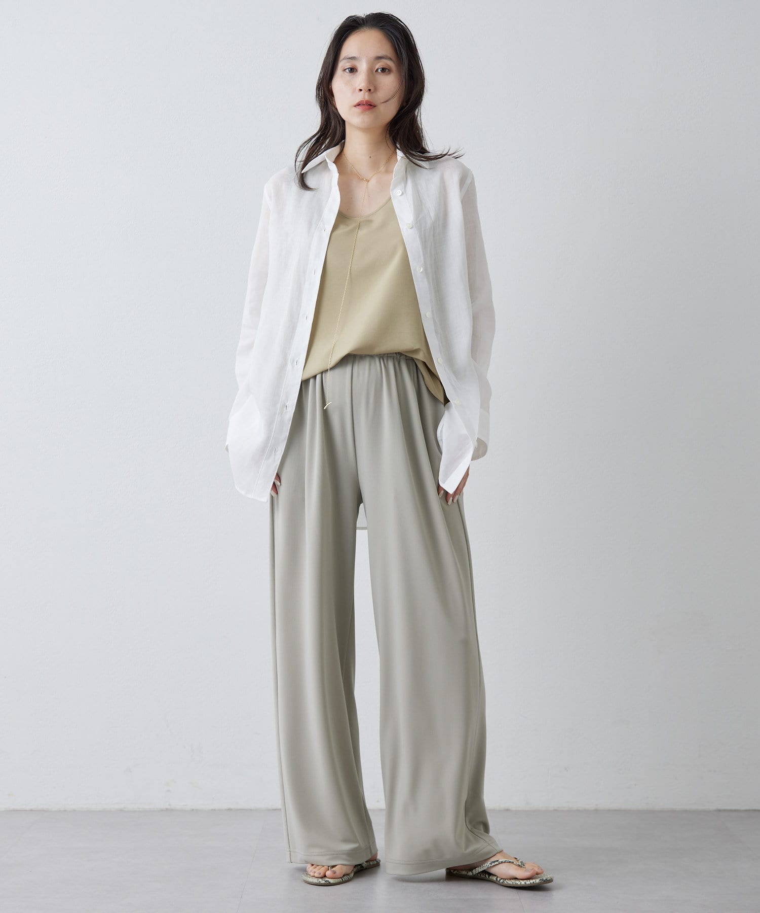■素材の風合いを活かしたリラックス感のあるワイドパンツ。