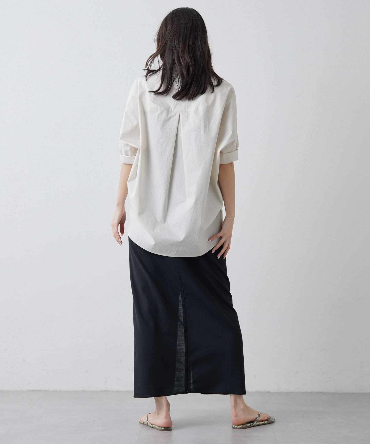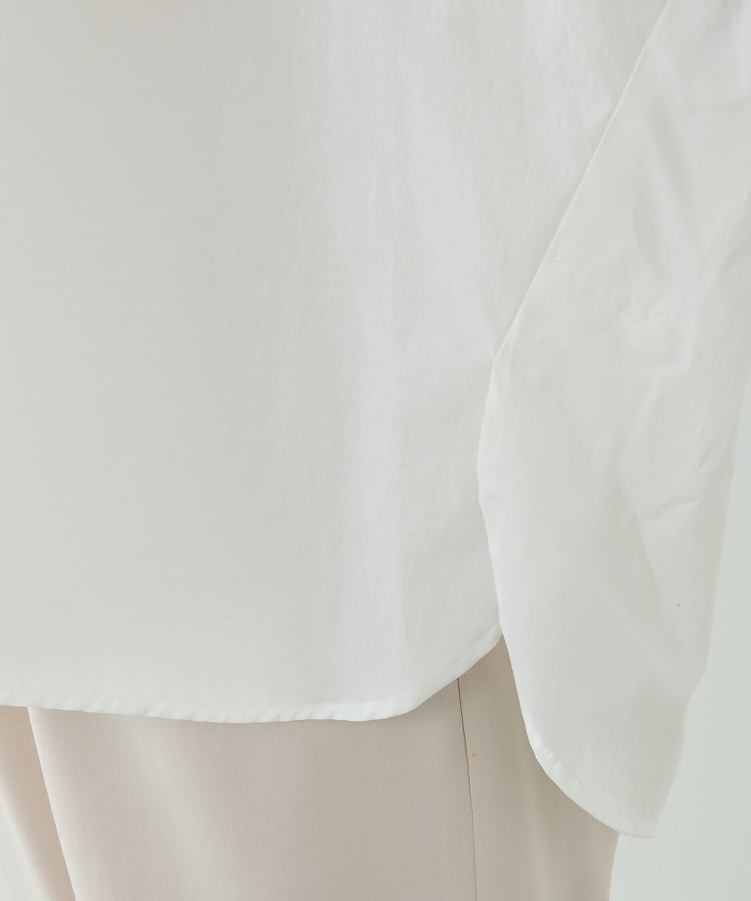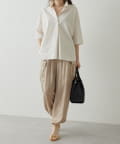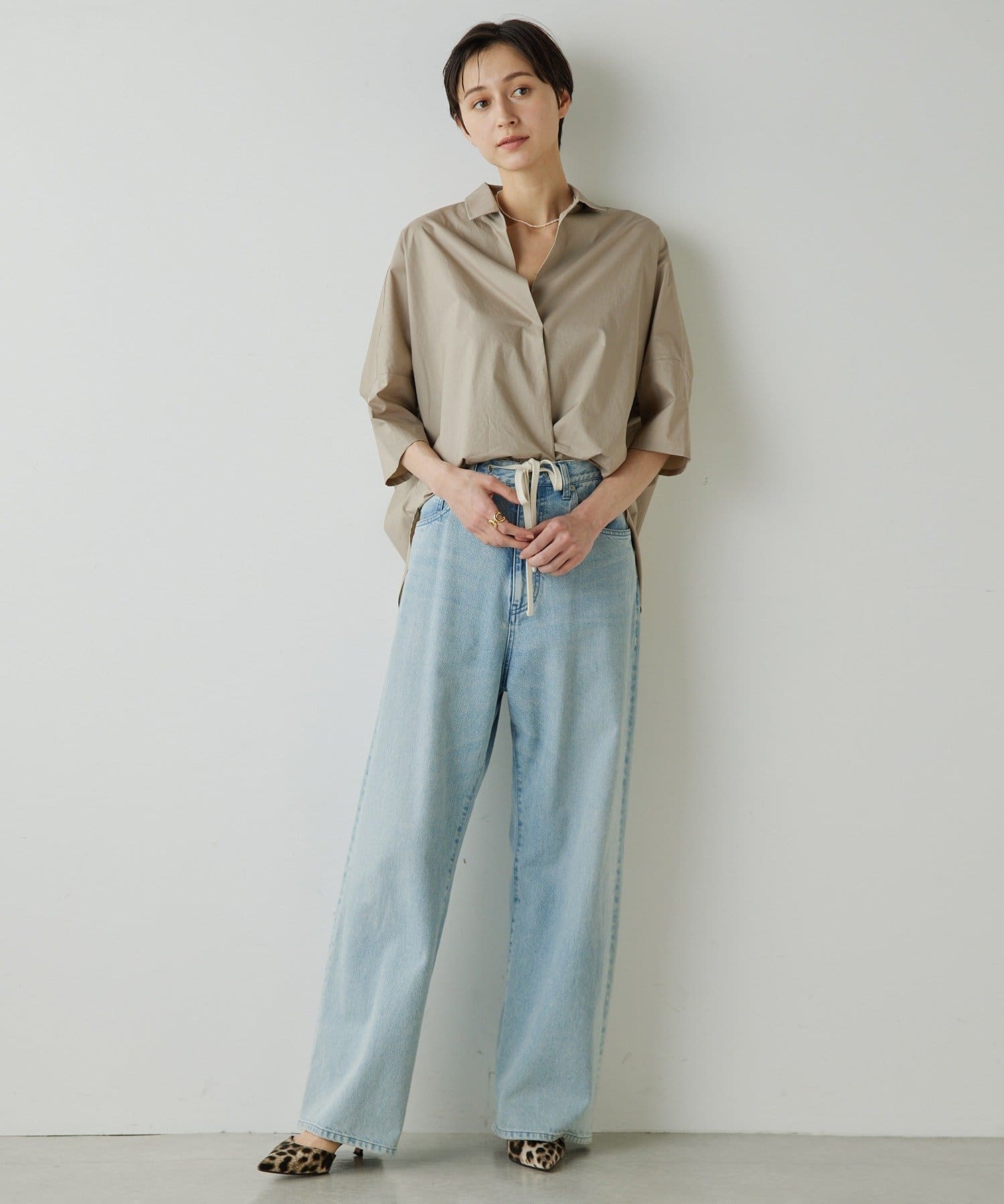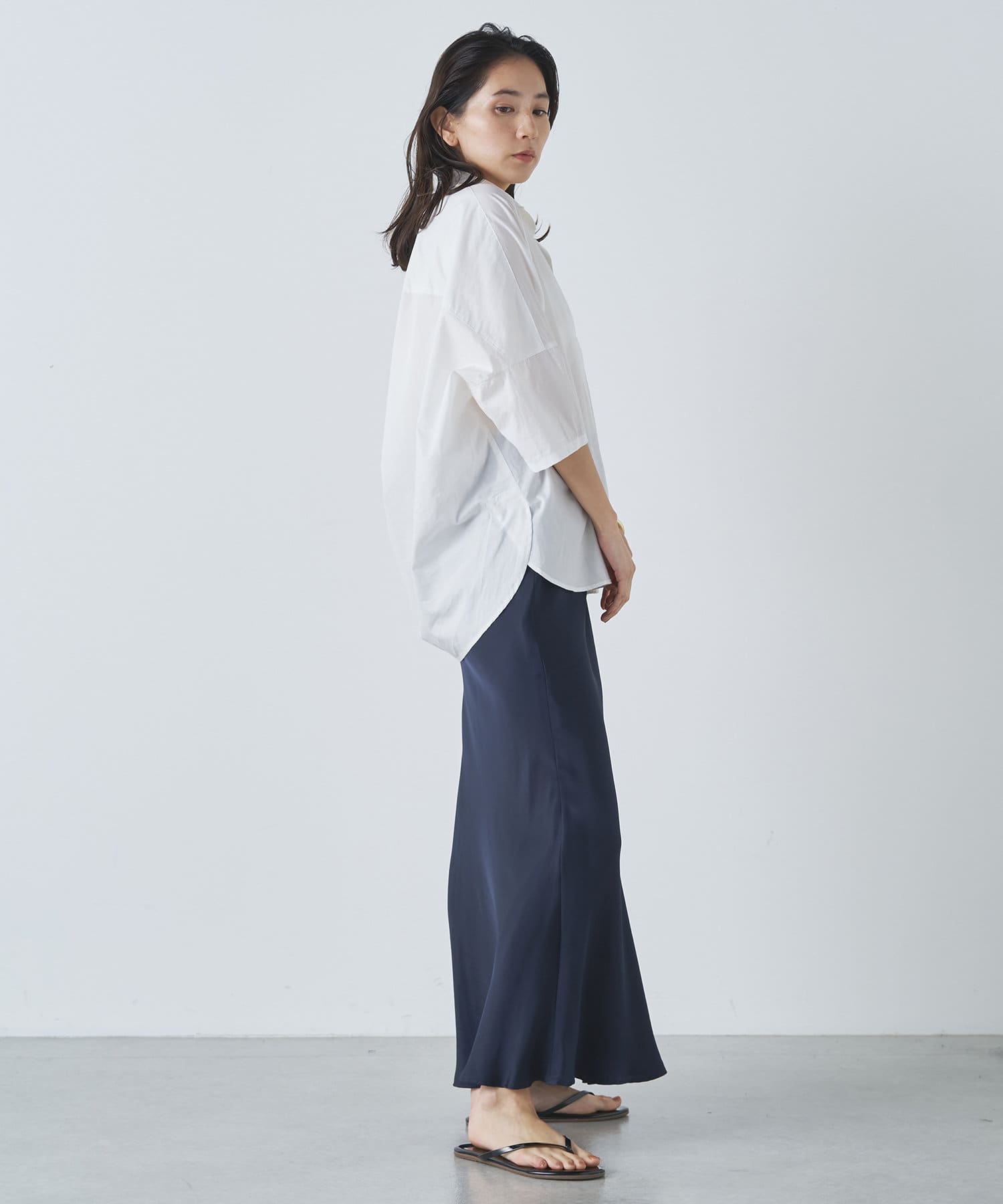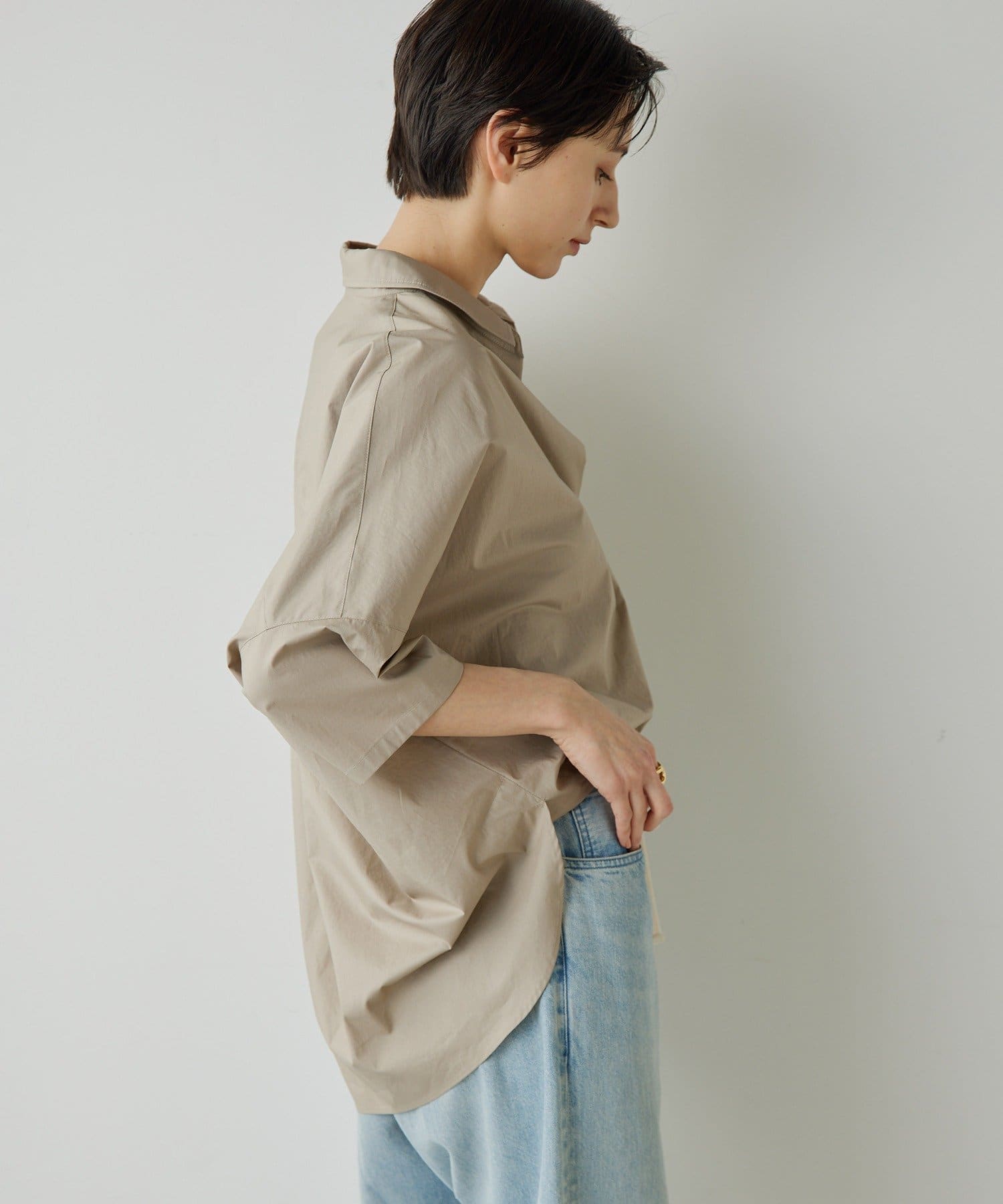 スキッパー仕様でデコルテを美しく魅せてくれます。自然と後ろに抜けるようなデザインで着るだけでこなれ見えします。