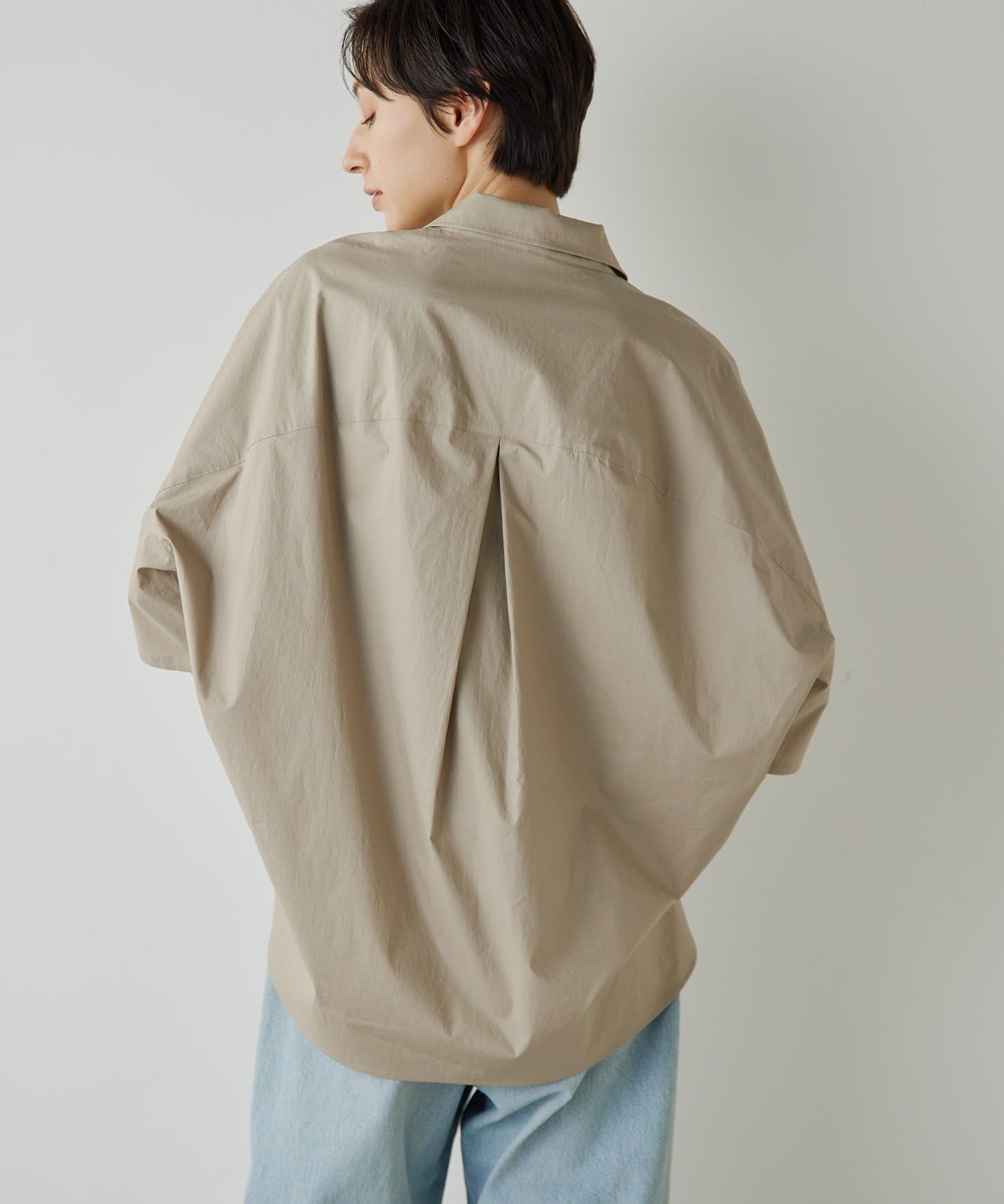 ■程よいワイドシルエットの半袖スキッパーシャツ。