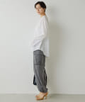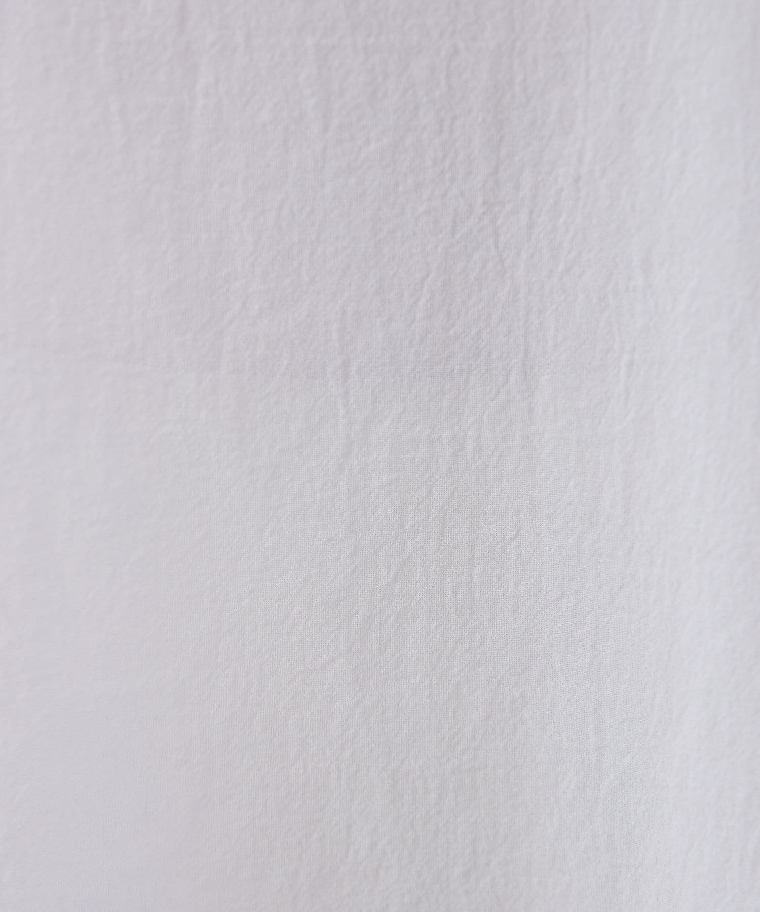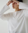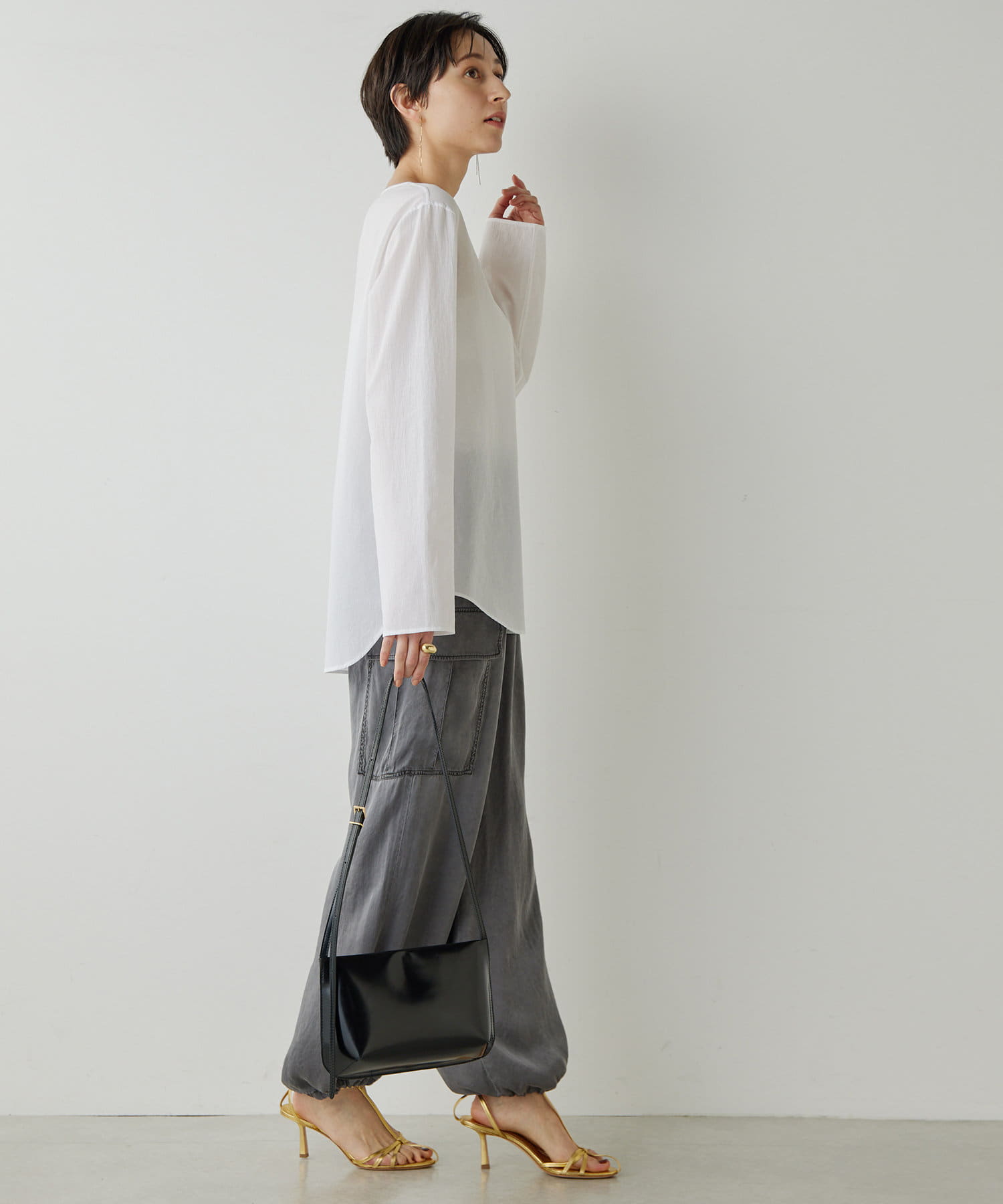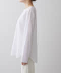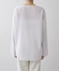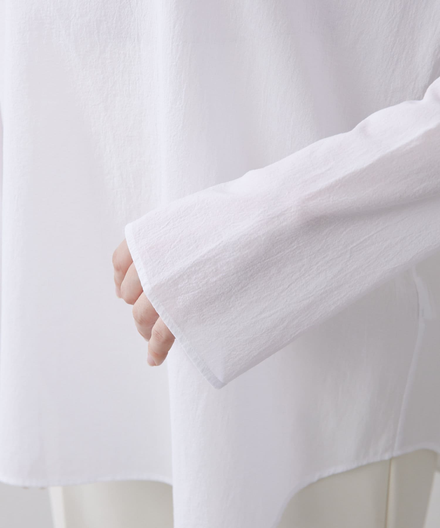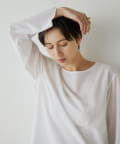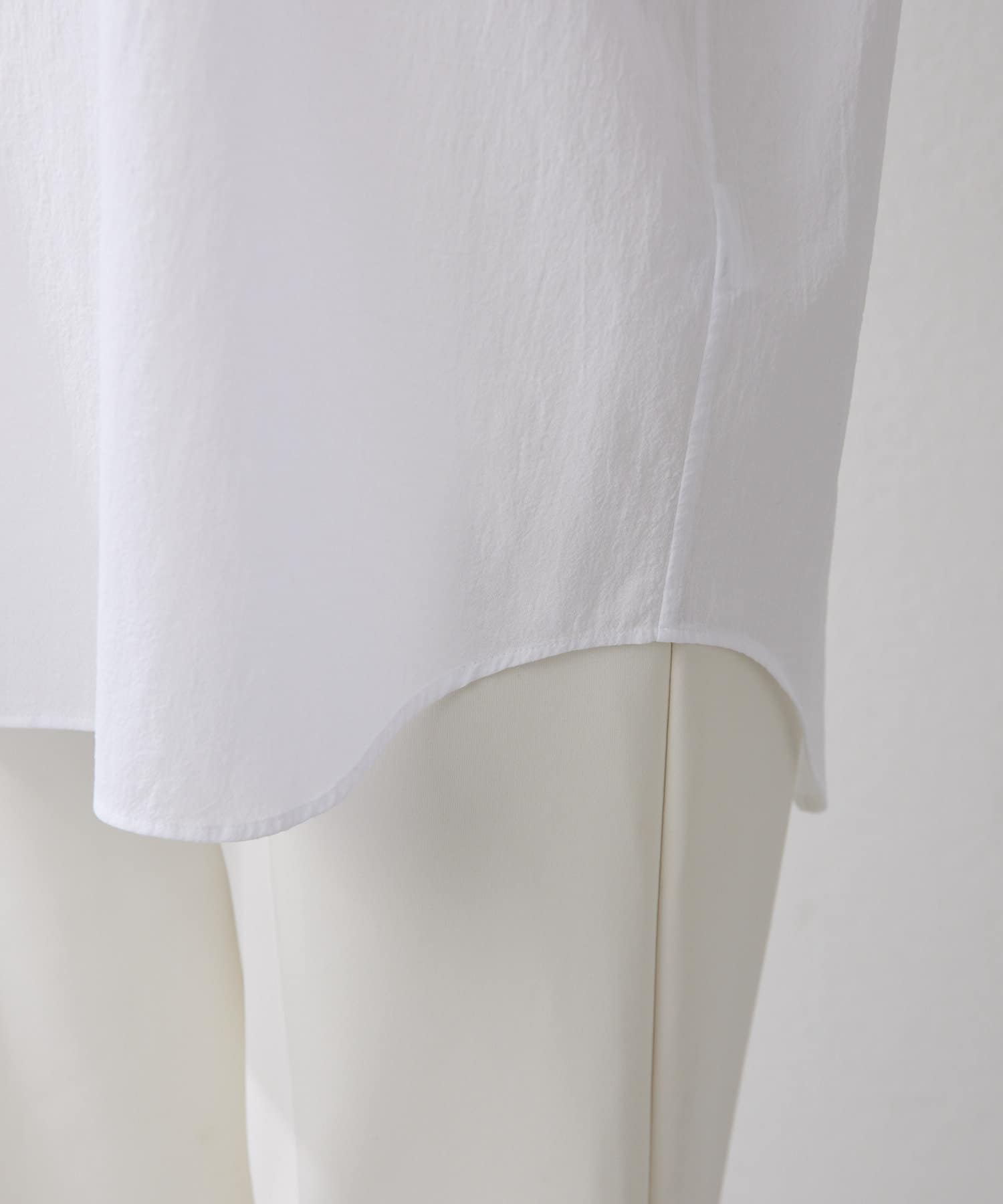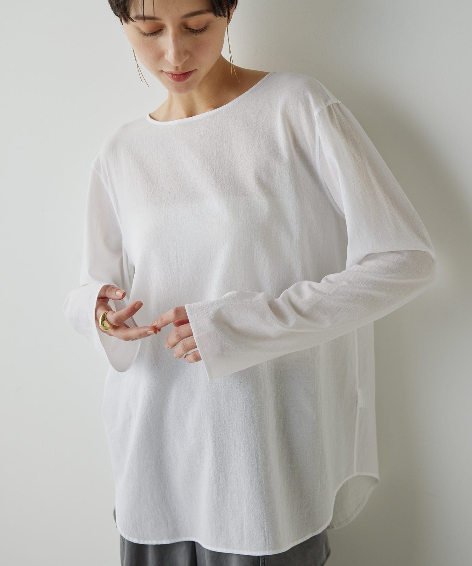 ■やや長めなワイドストレートの袖に、裾をラウンドさせたシルエットが一枚でもサマになるデザイン。