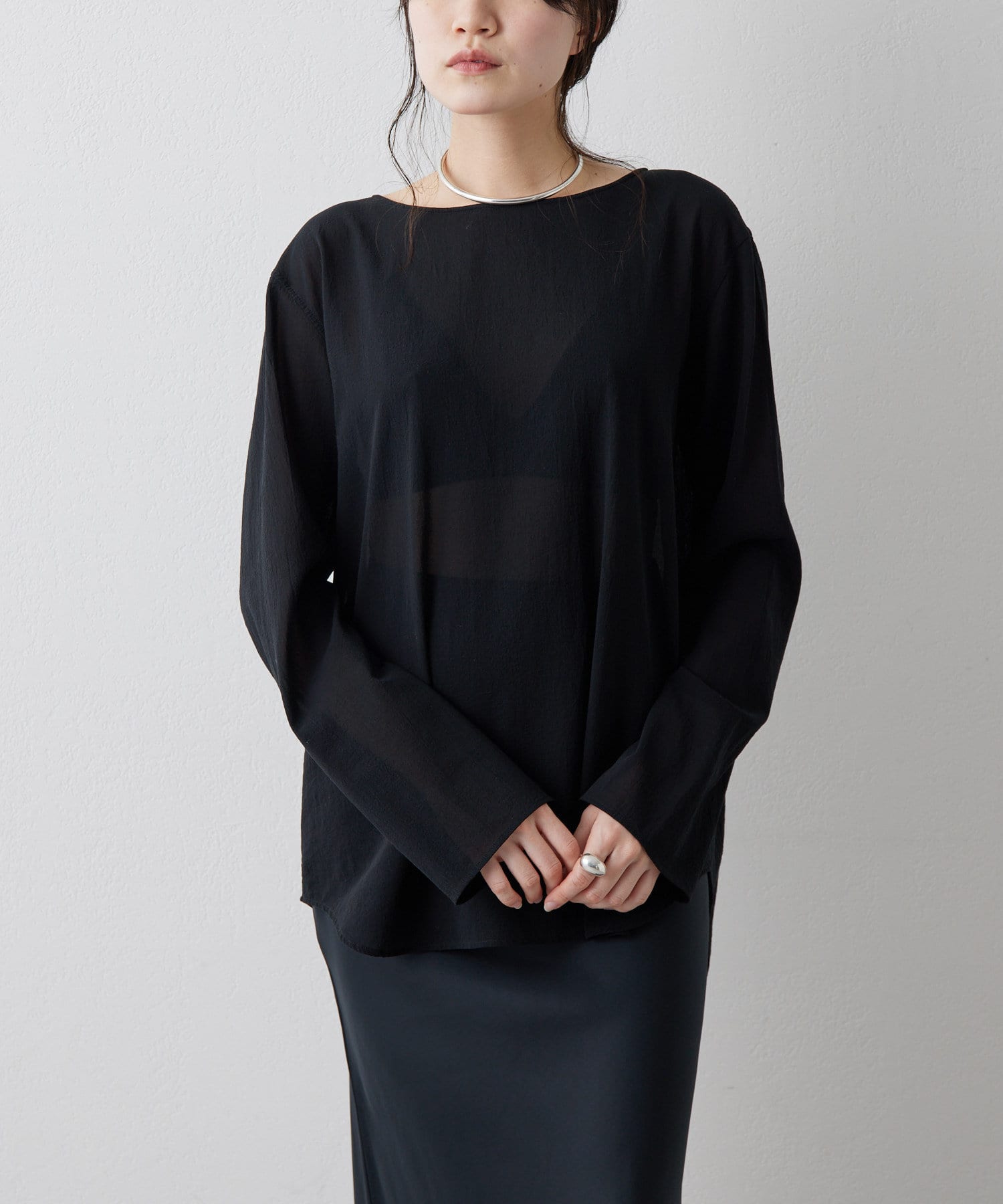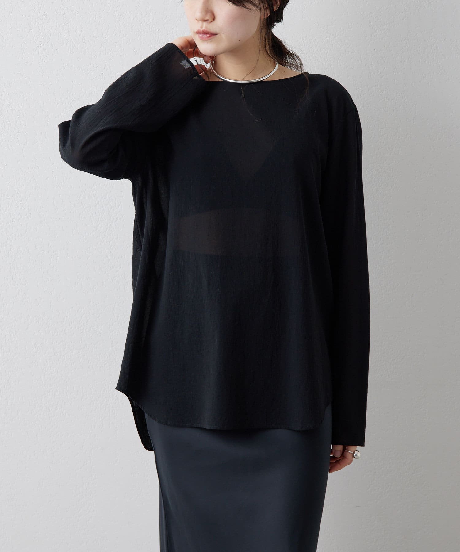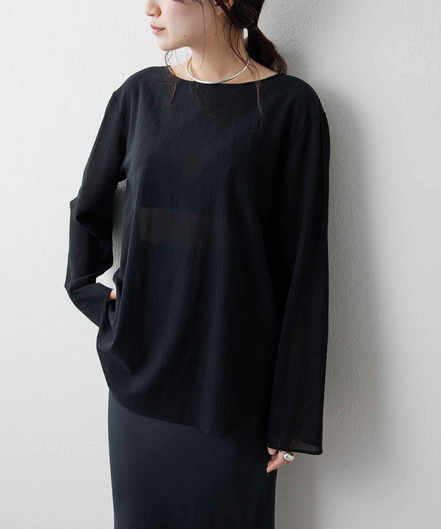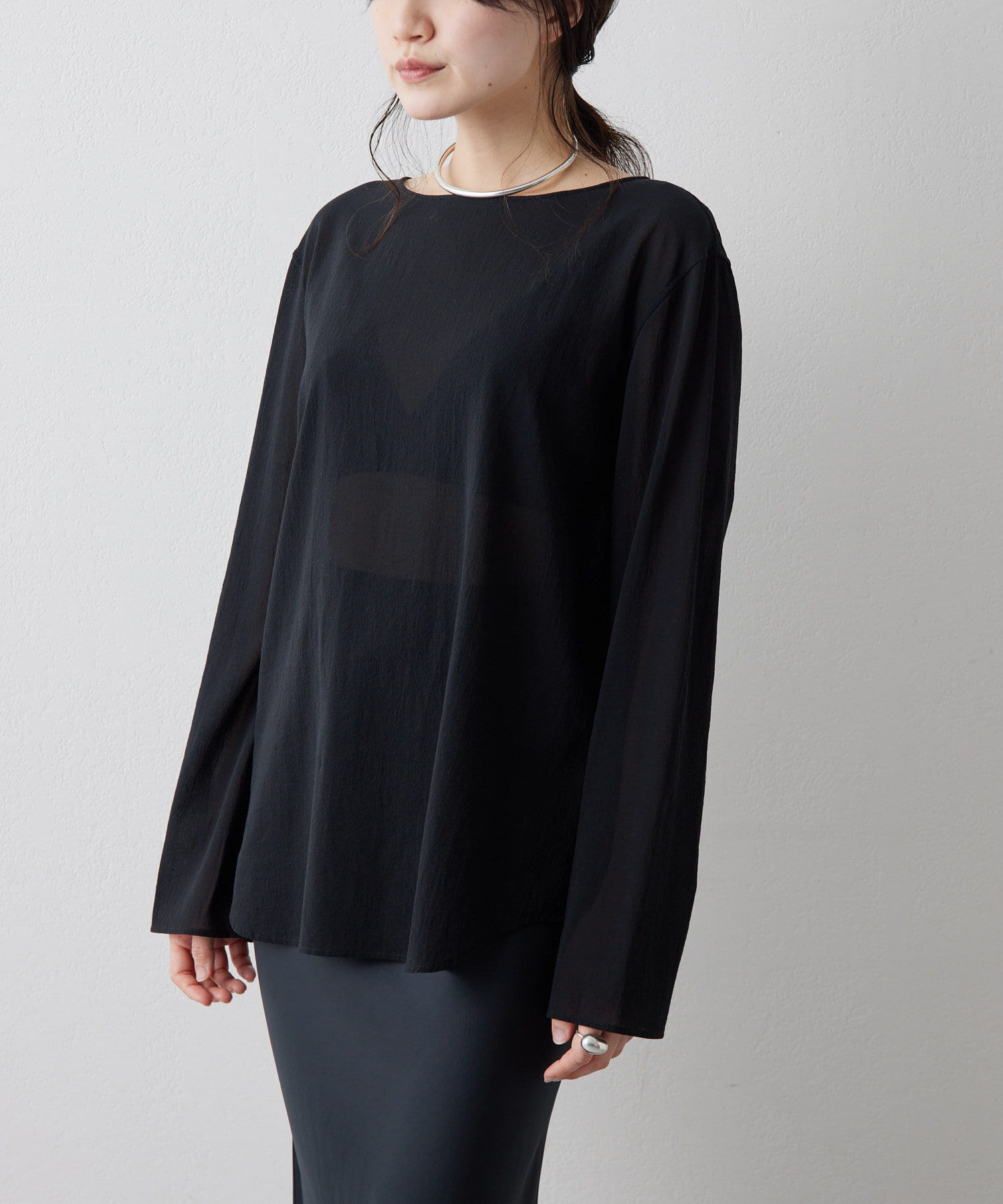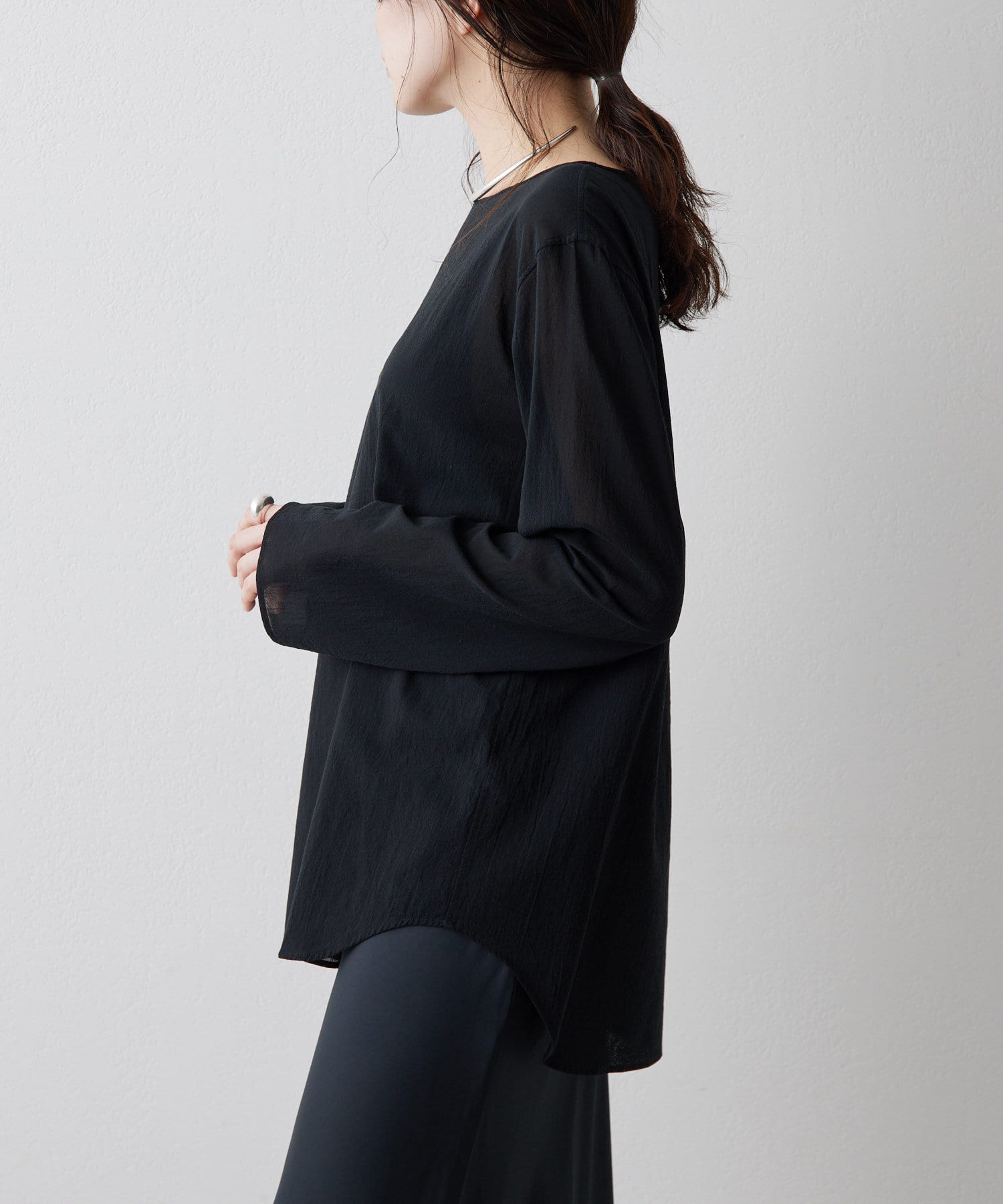 ■程よくシアーな表情がポイントのプルオーバーブラウス。