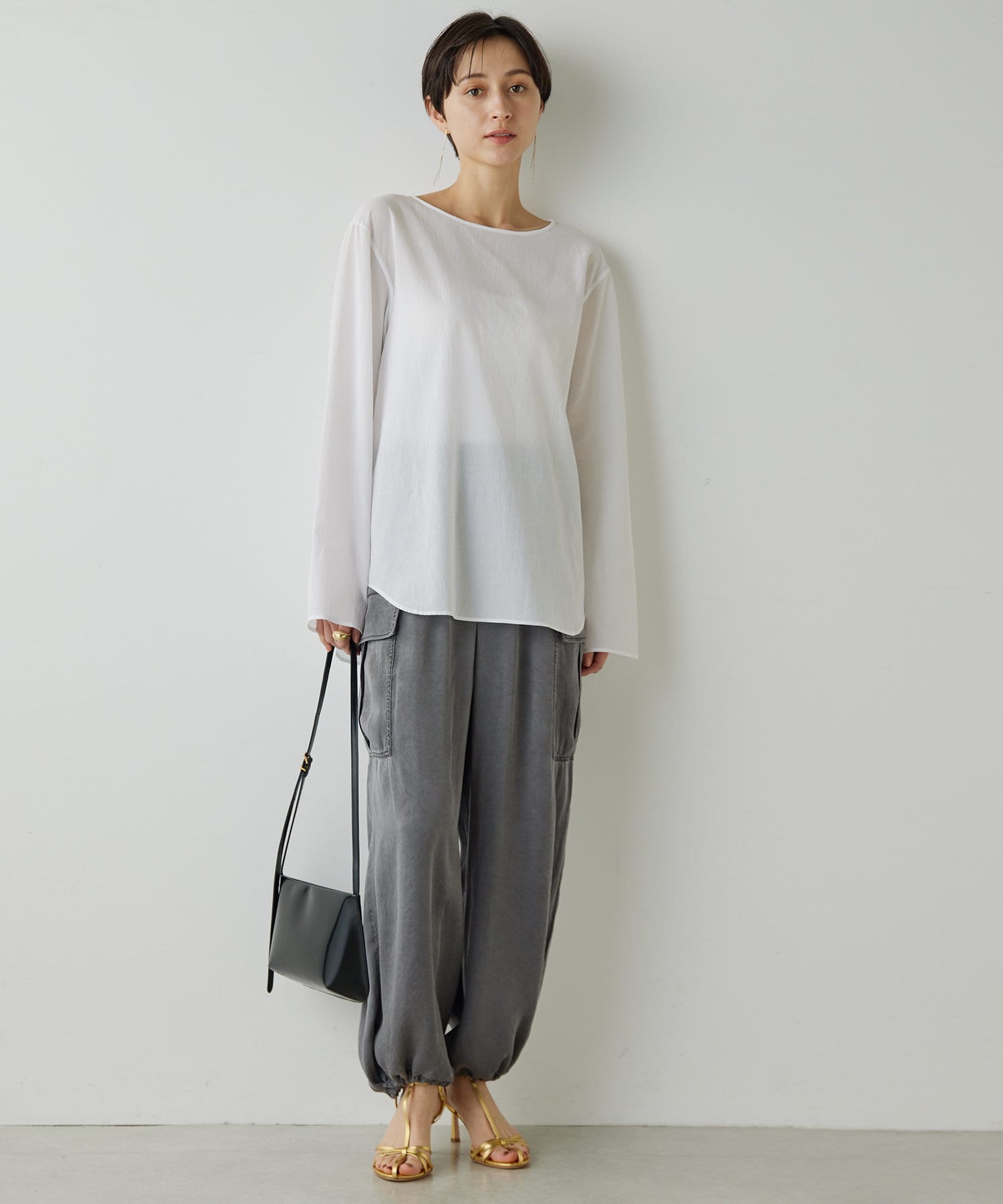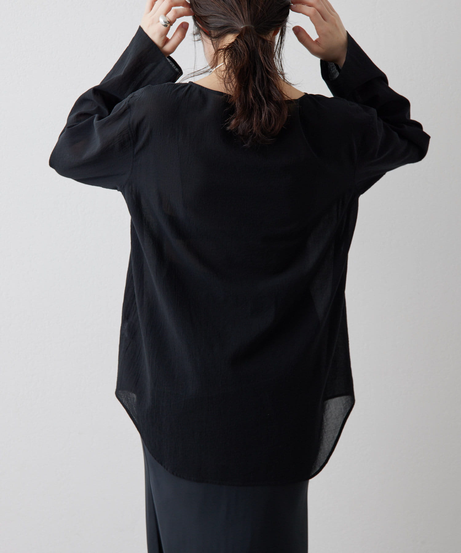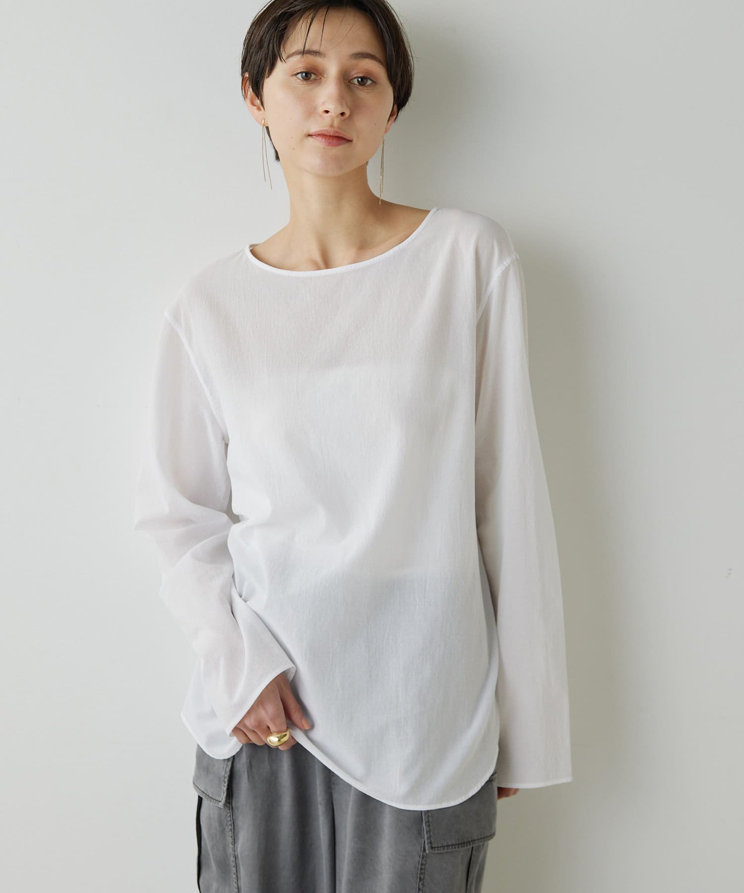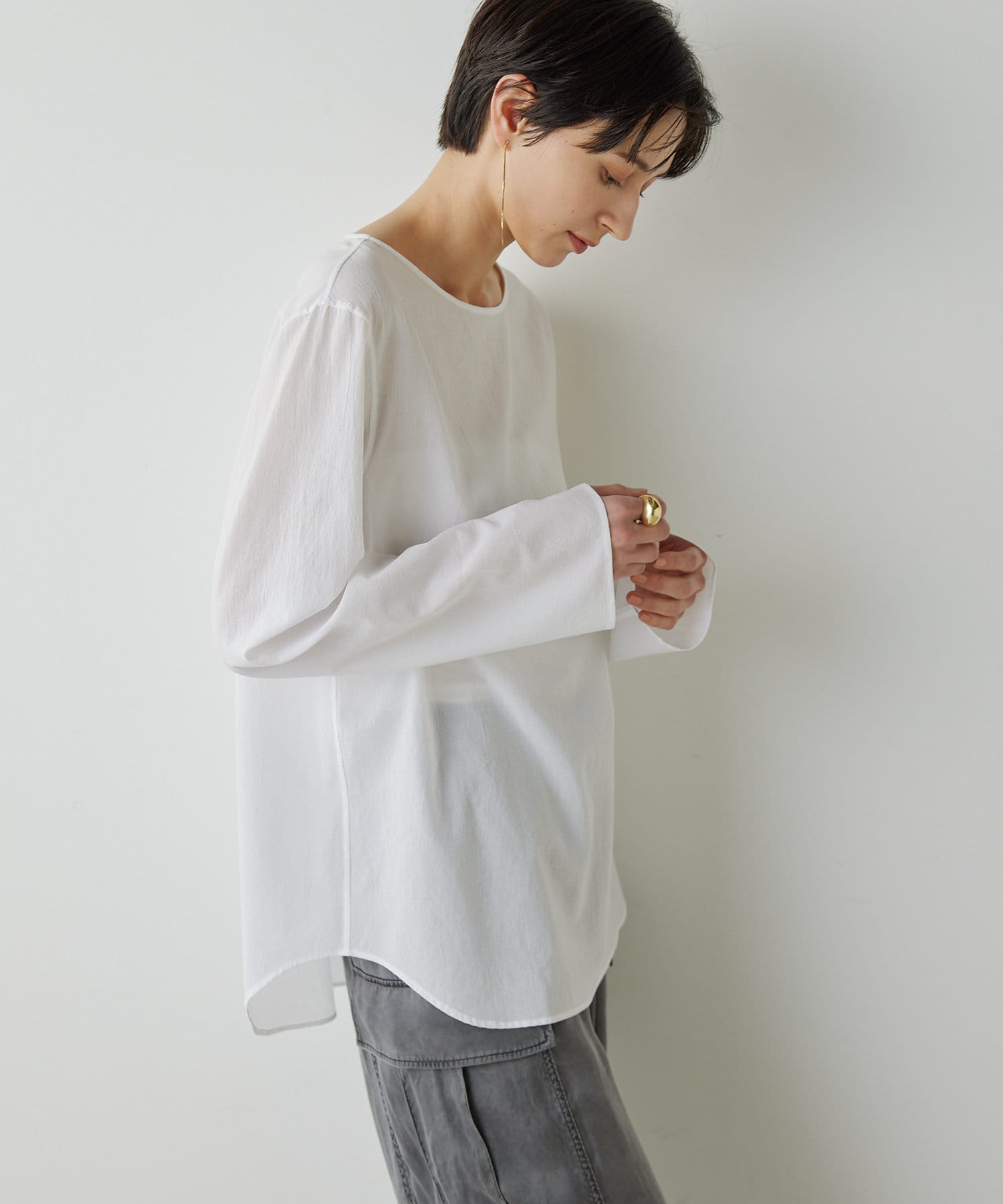 ■程よくシアーな表情がポイントのプルオーバーブラウス。