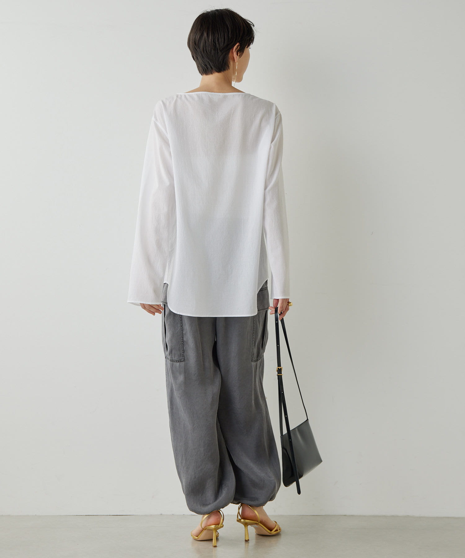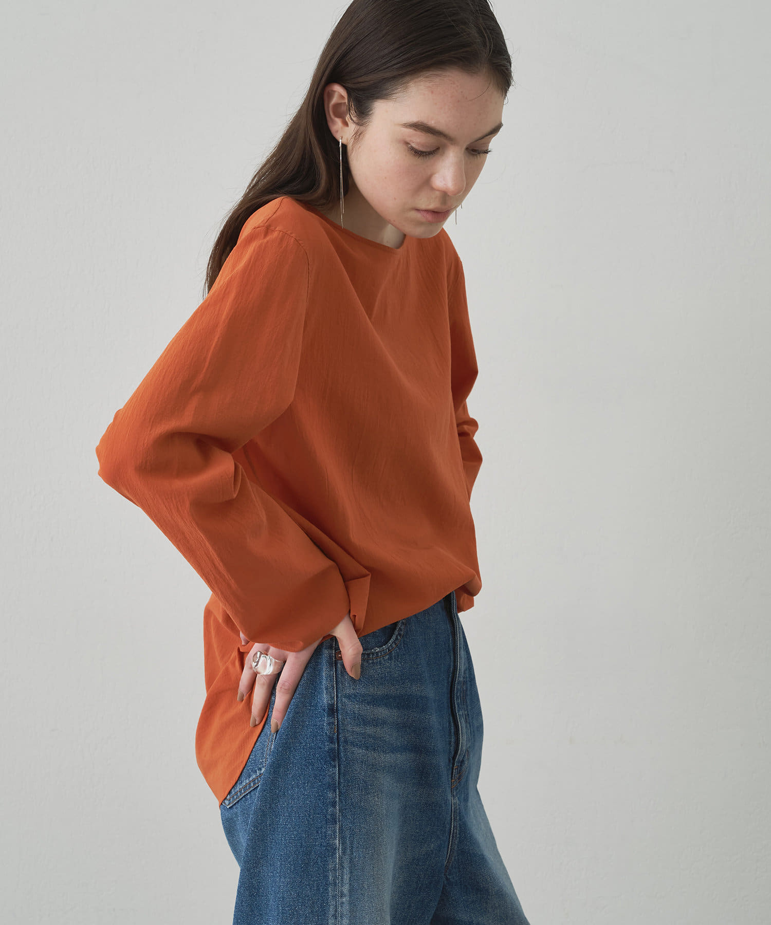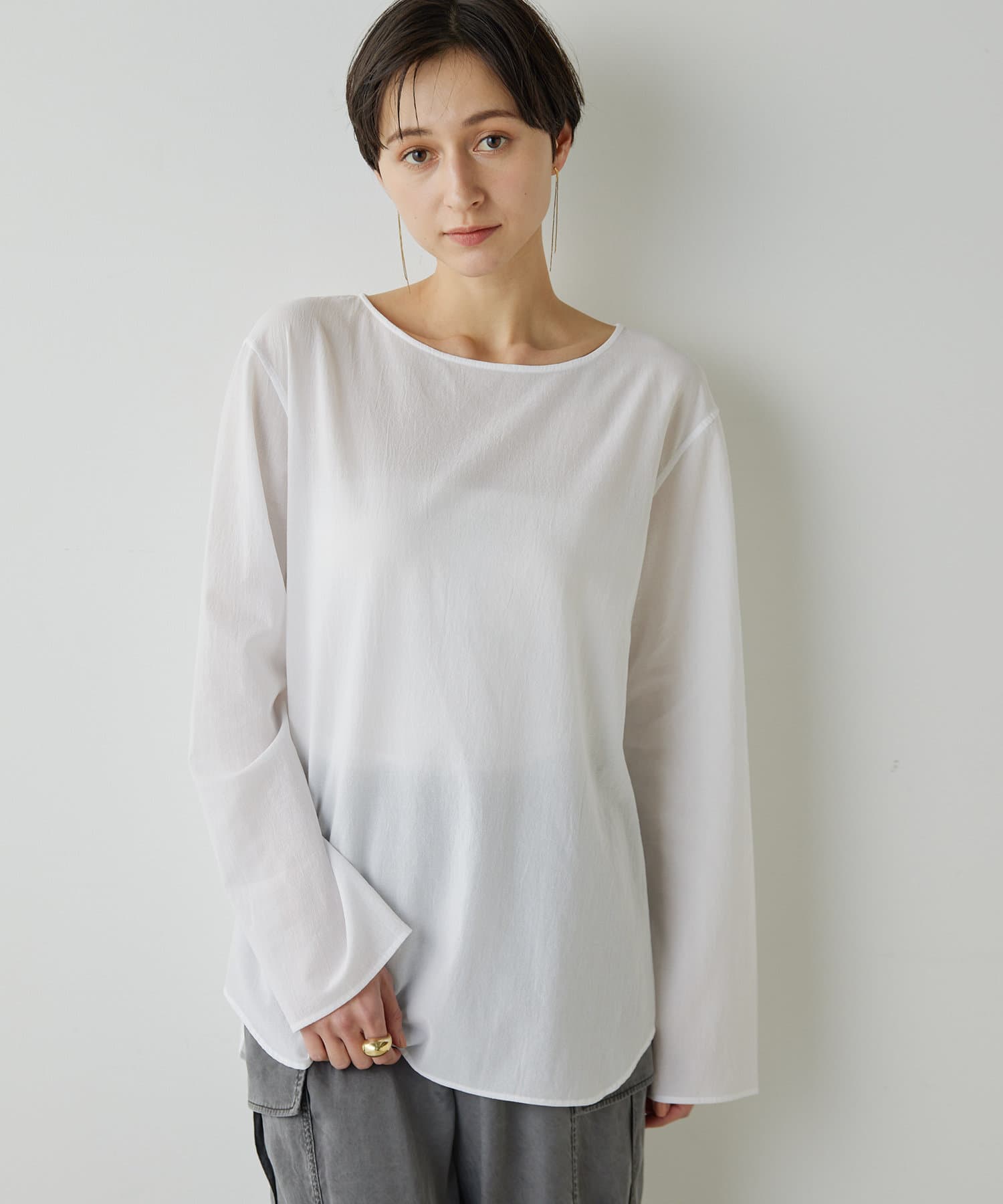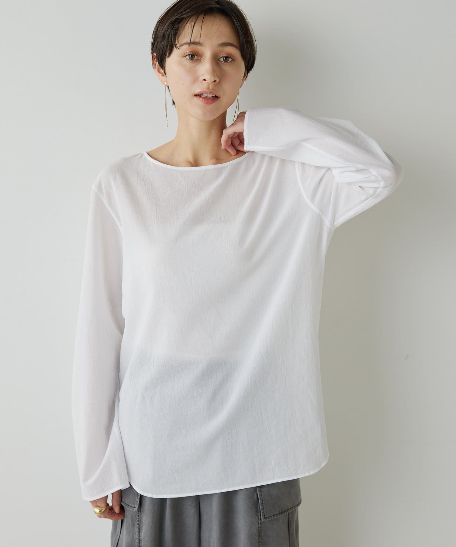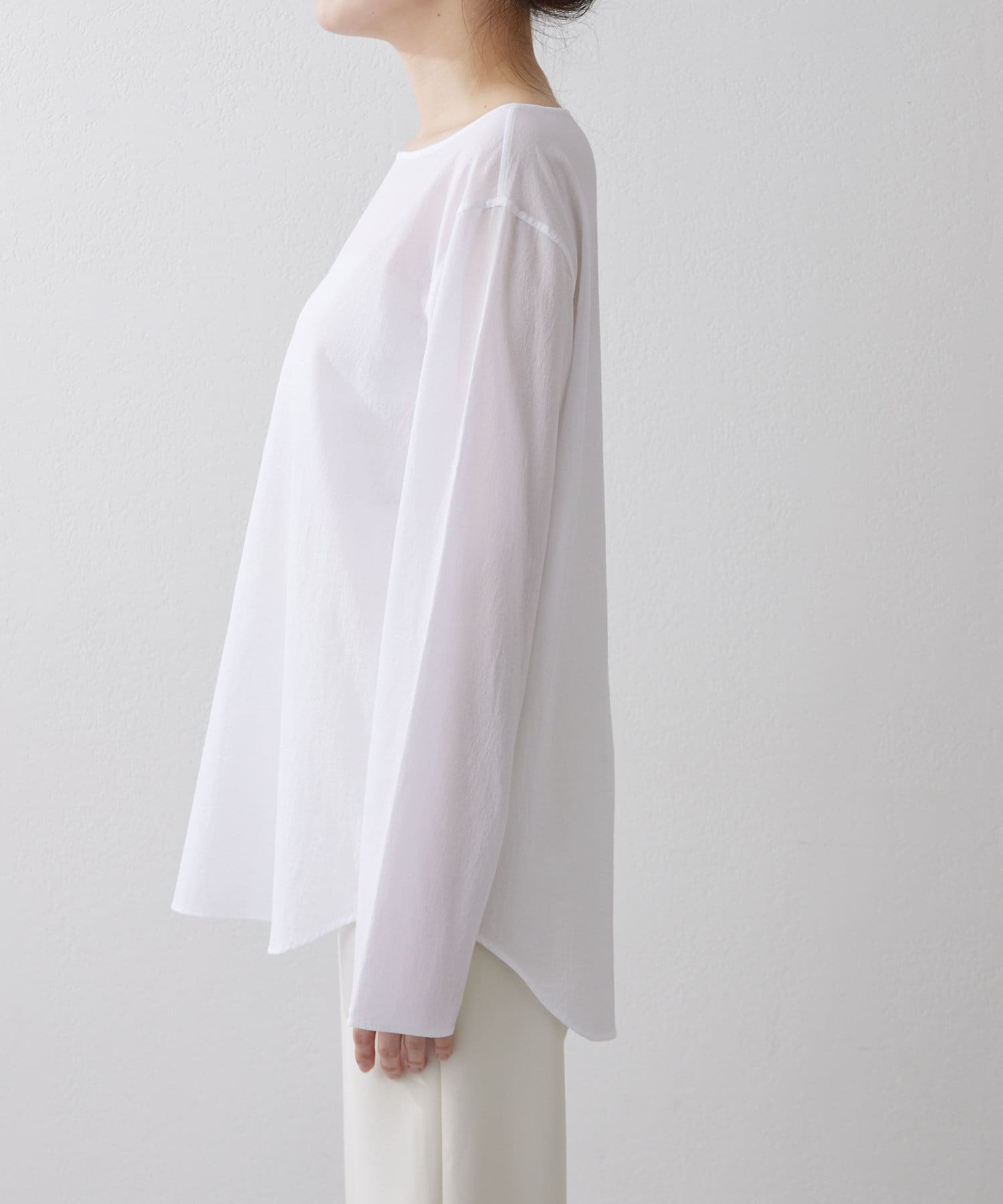 ■程よくシアーな表情がポイントのプルオーバーブラウス。