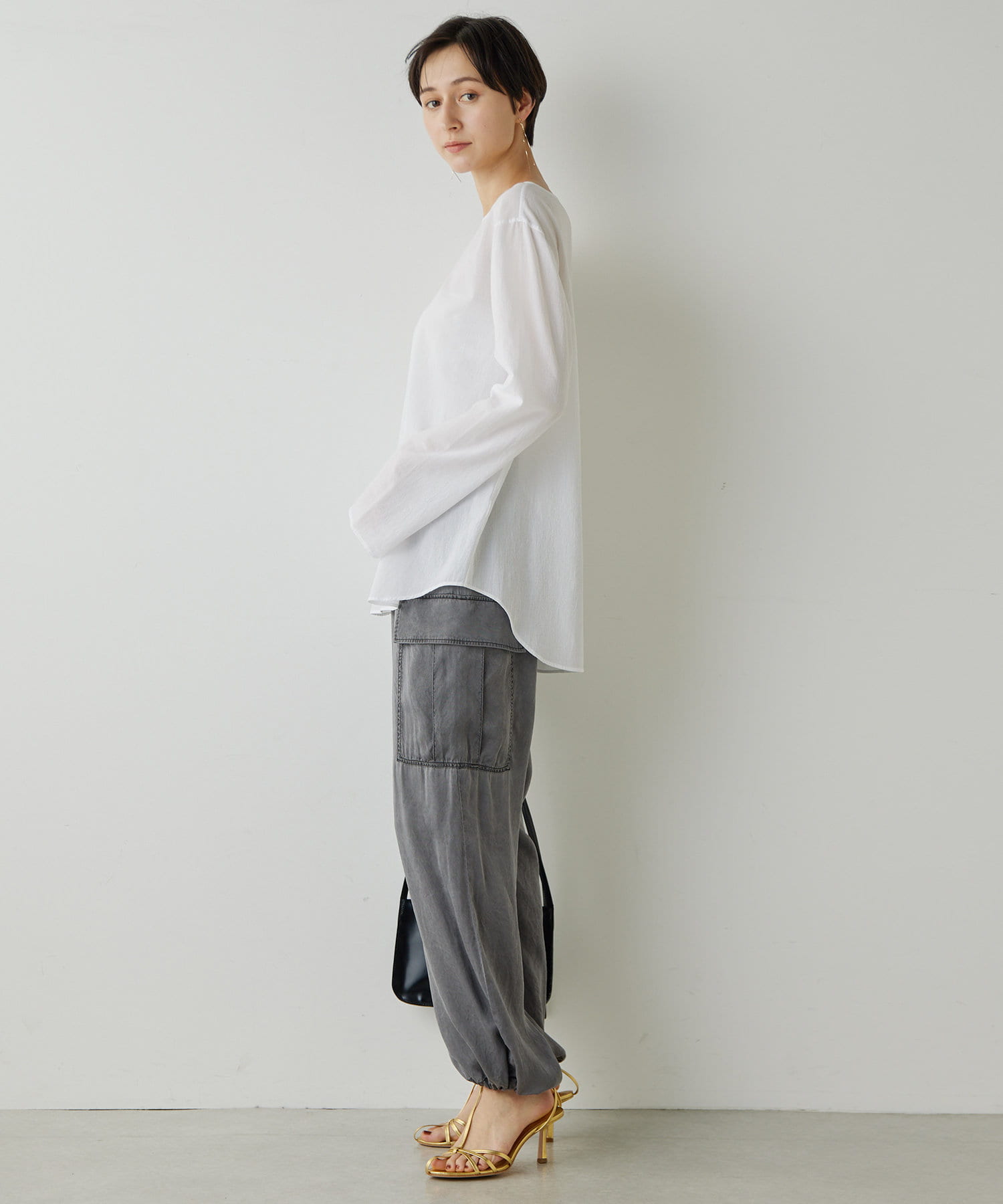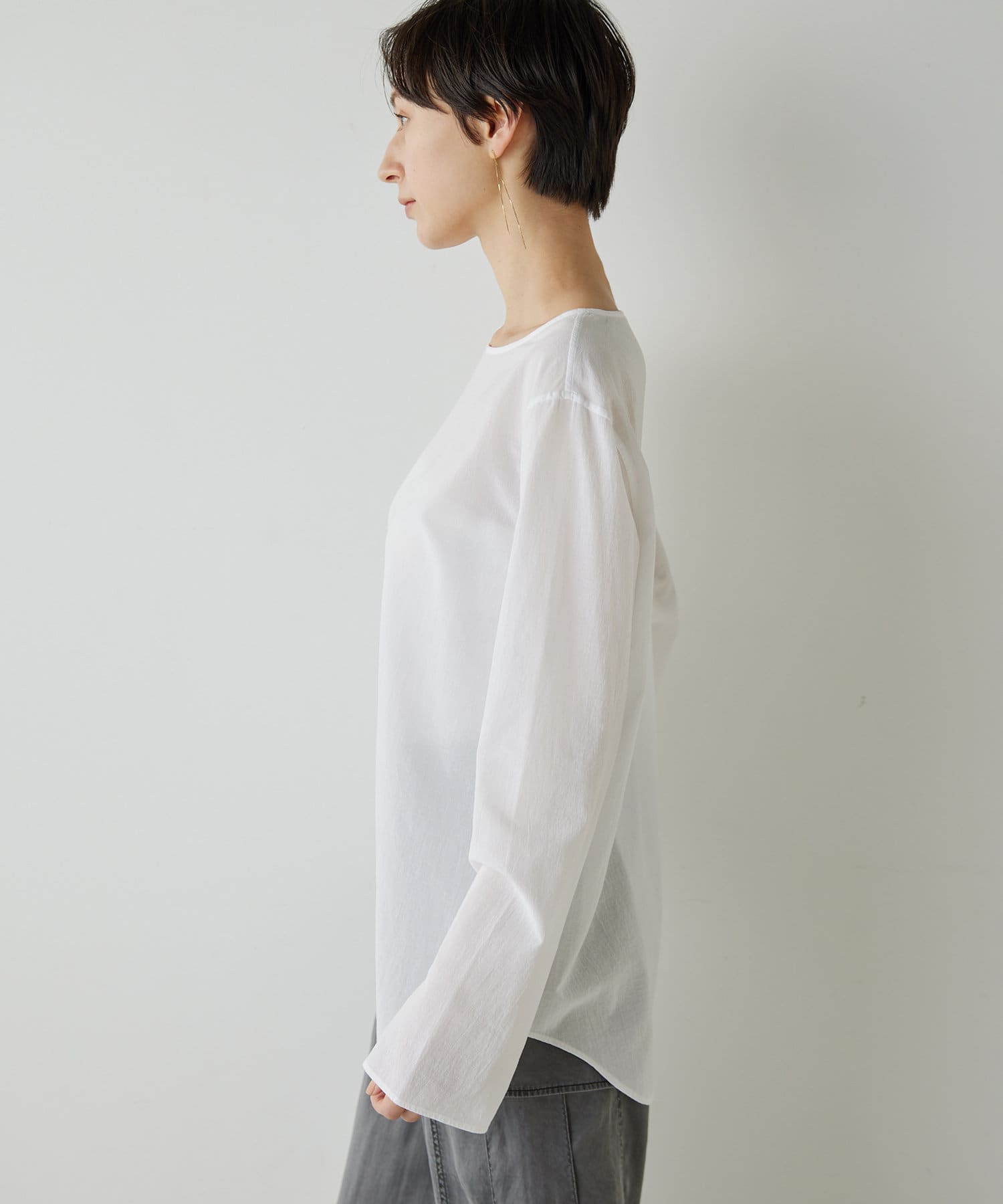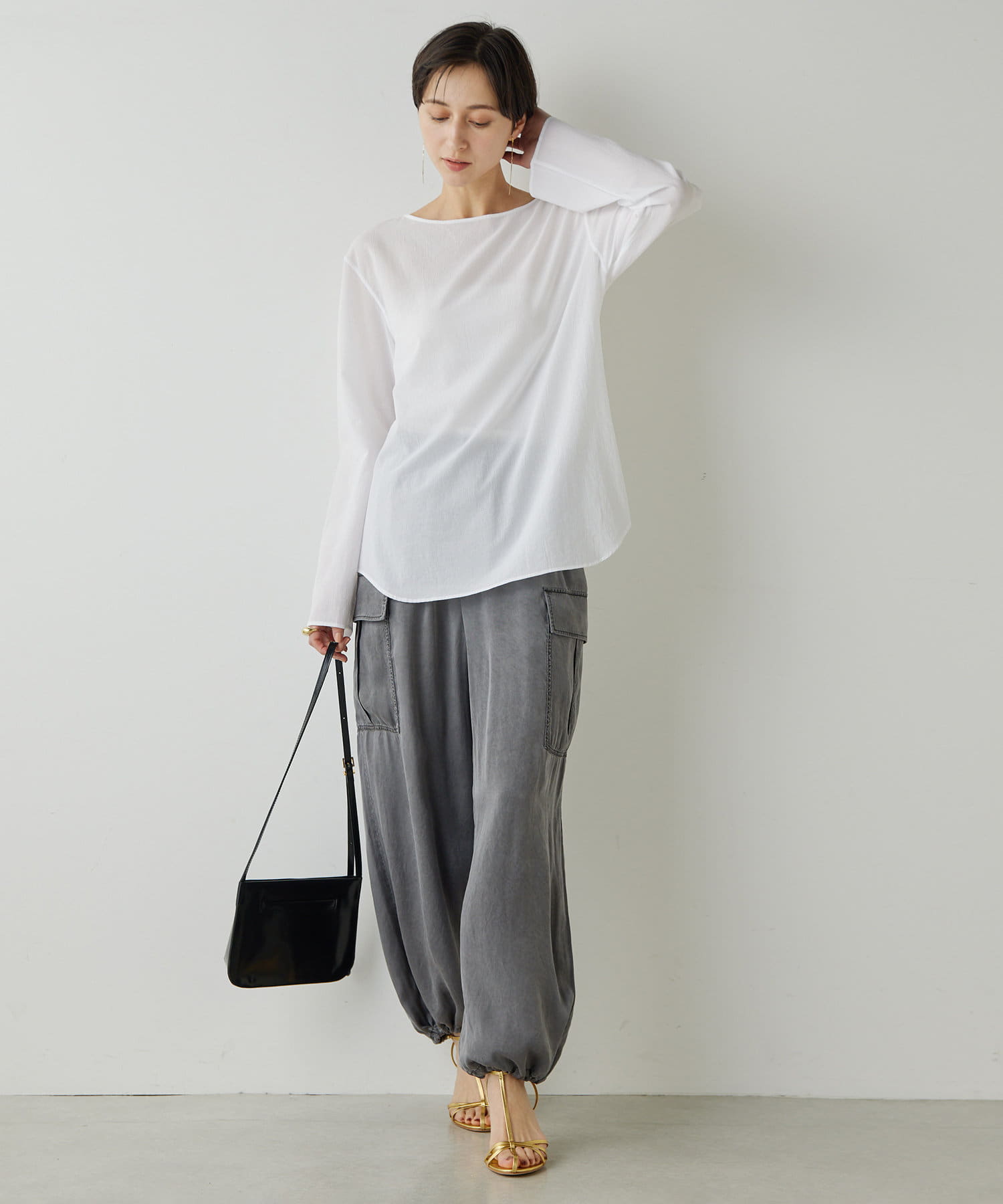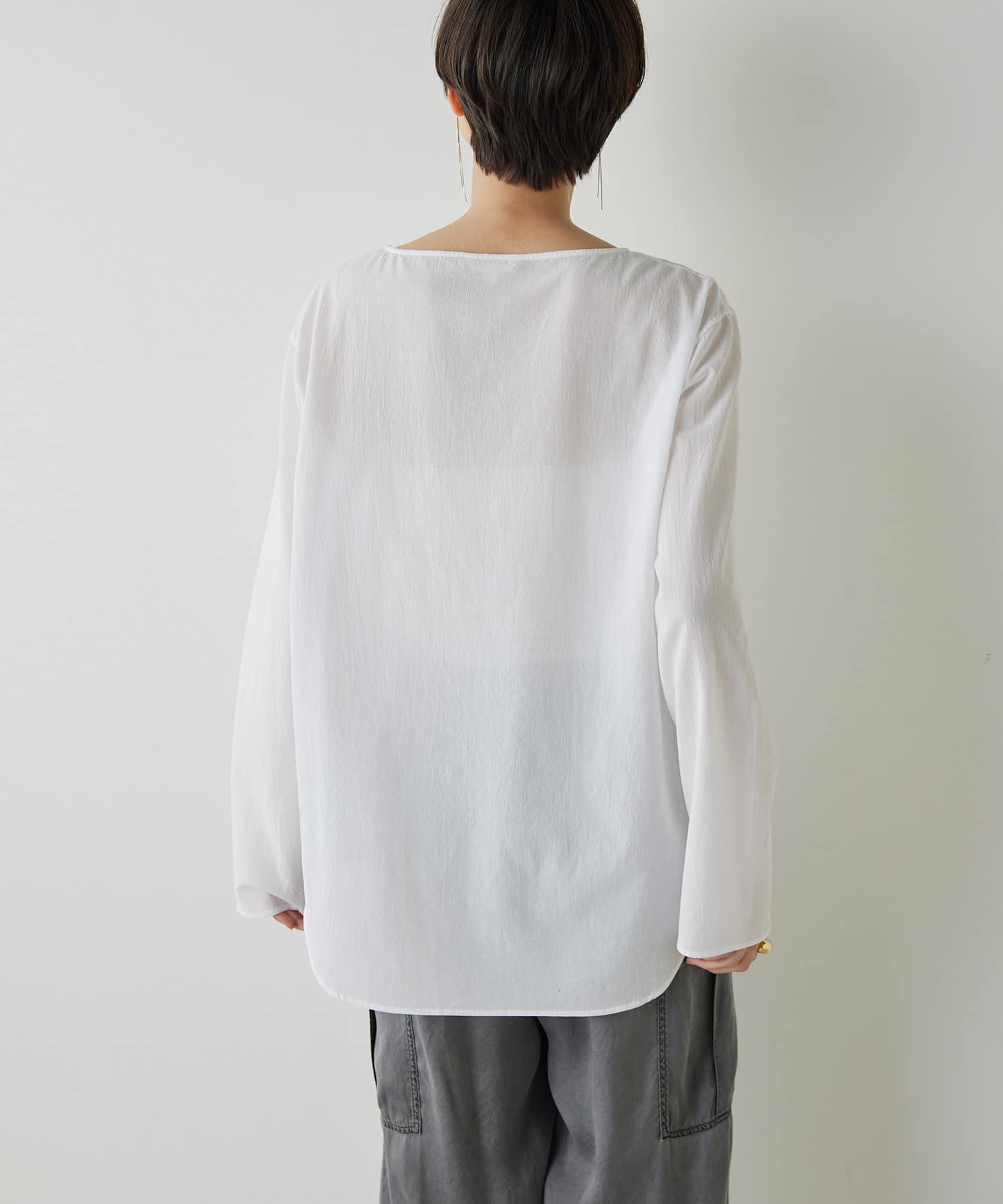 ■程よくシアーな表情がポイントのプルオーバーブラウス。
