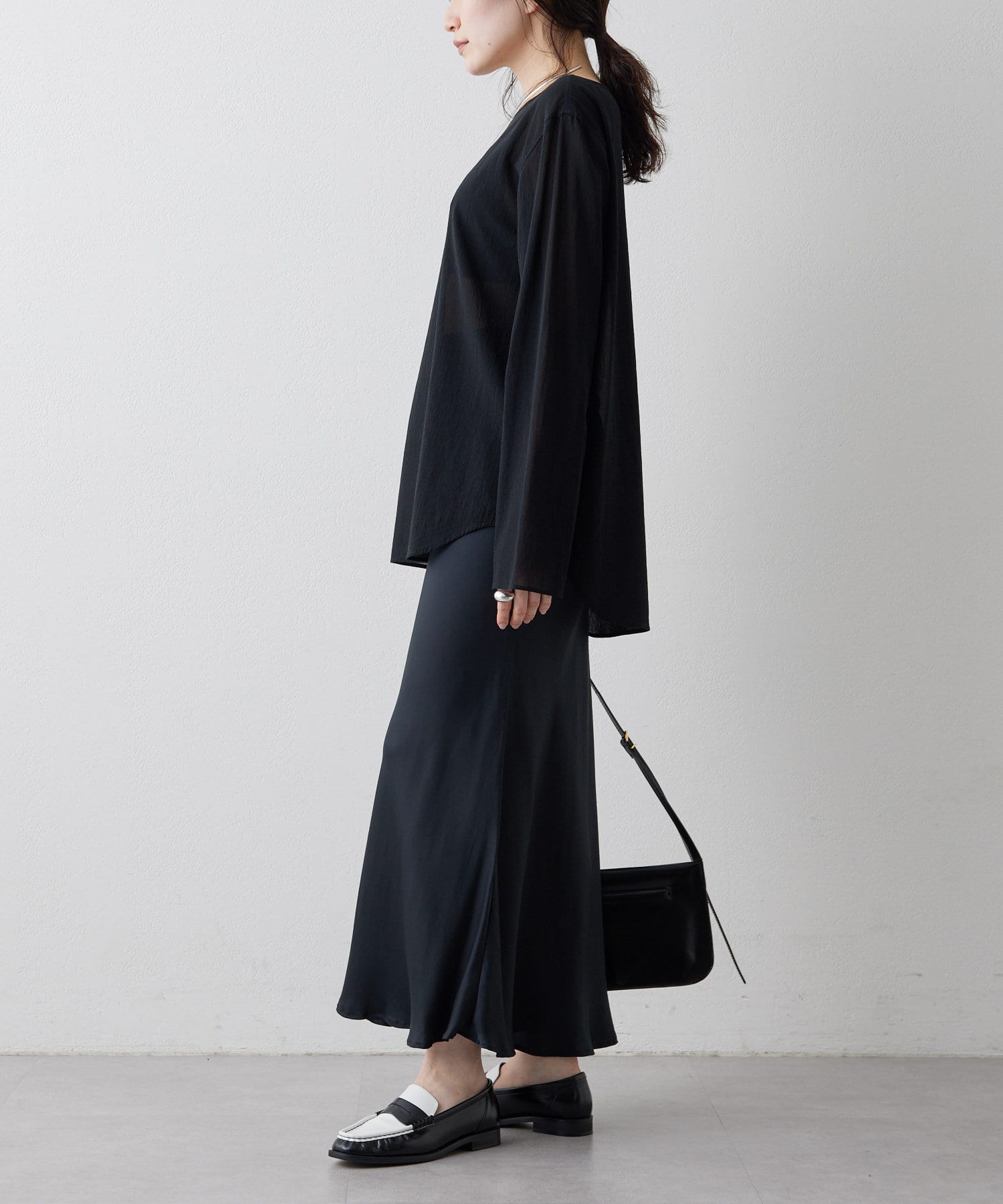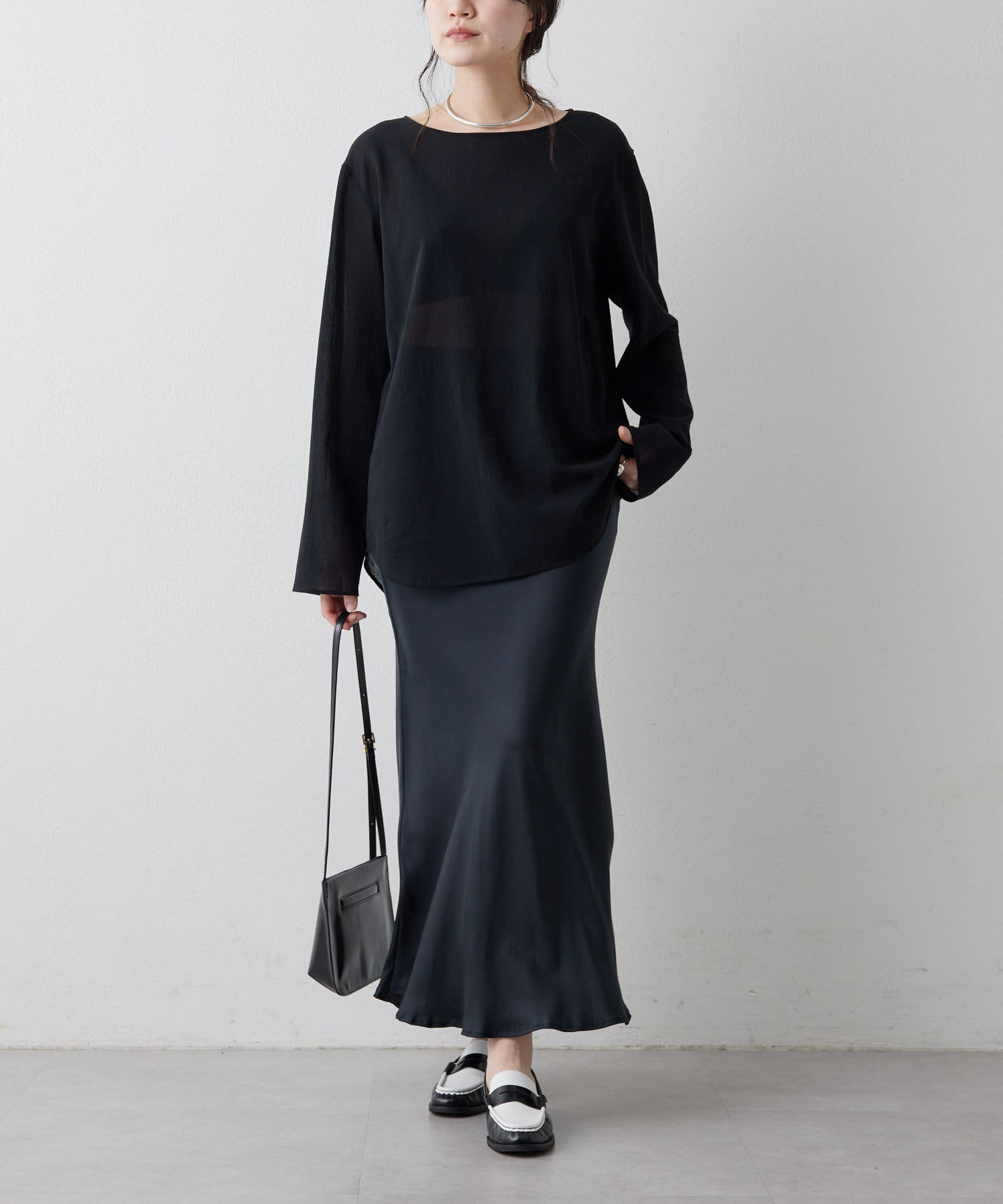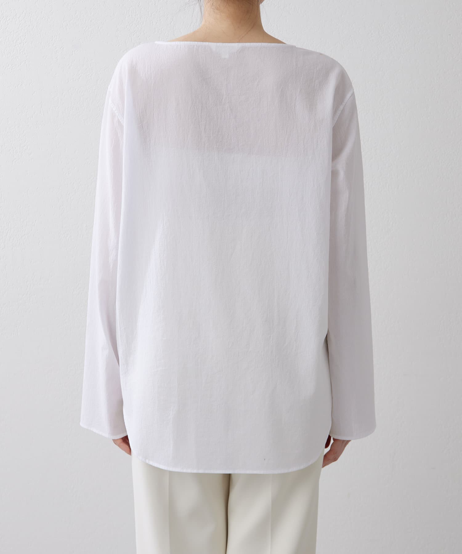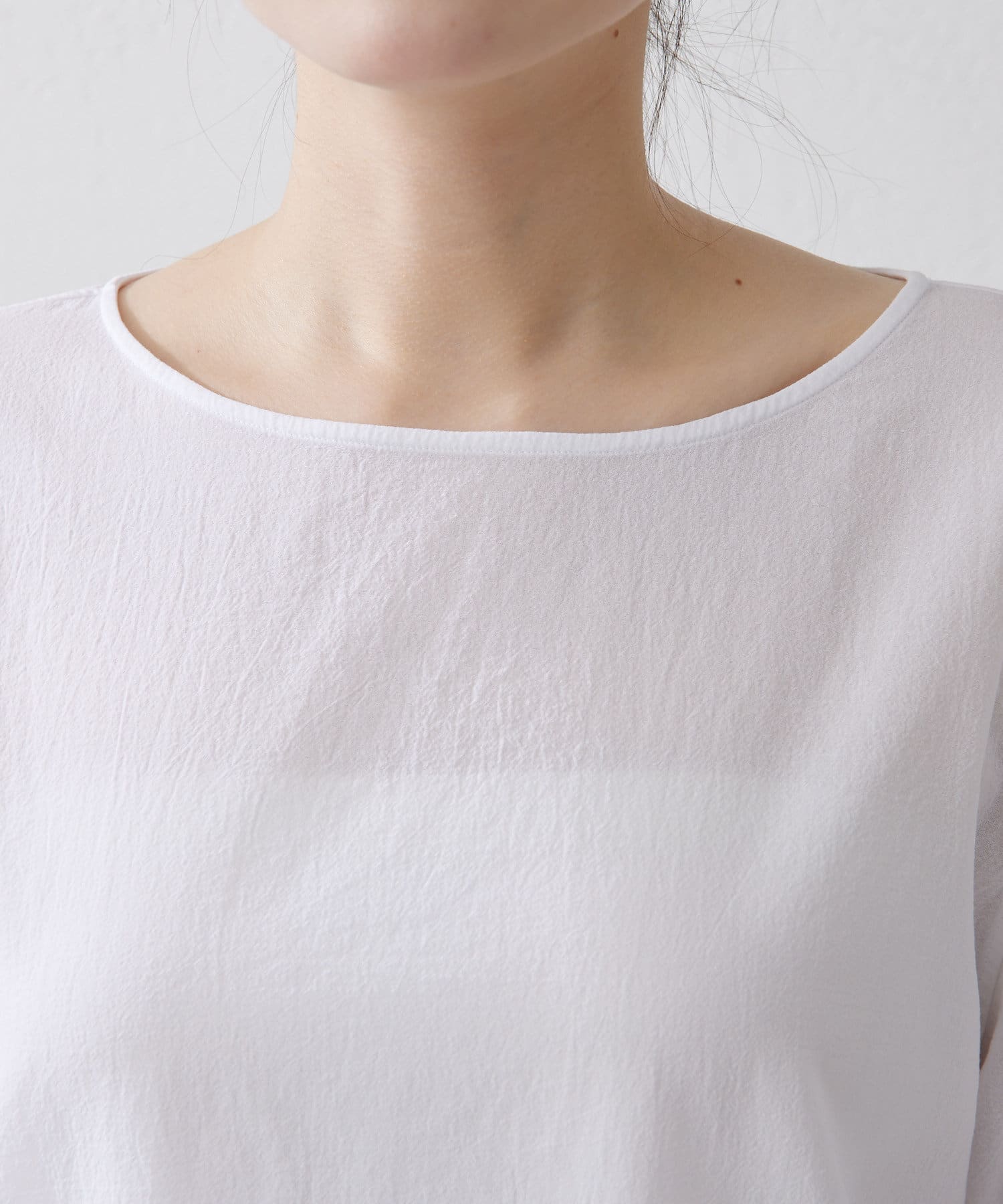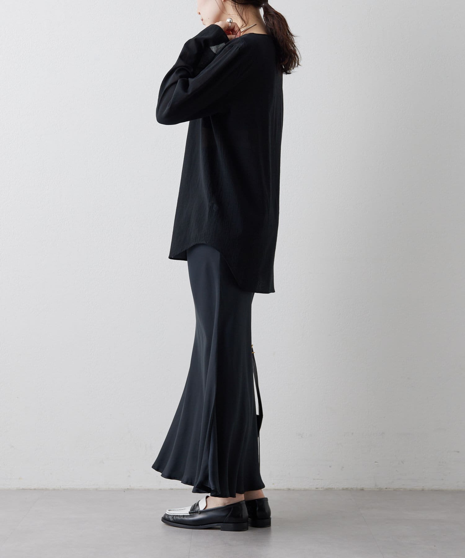 ■程よくシアーな表情がポイントのプルオーバーブラウス。