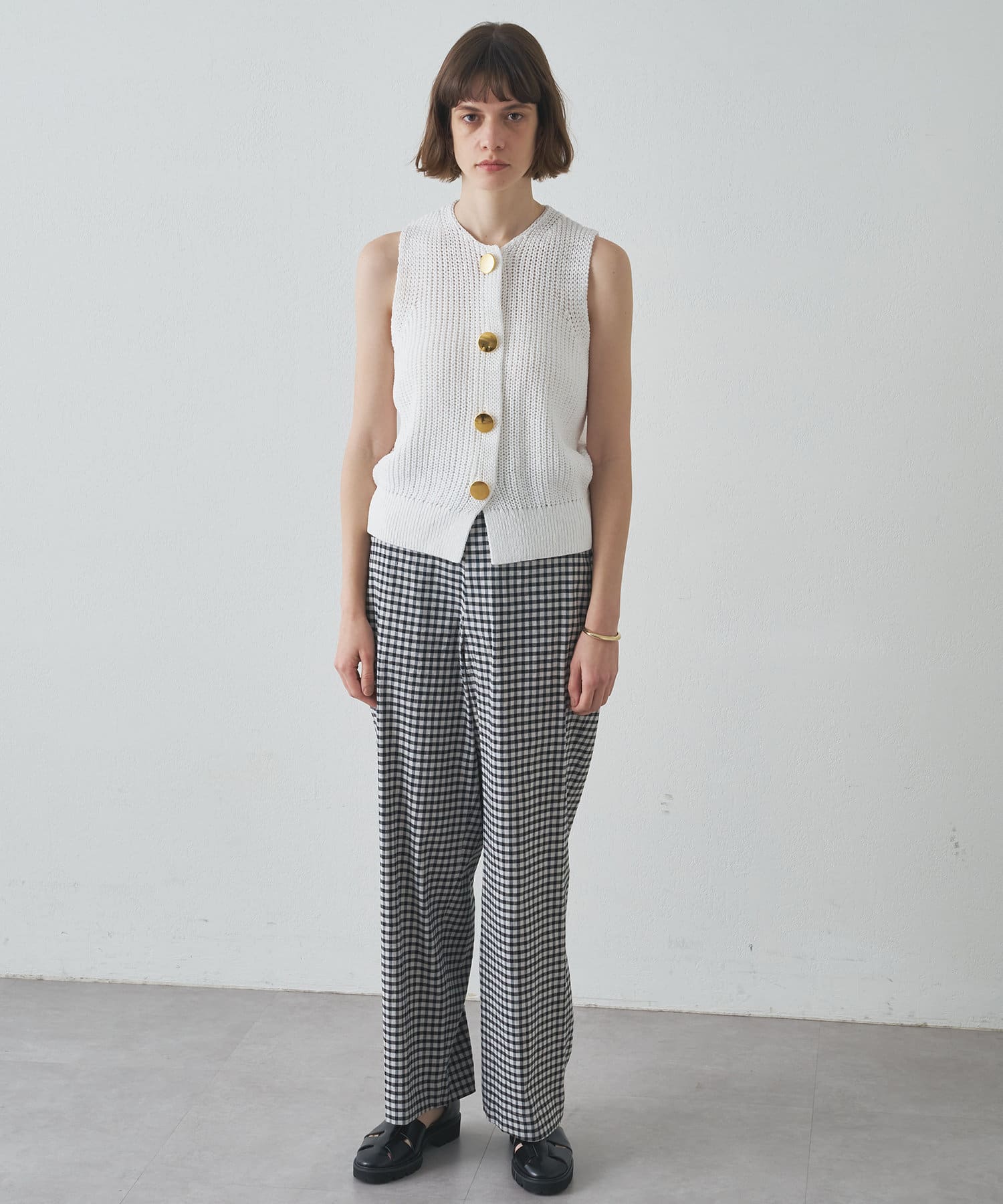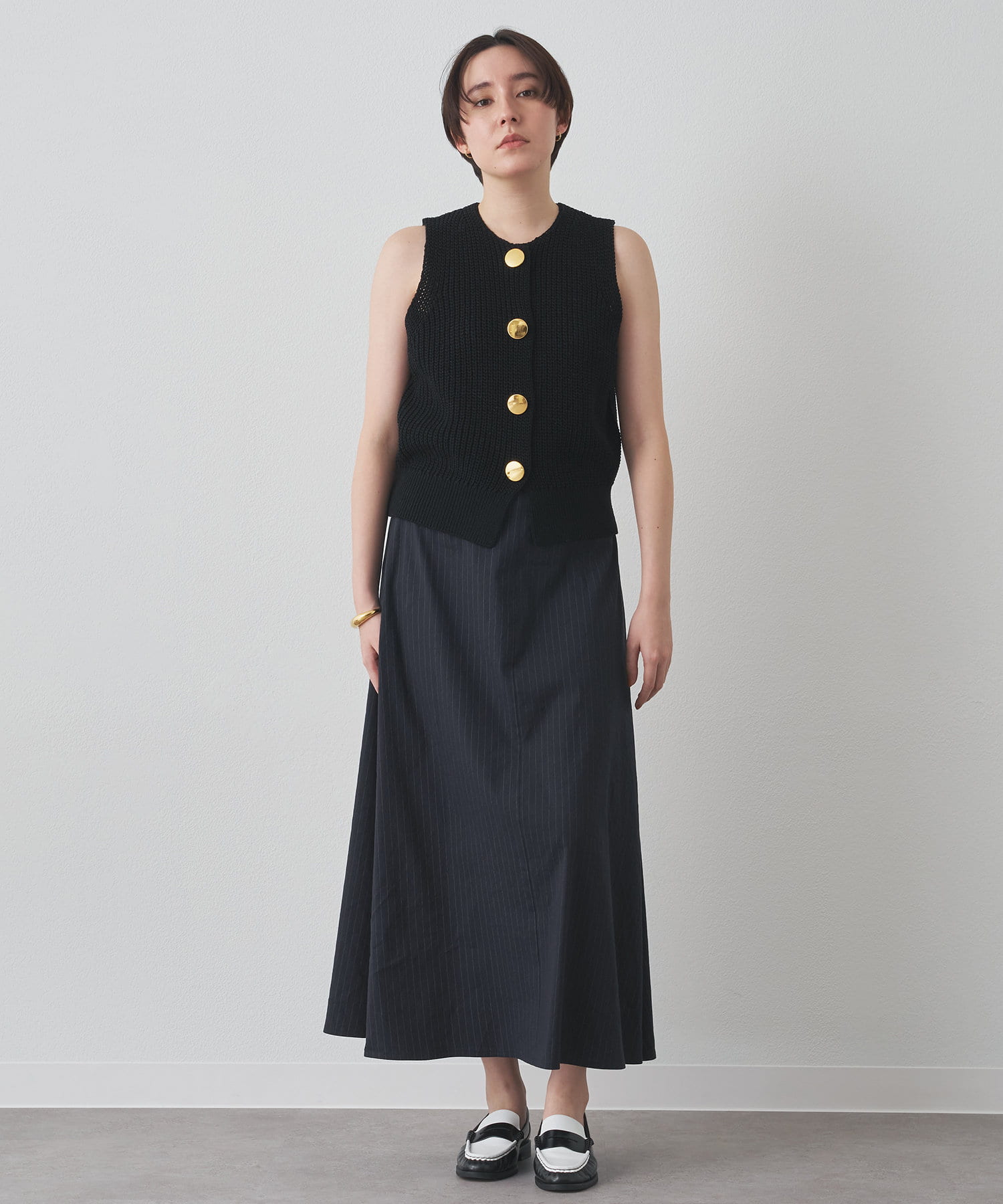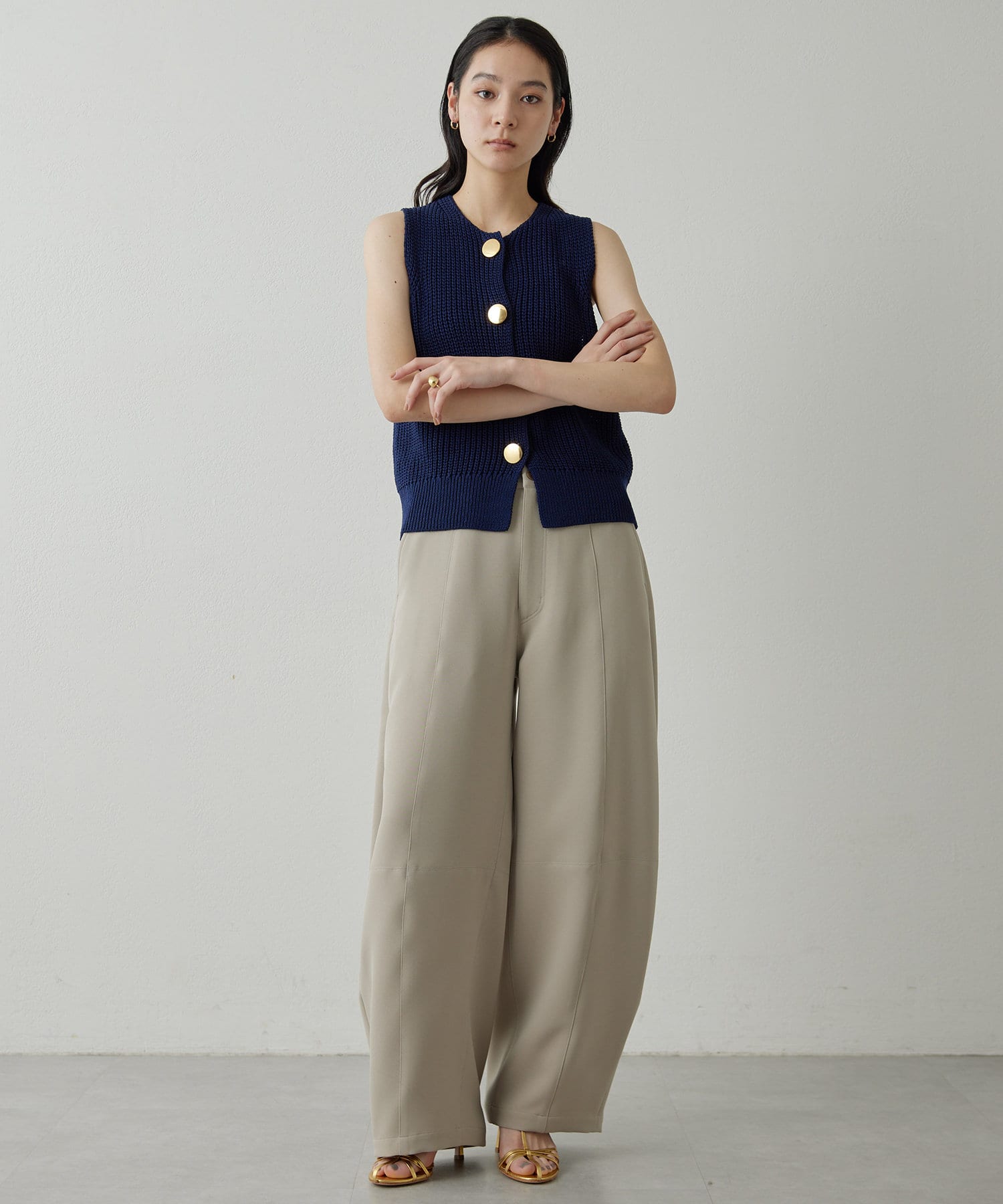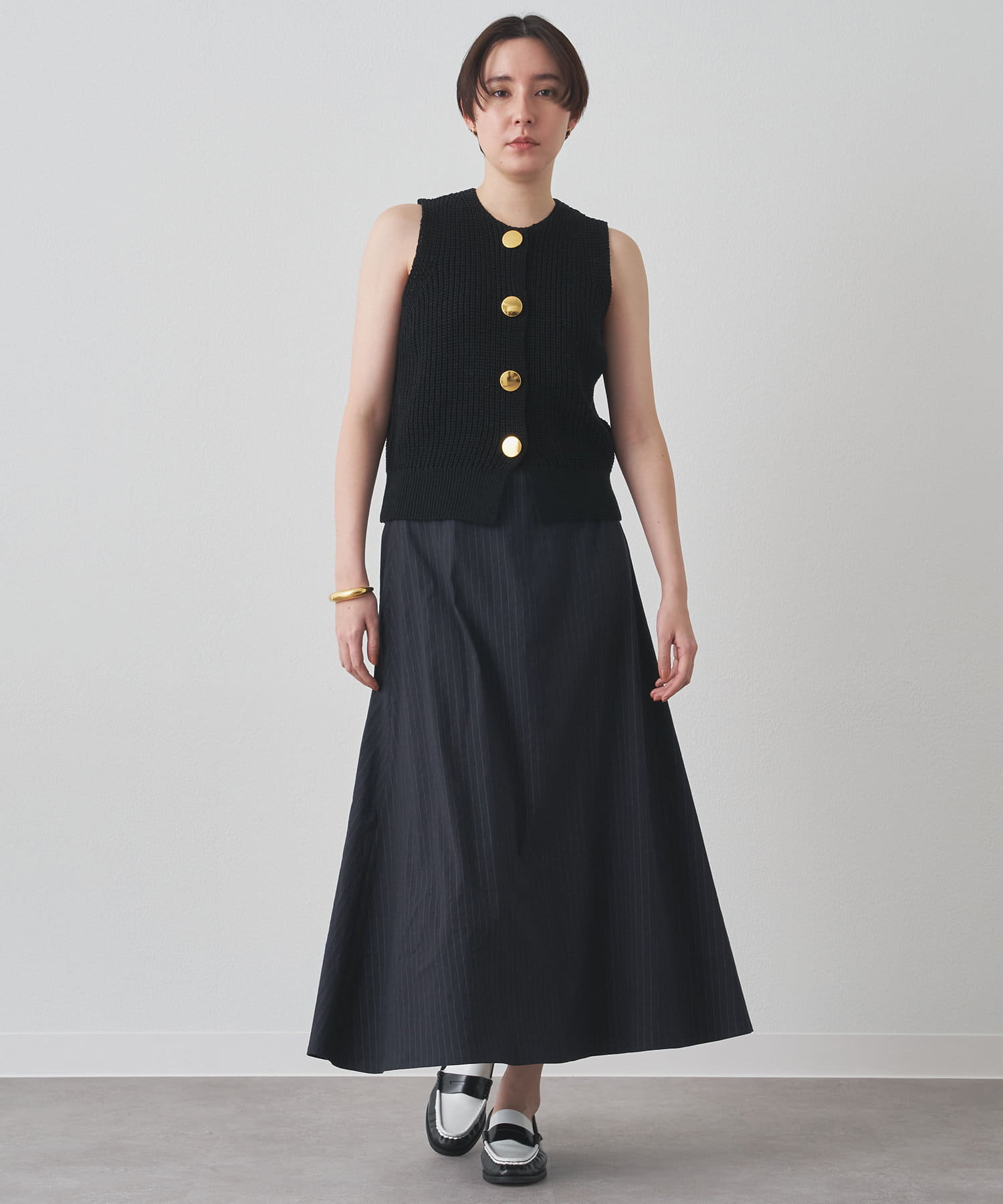 ■大きめの金ボタンがアクセサリー感覚で映えるニットベスト。