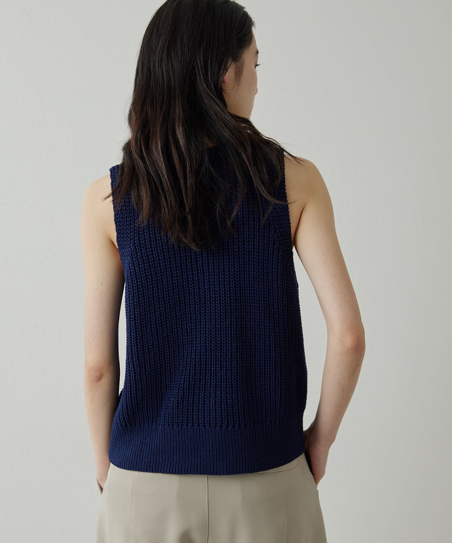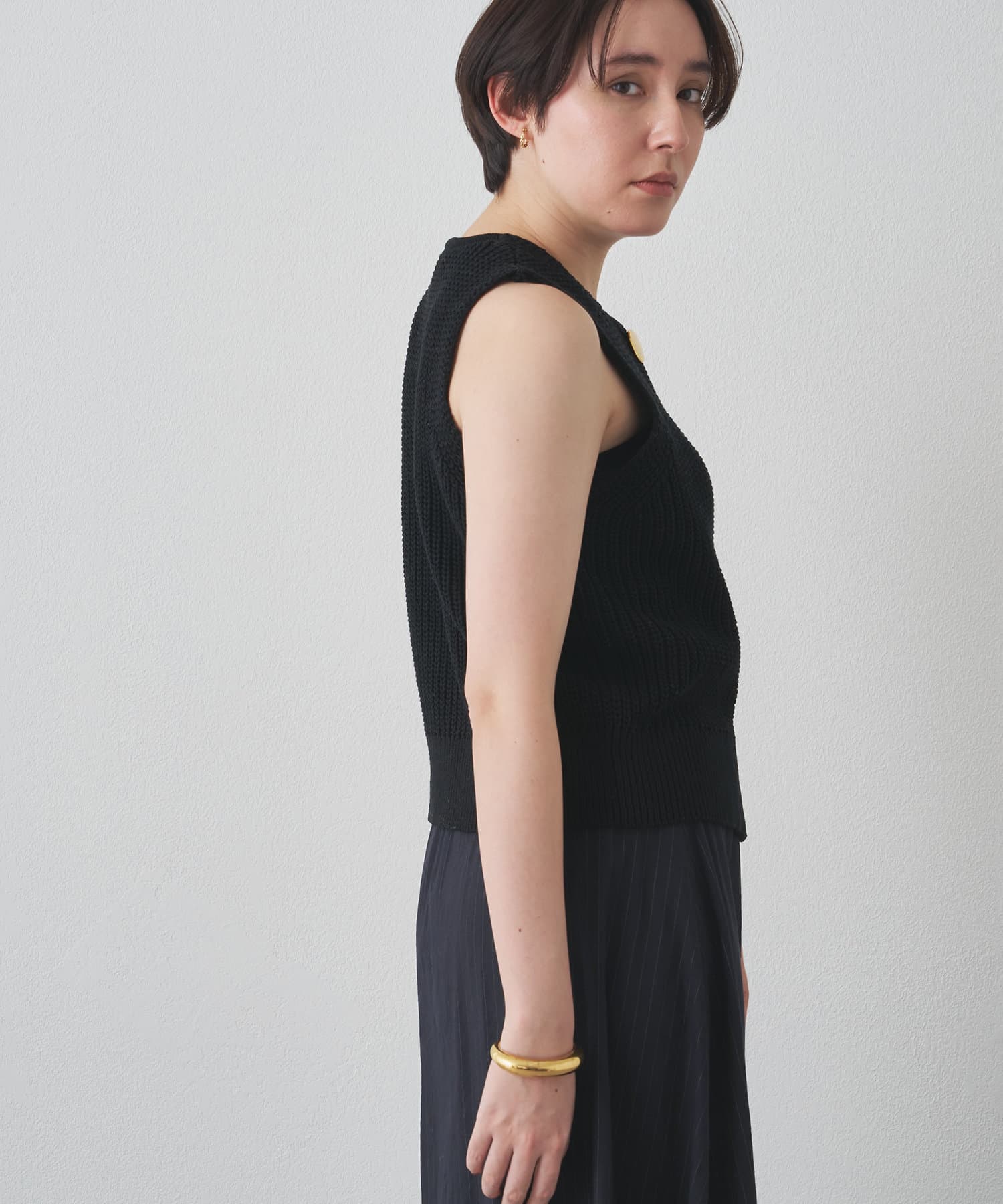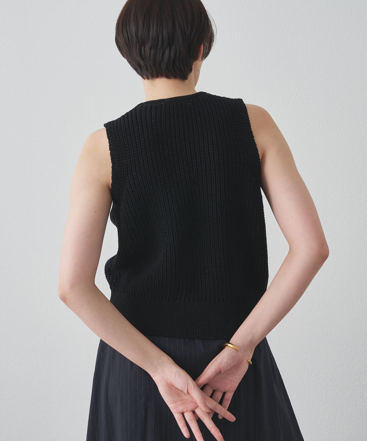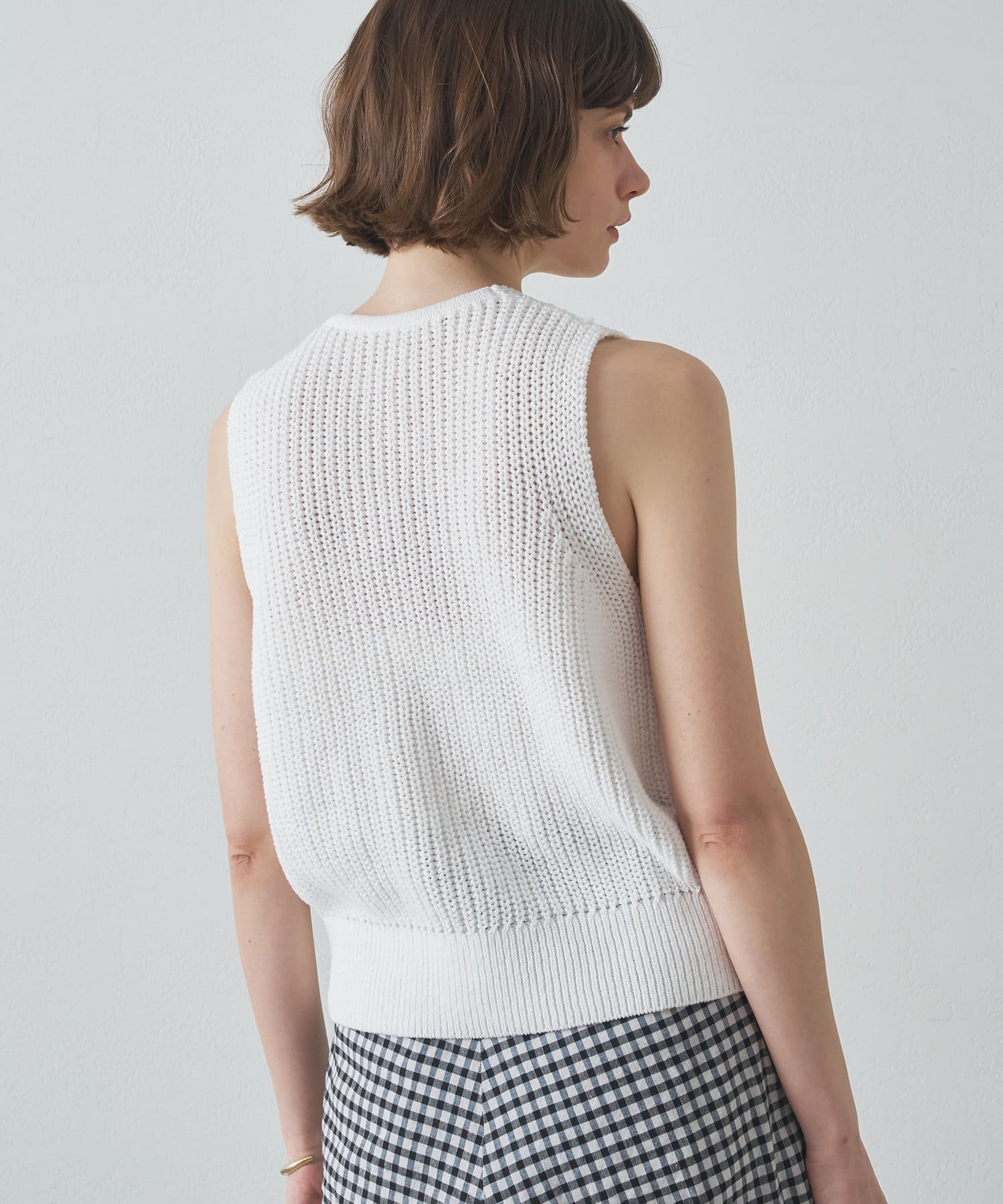 ■ノースリーブニットとしても、他のトップスと重ねてニットベストとしても決まりやすいシルエット。