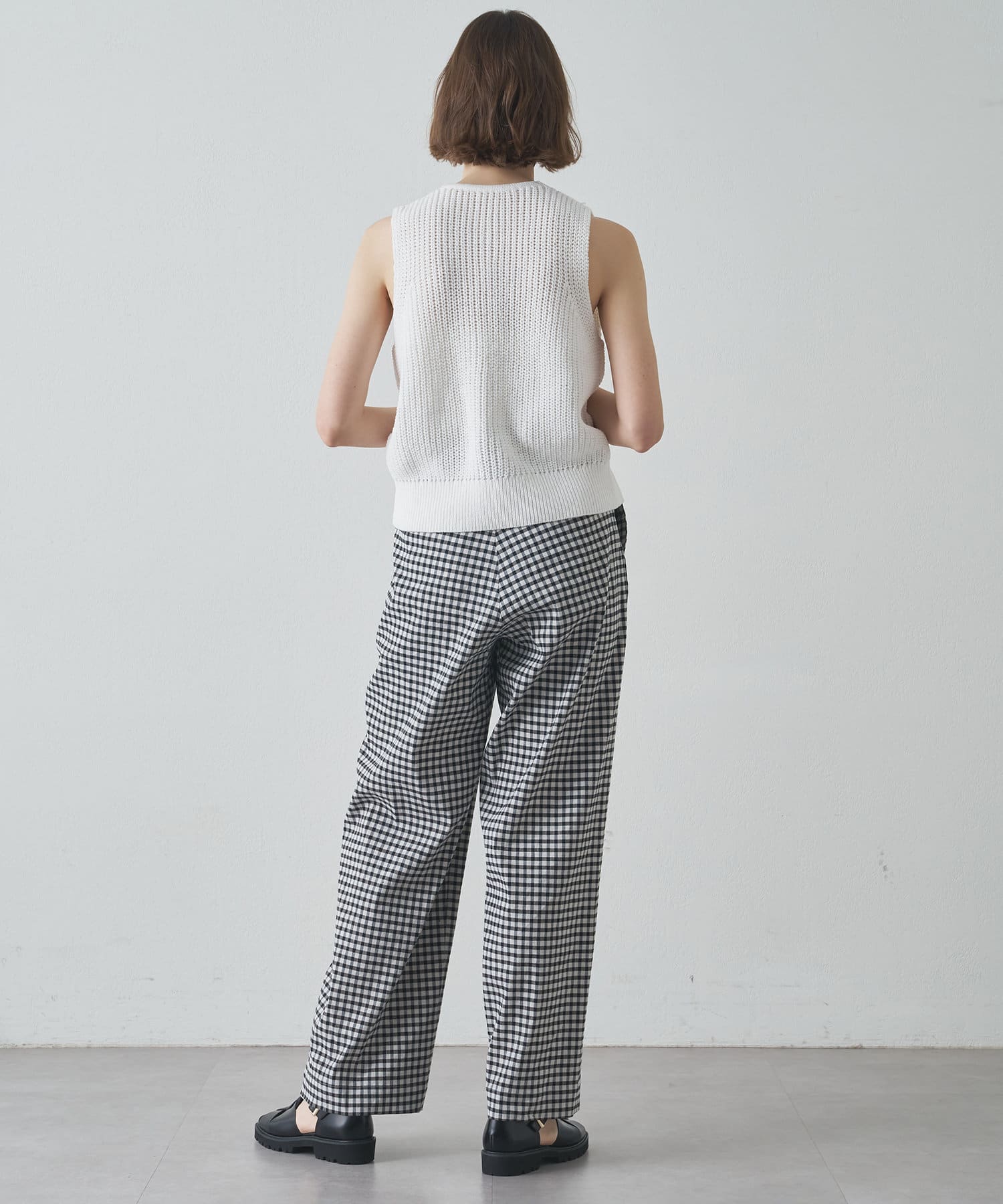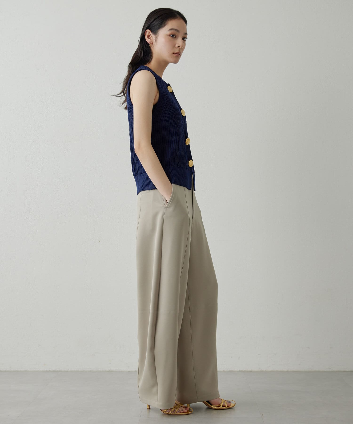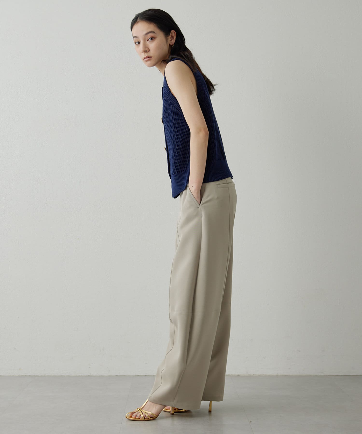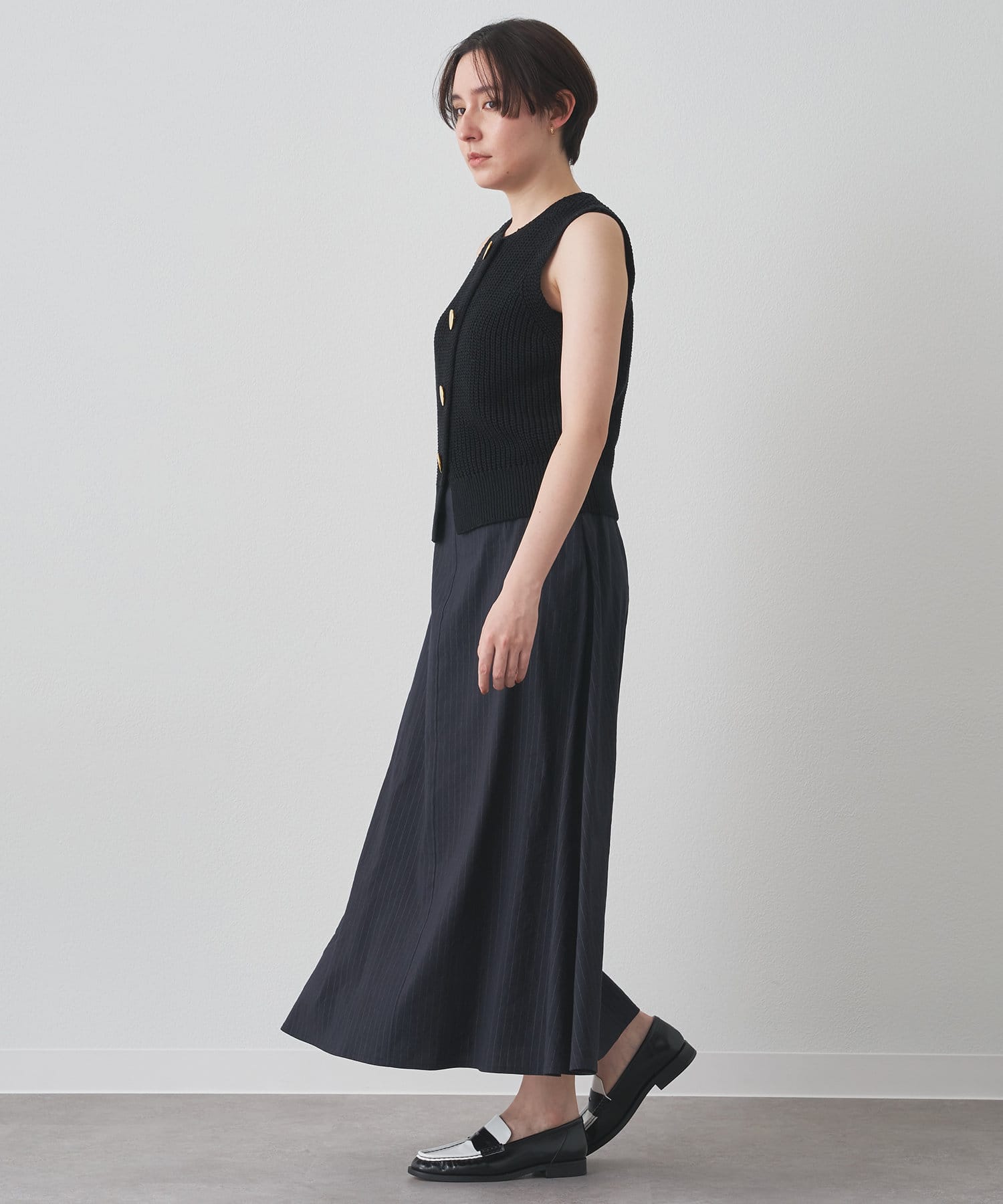 ■ノースリーブニットとしても、他のトップスと重ねてニットベストとしても決まりやすいシルエット。