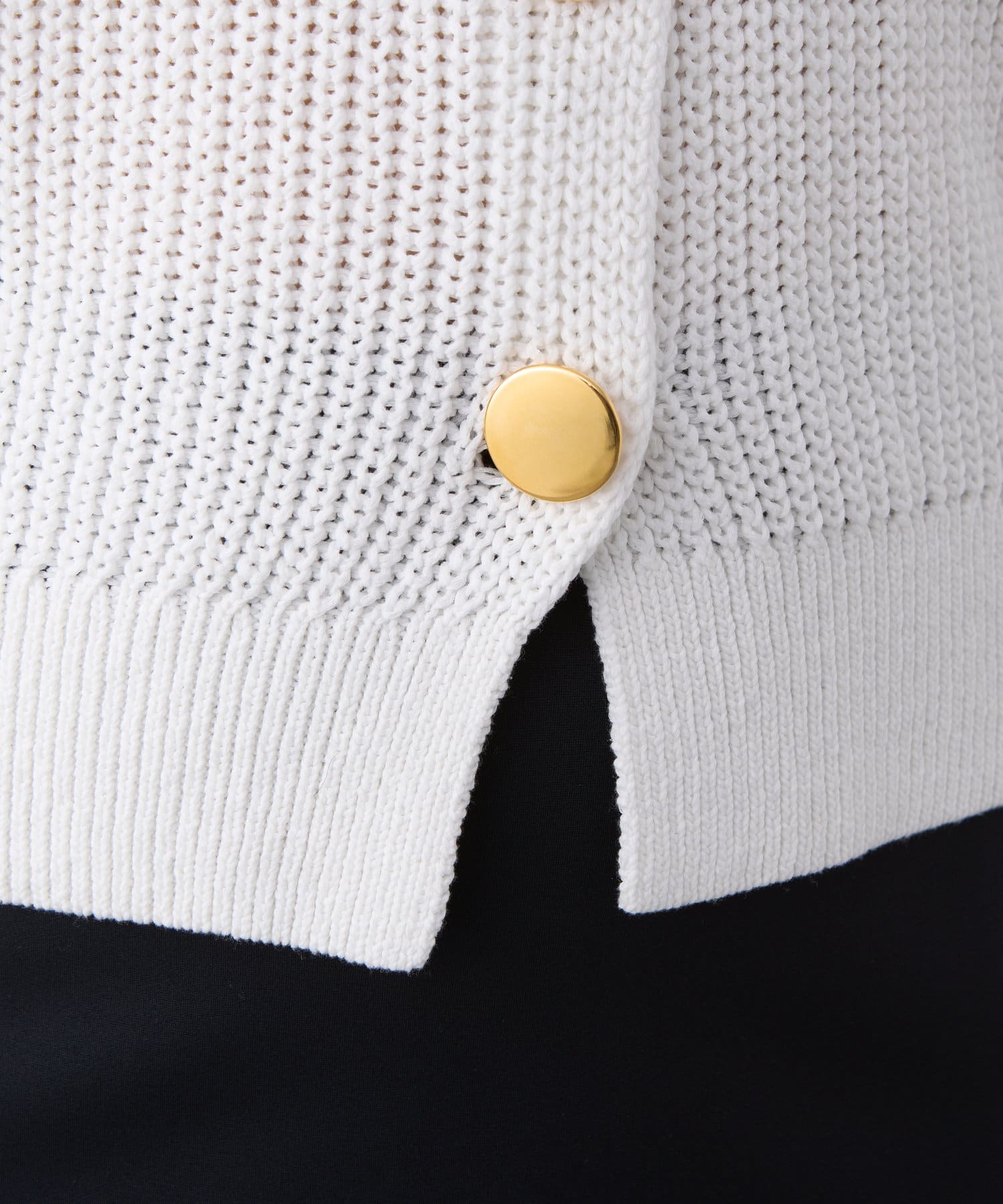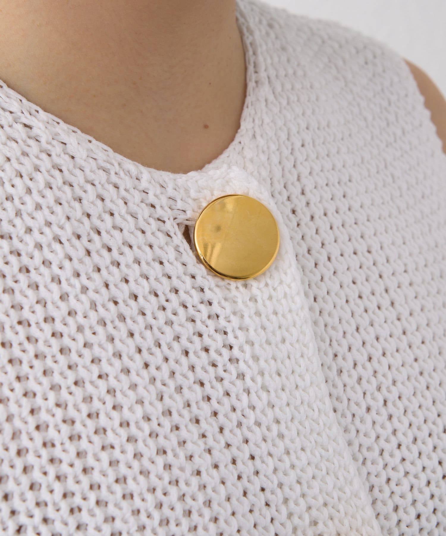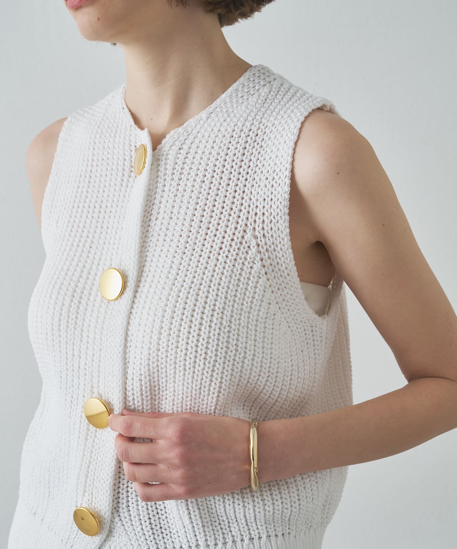 着こなしを印象的に魅せてくれる、金釦付きニットジレ
