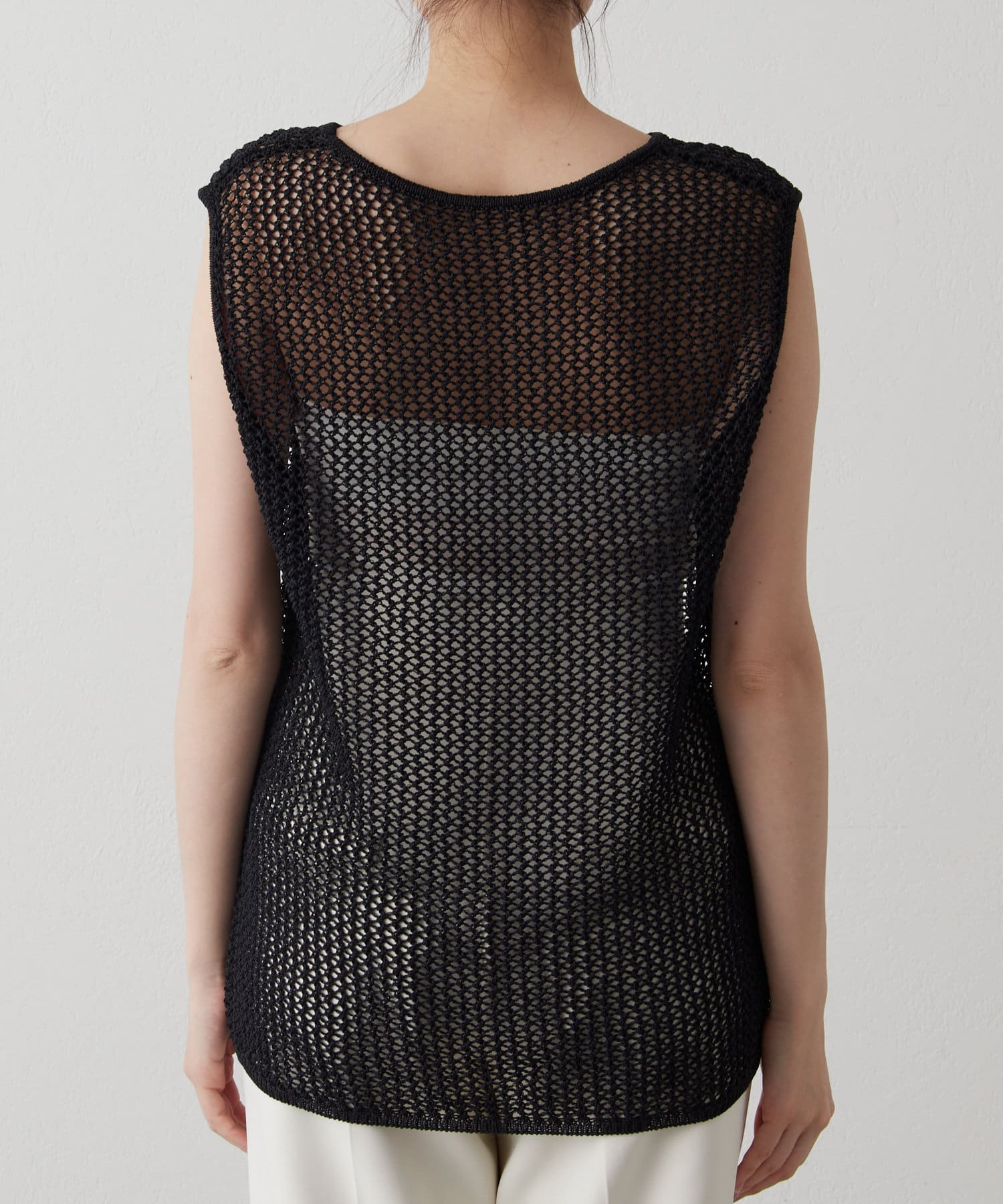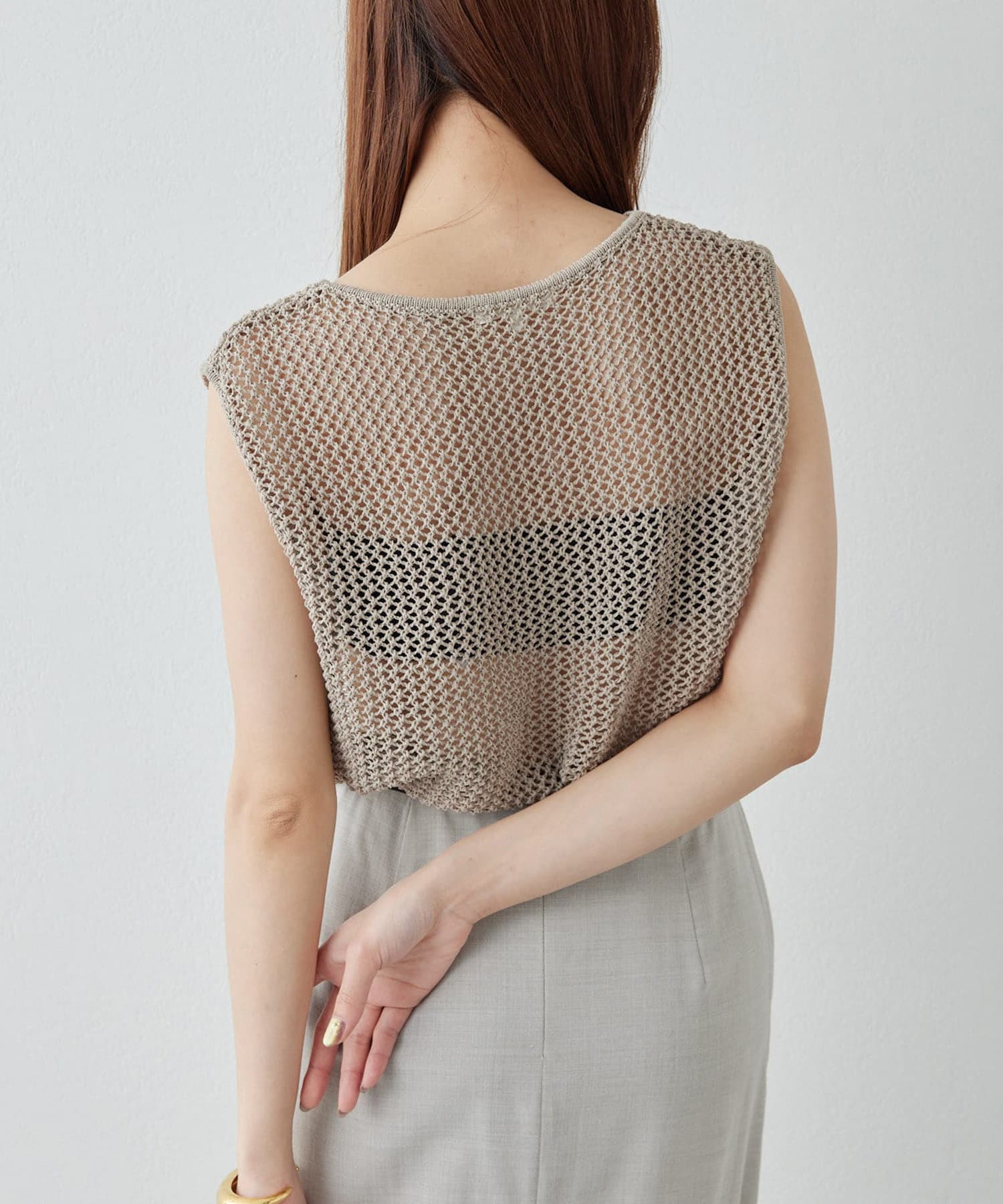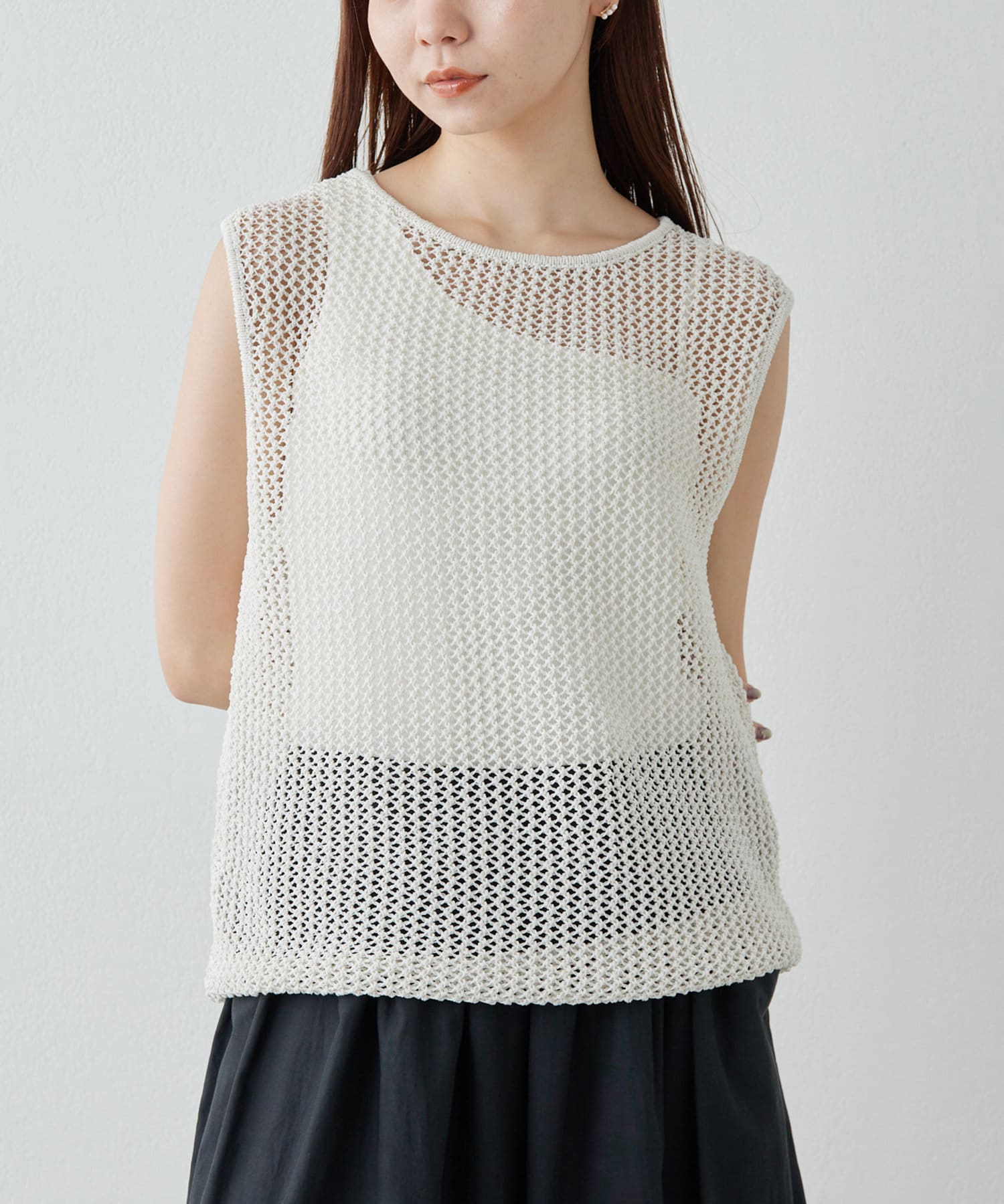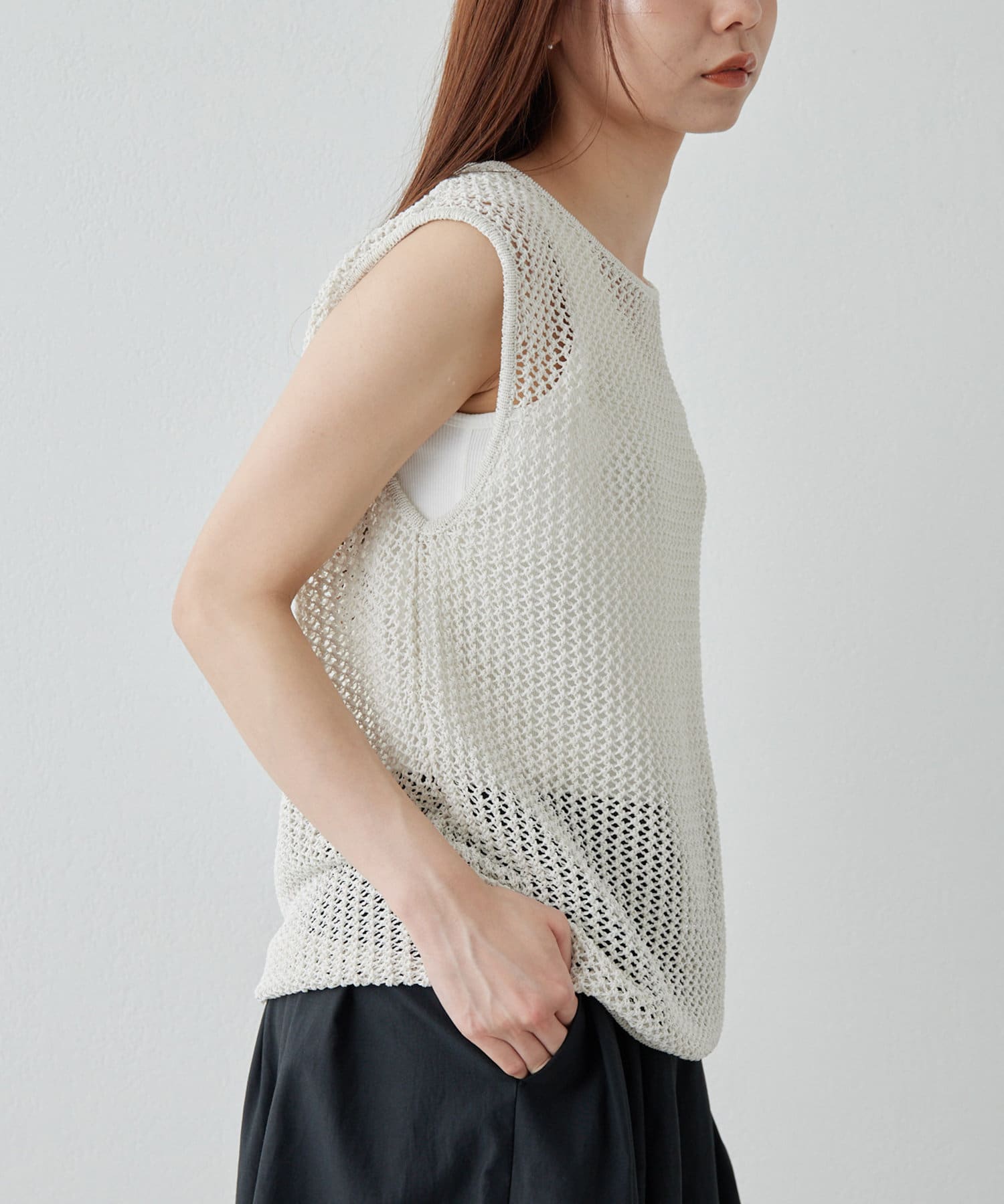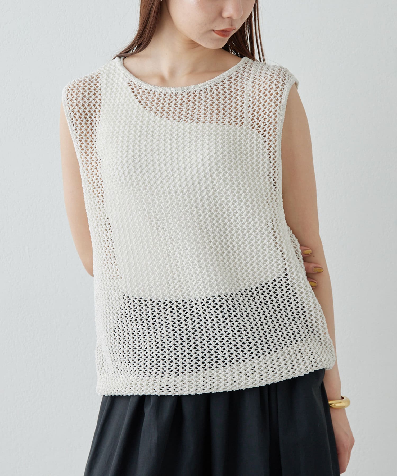 ■清涼感溢れるメッシュ編みのノースリーブニットプルオーバー。