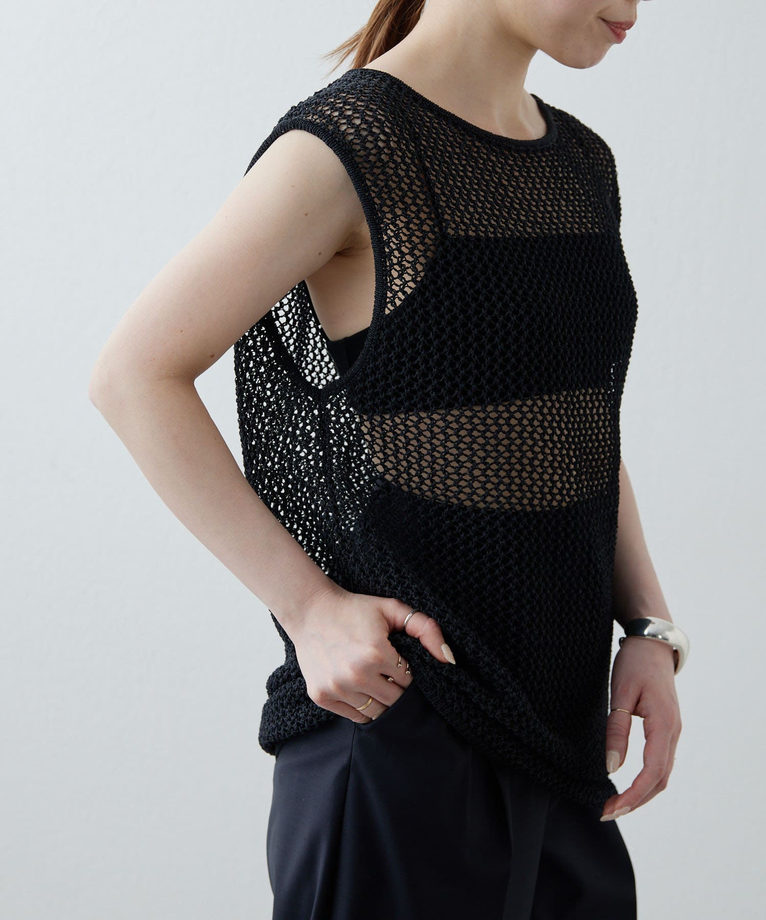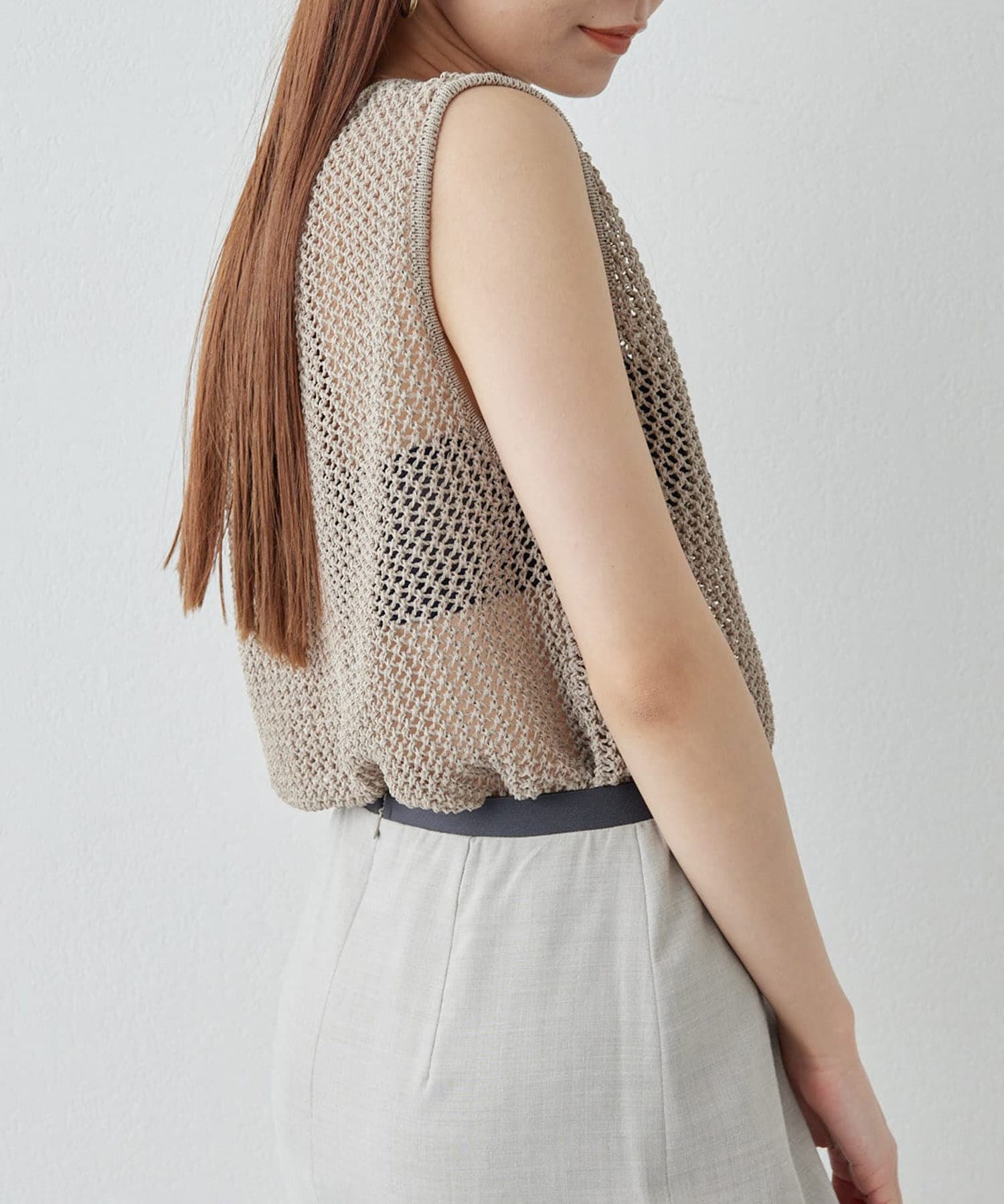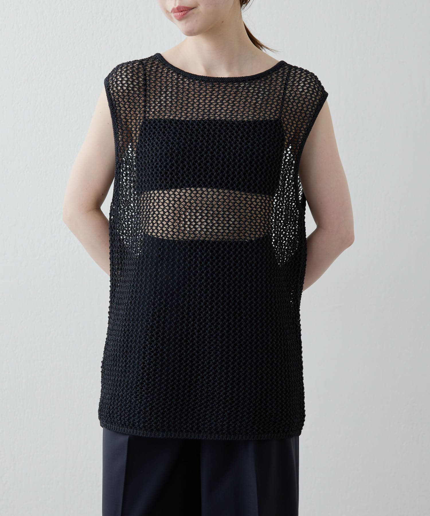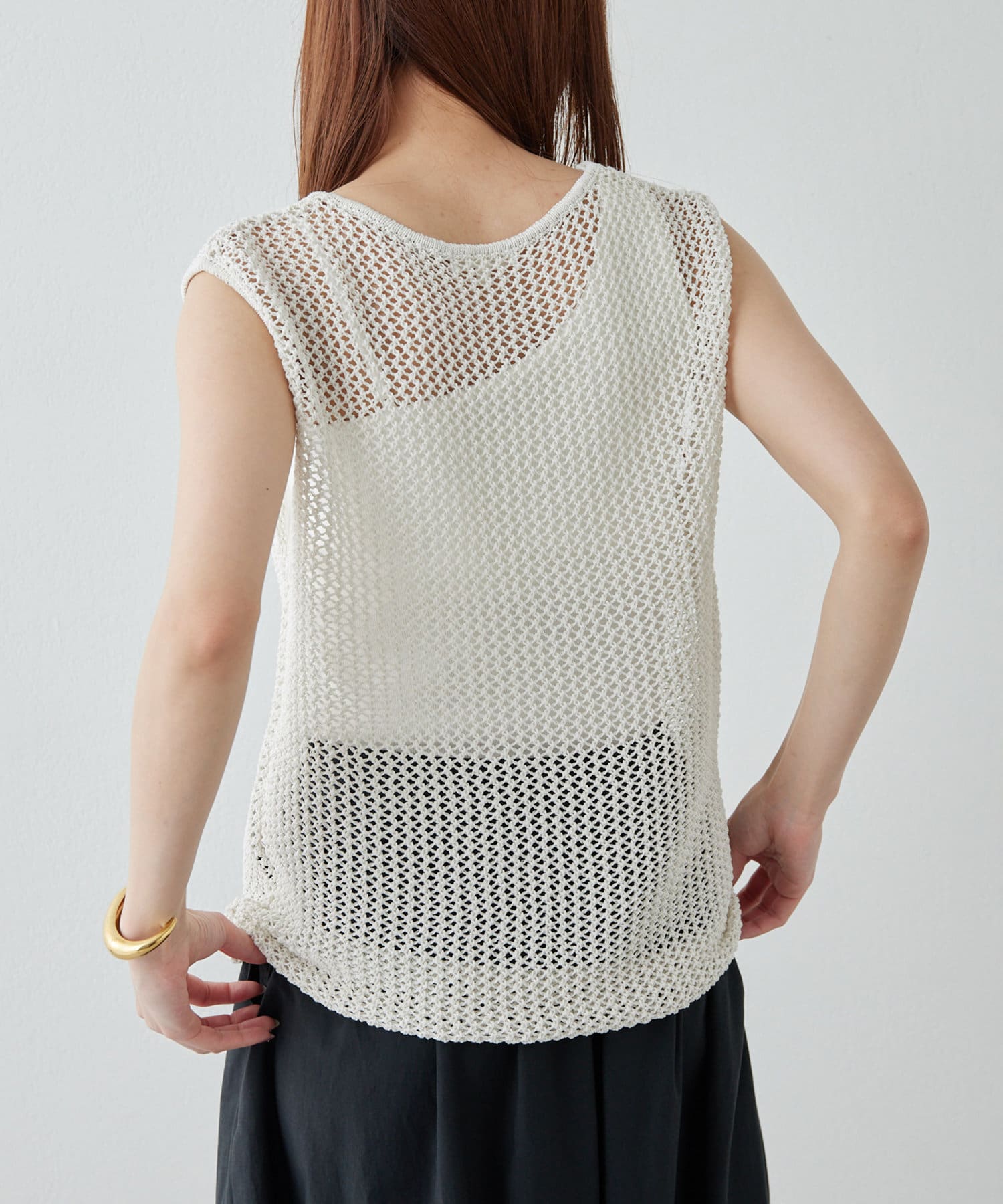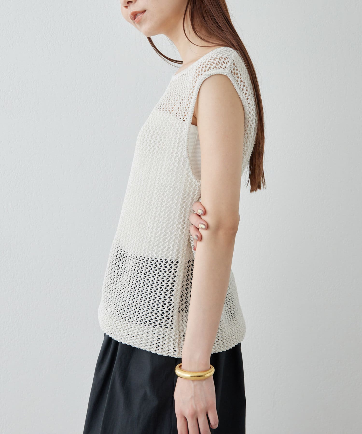 ■清涼感溢れるメッシュ編みのノースリーブニットプルオーバー。