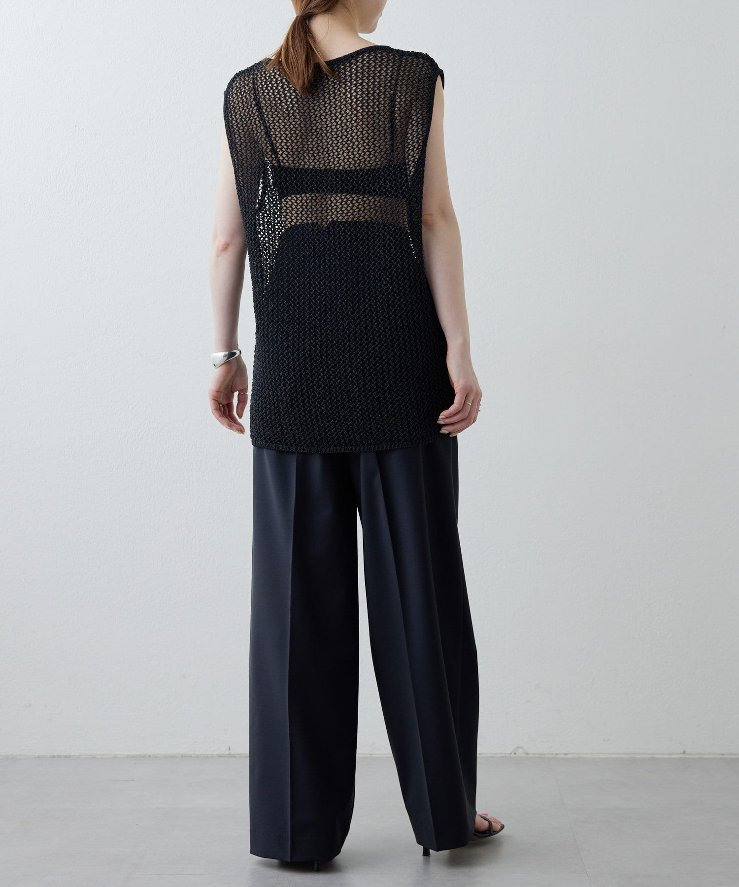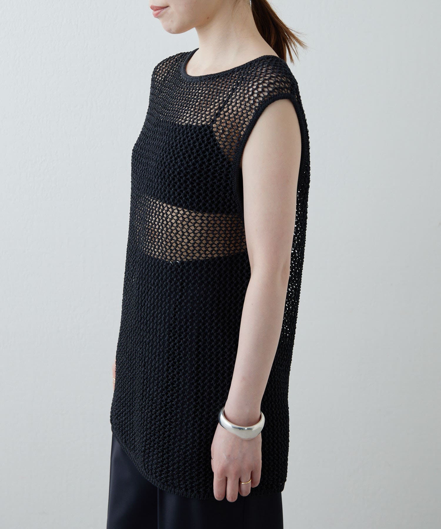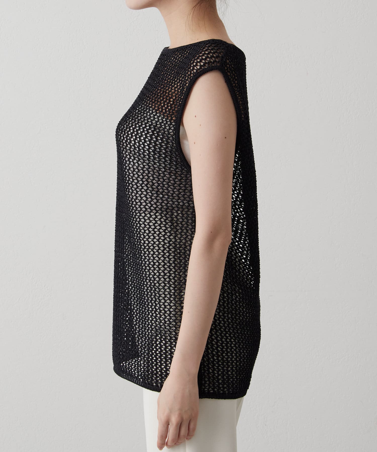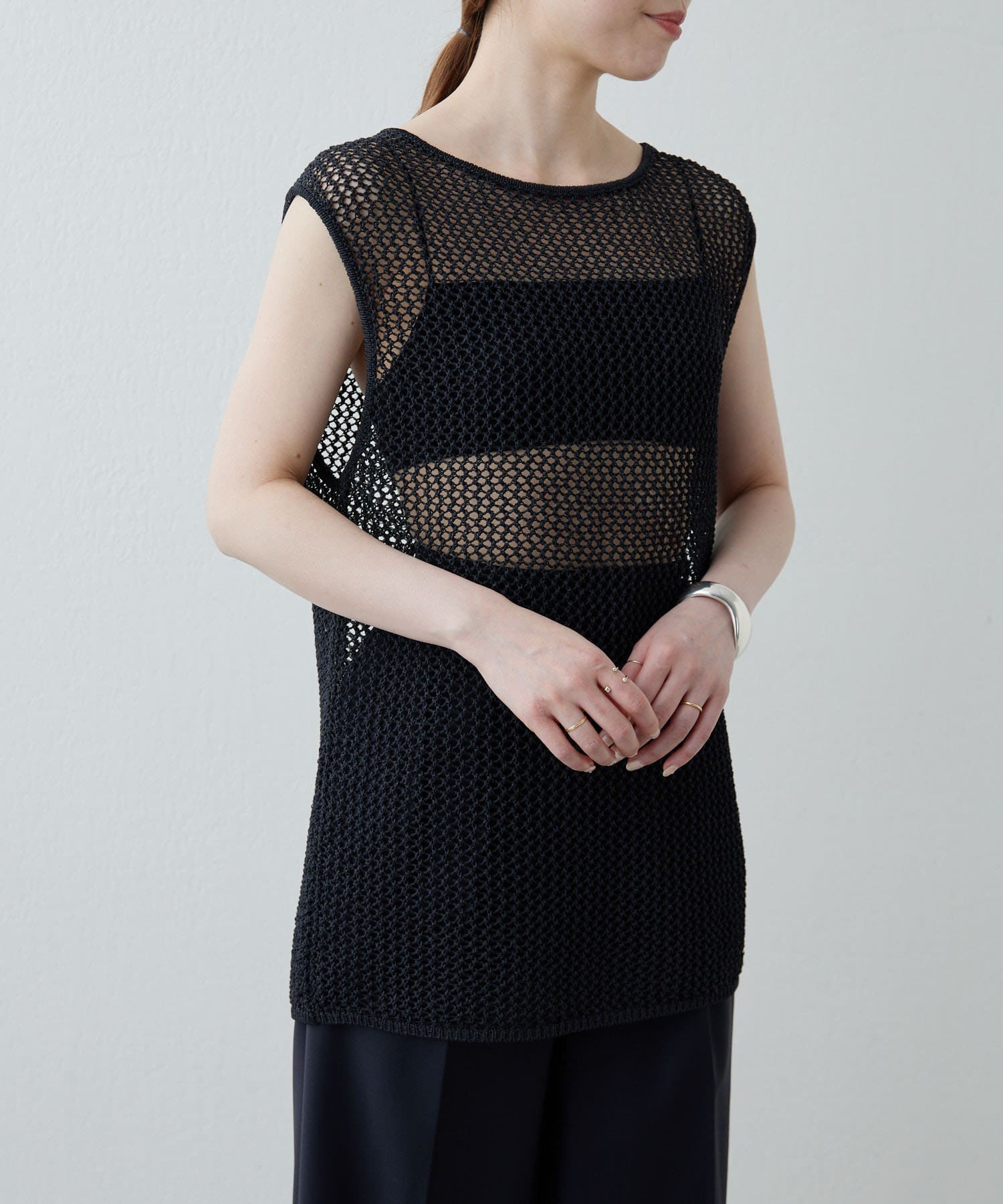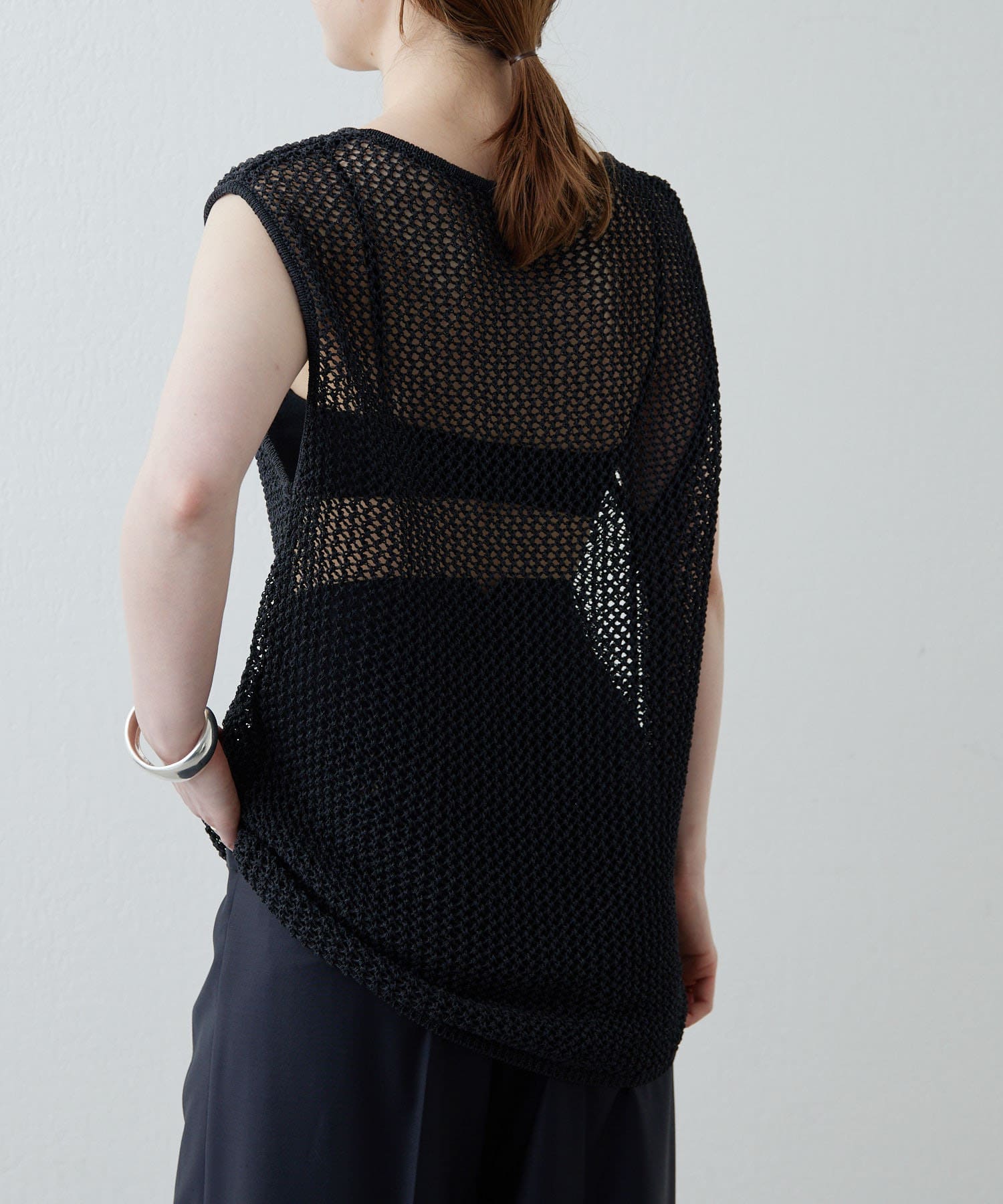 ■清涼感溢れるメッシュ編みのノースリーブニットプルオーバー。
