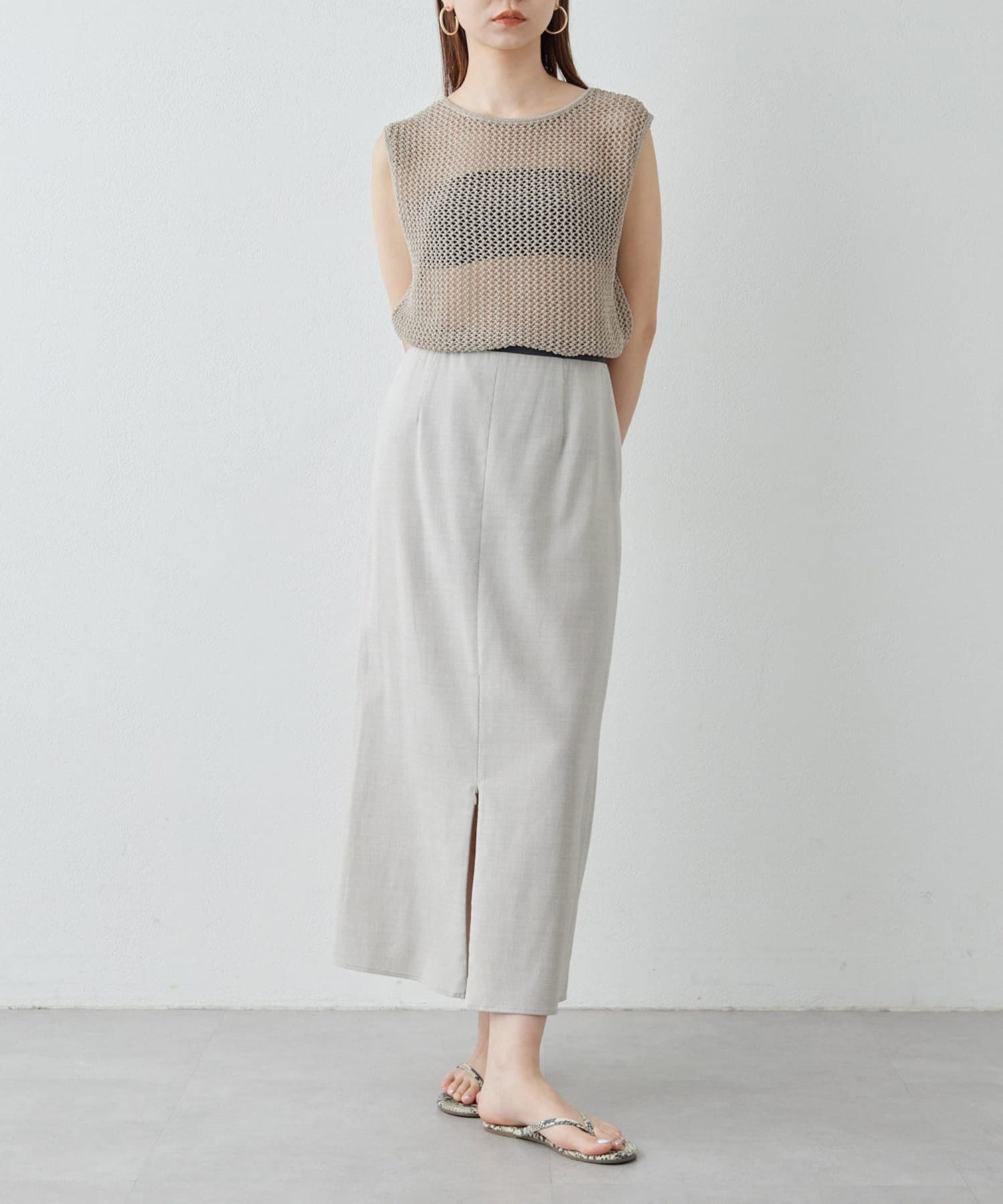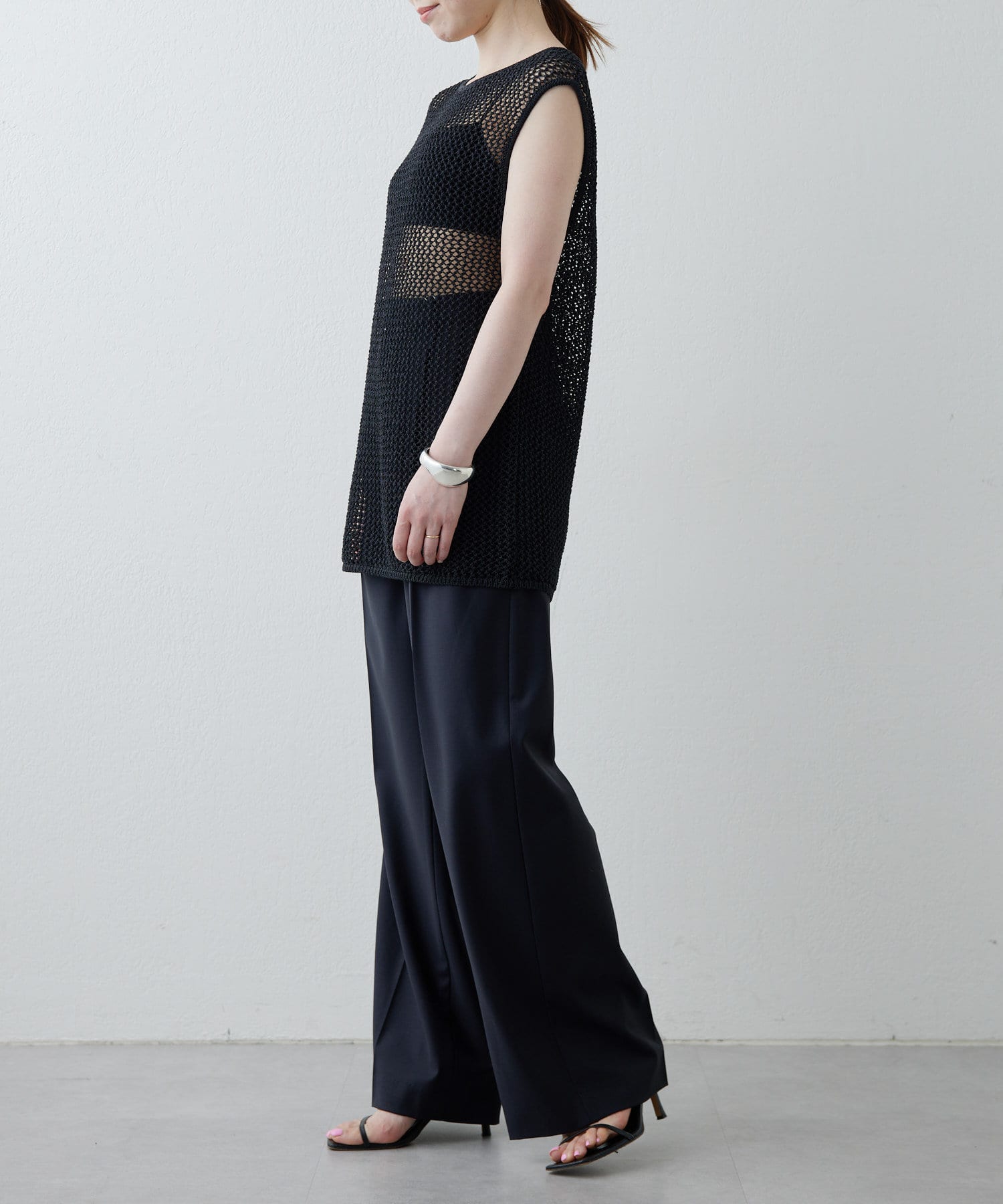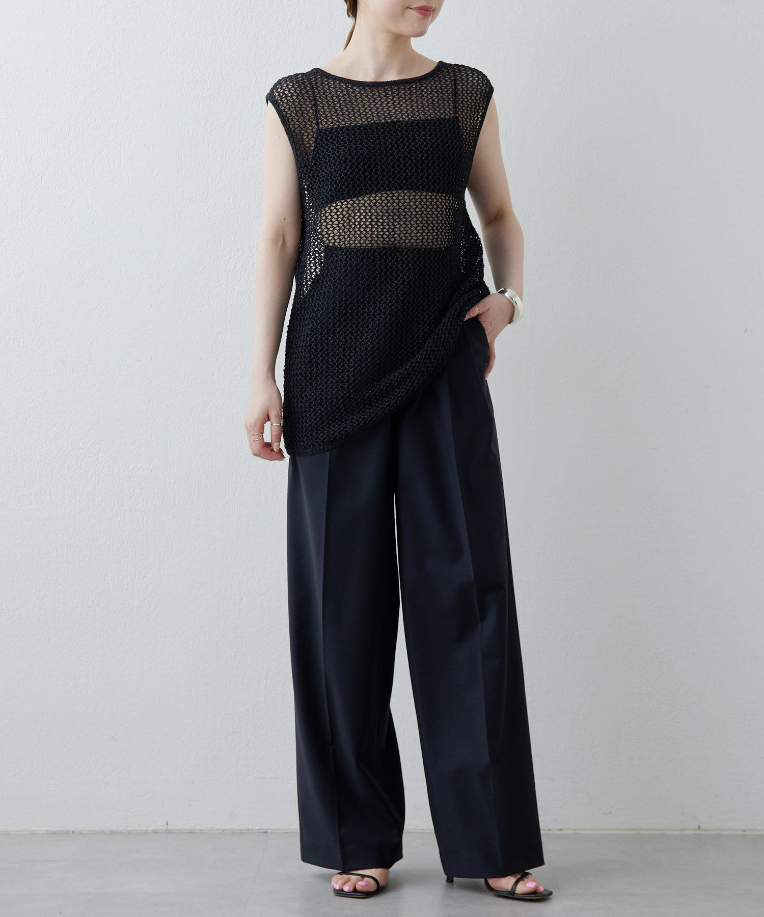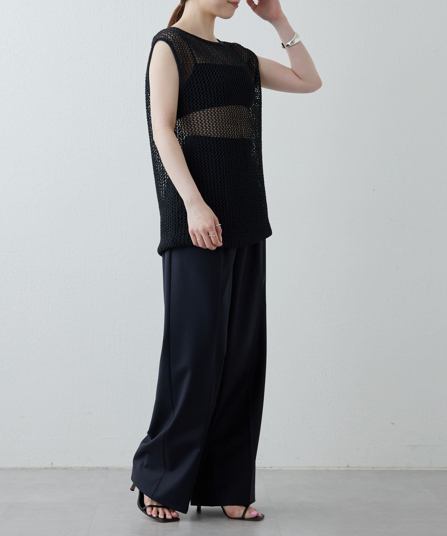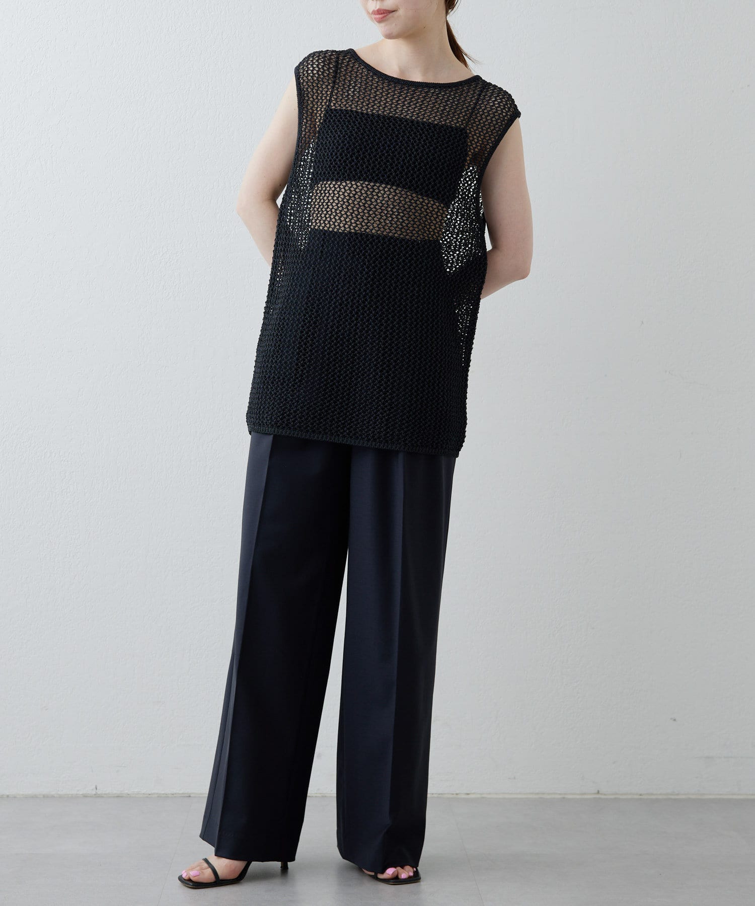 ■清涼感溢れるメッシュ編みのノースリーブニットプルオーバー。