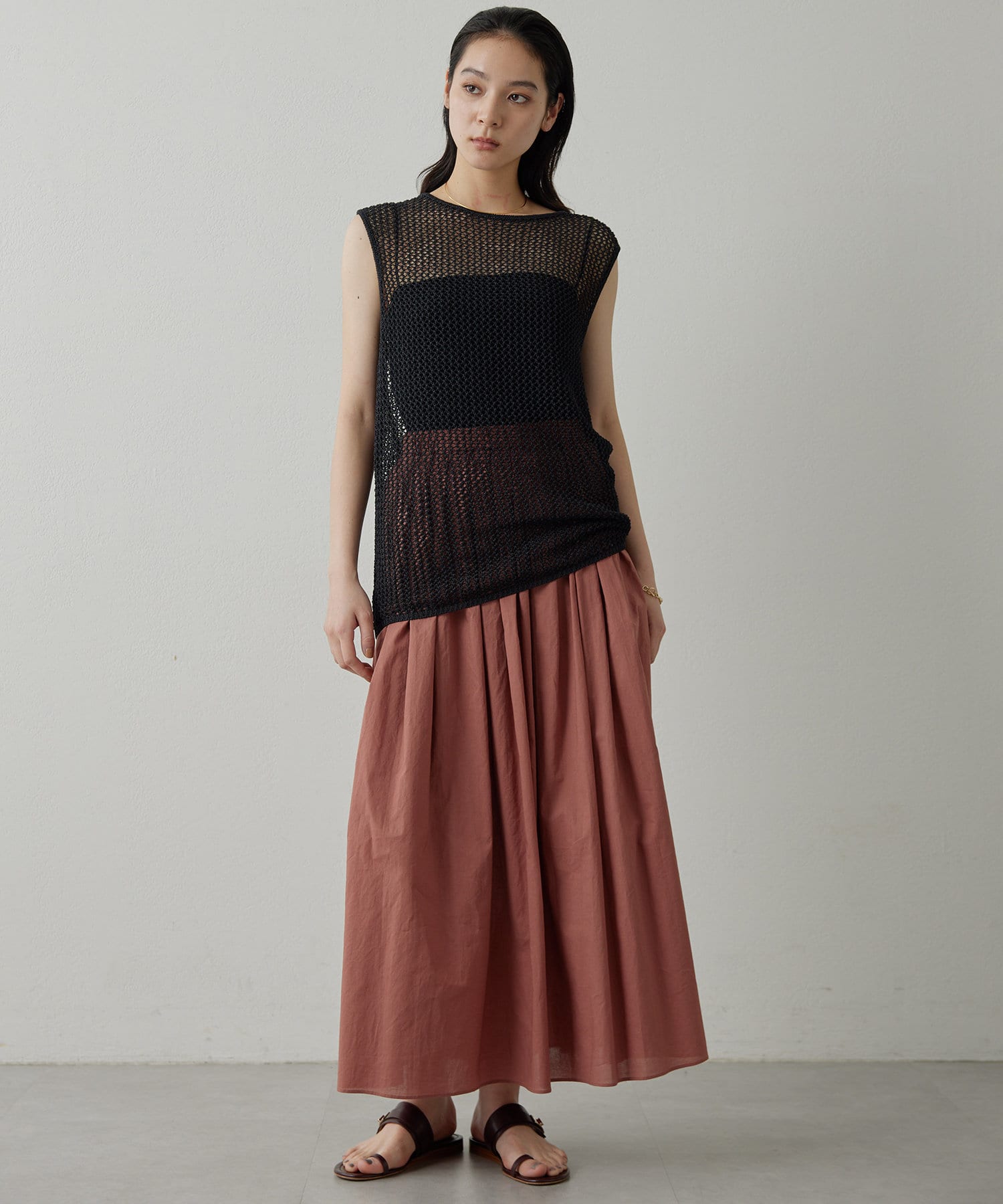 ヘルシーな着こなしを品良く楽しめるメッシュノースリニット
