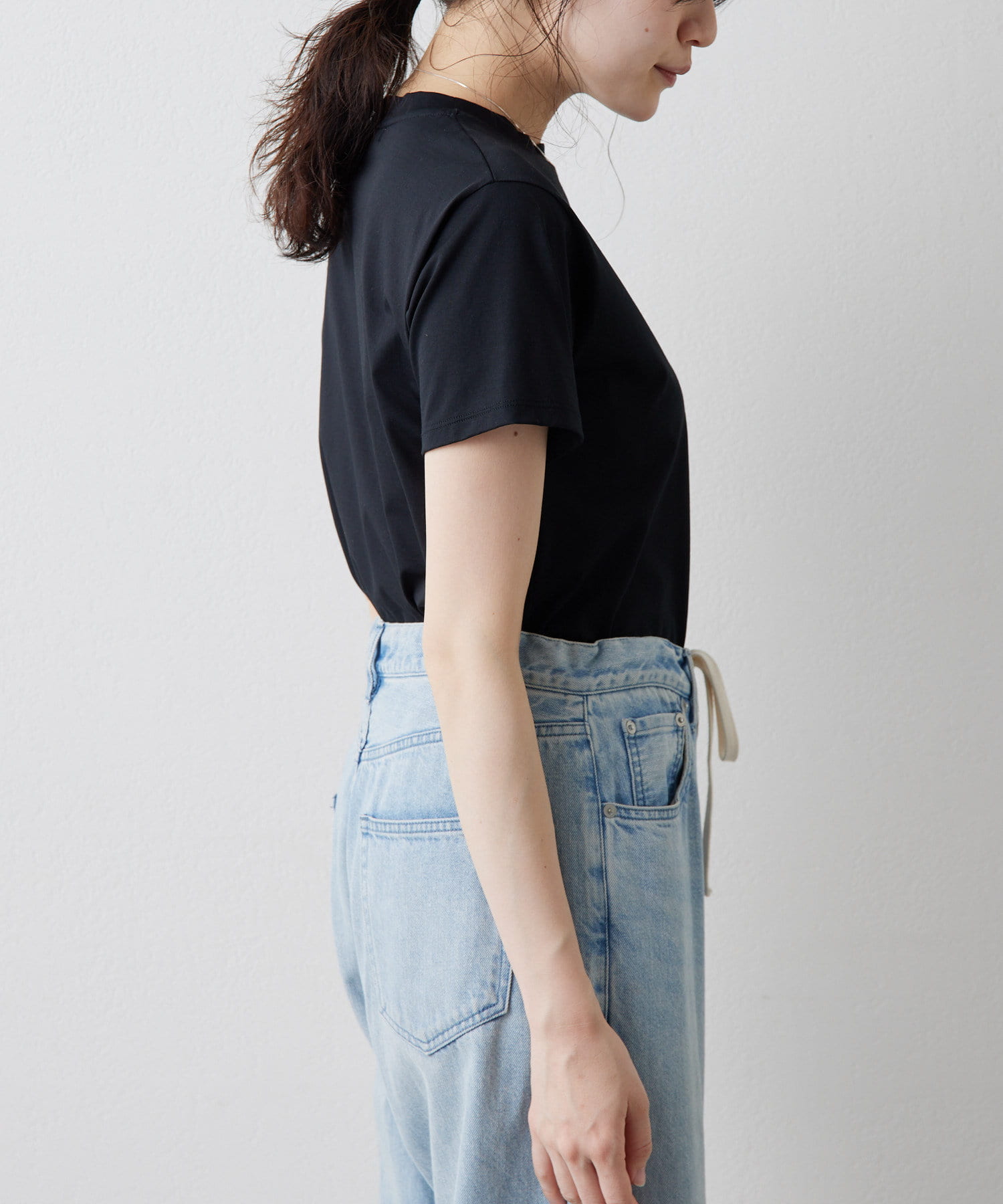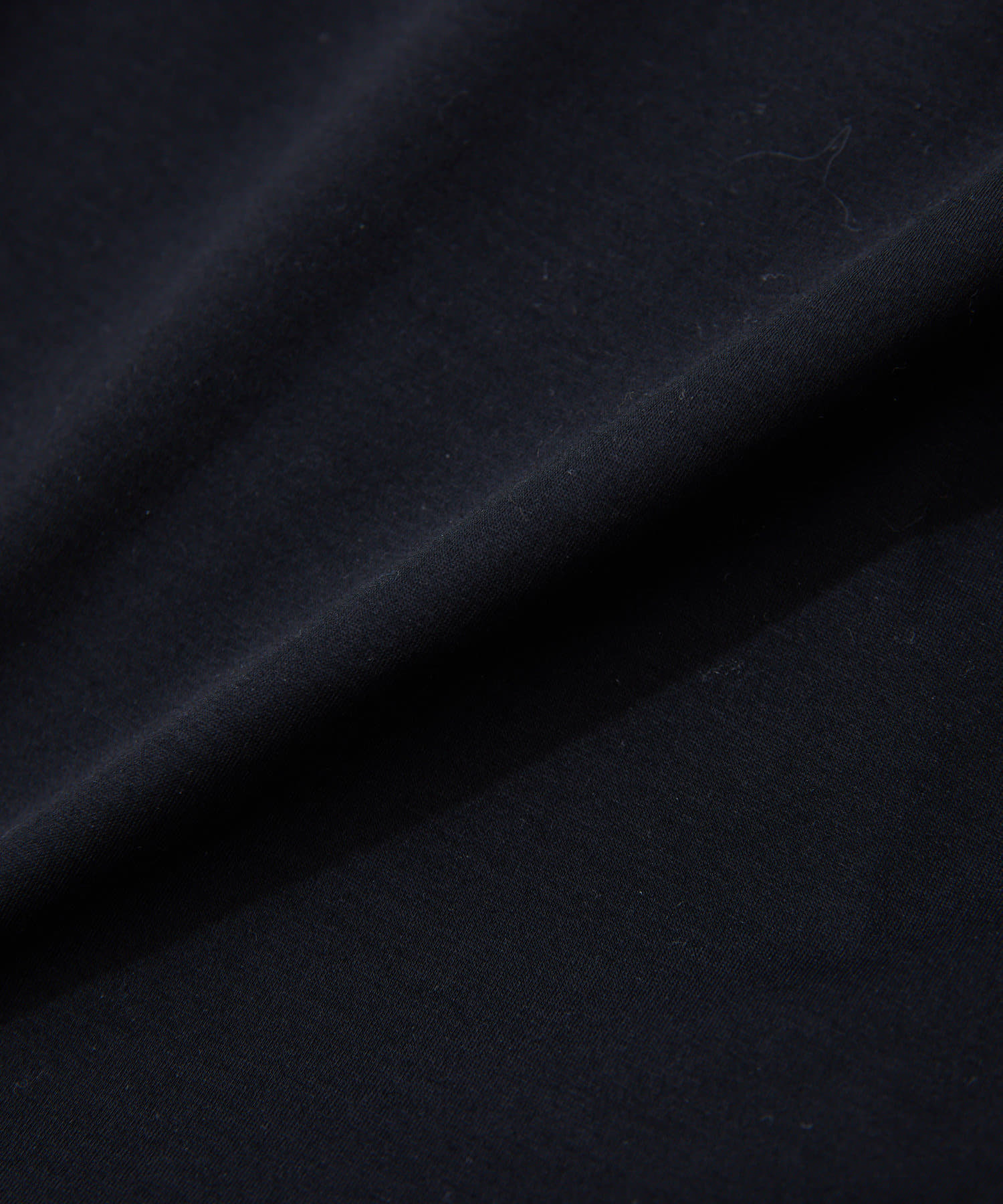 毛羽を極限まで落として表面をクリアにして、さらに特殊加工でシルクのような滑らかでサラサラな風合いに仕上げた繊細な天竺素材。