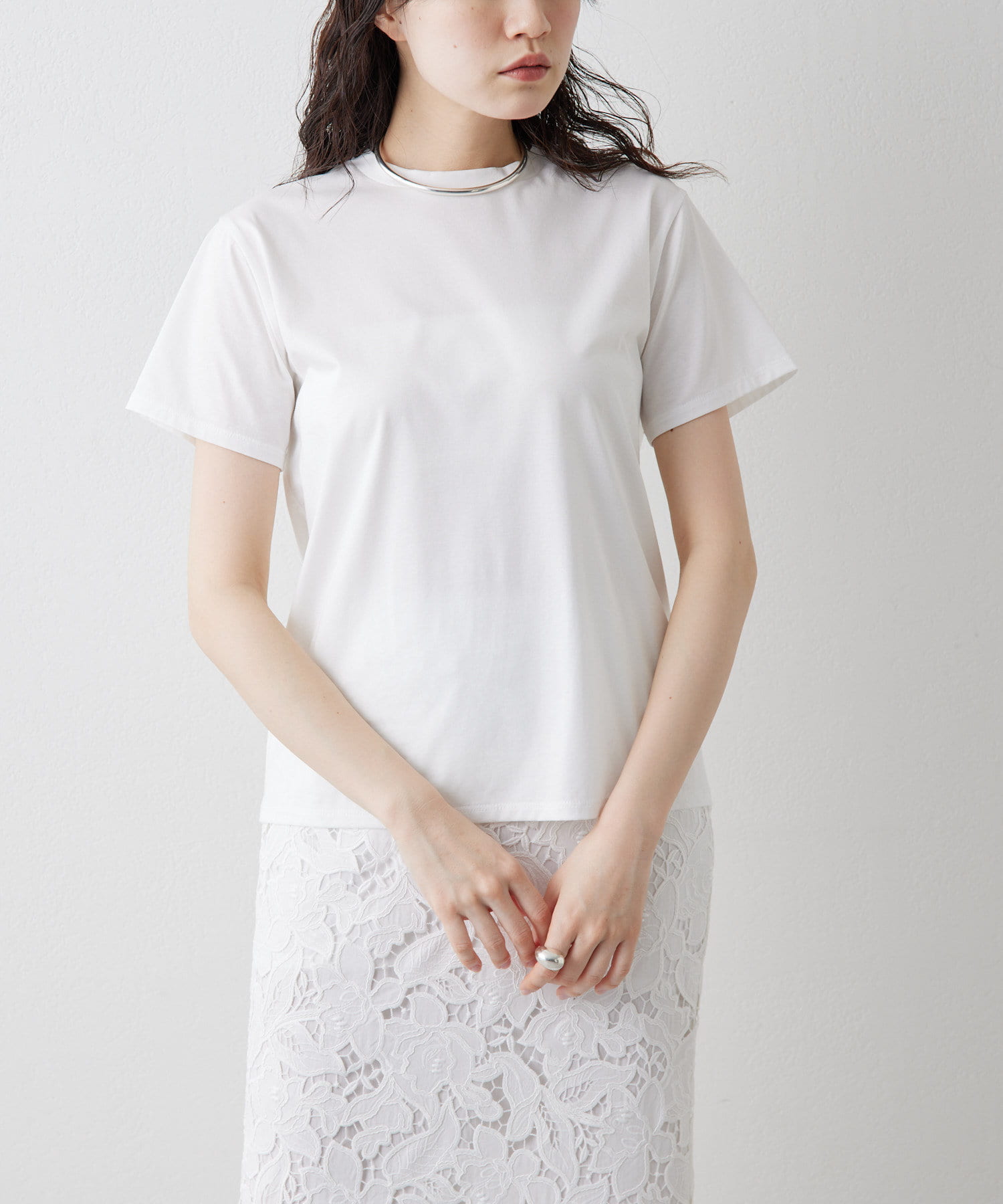 ■大きすぎないラウンドネックがすっきりと見せてくれる一枚。