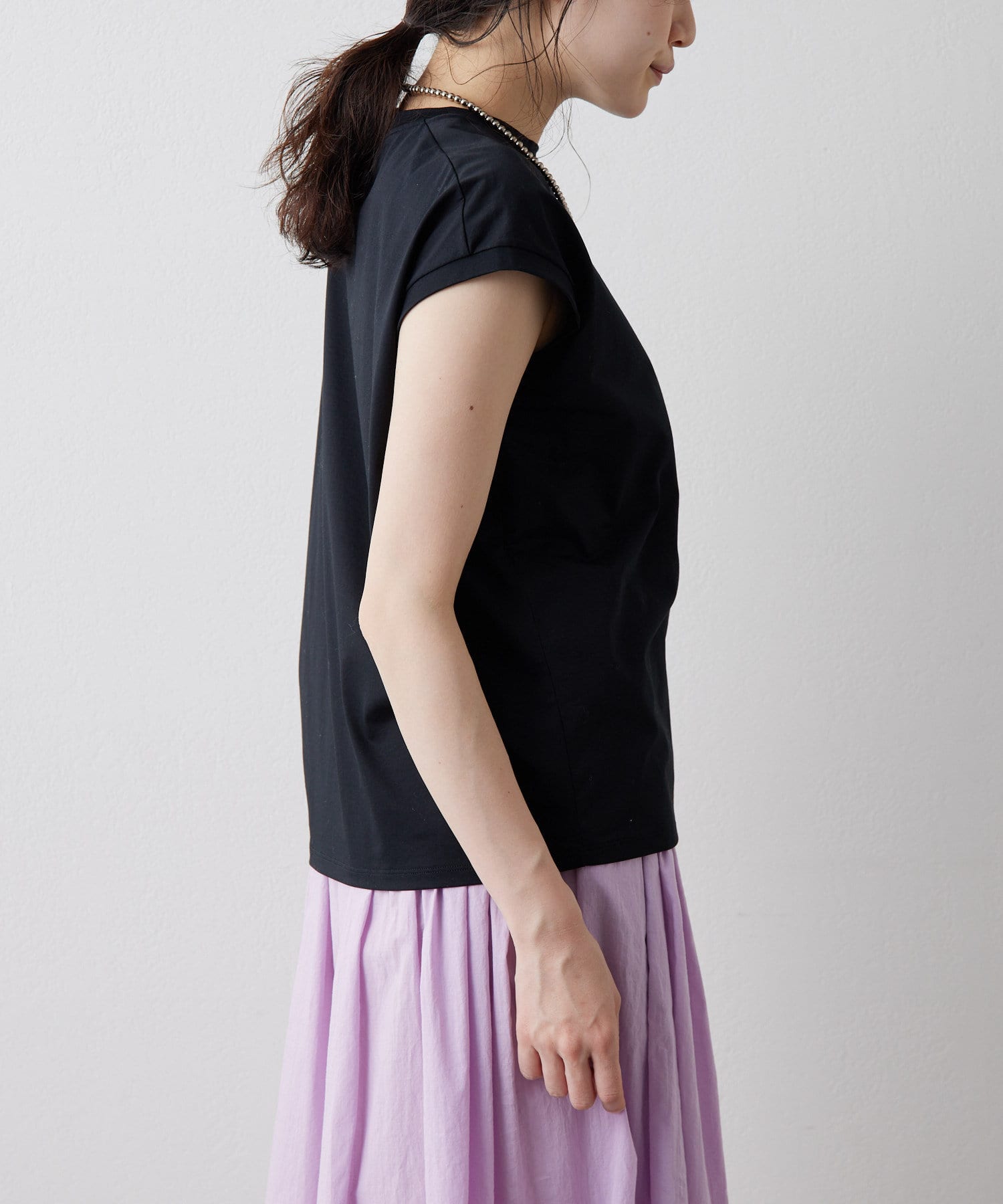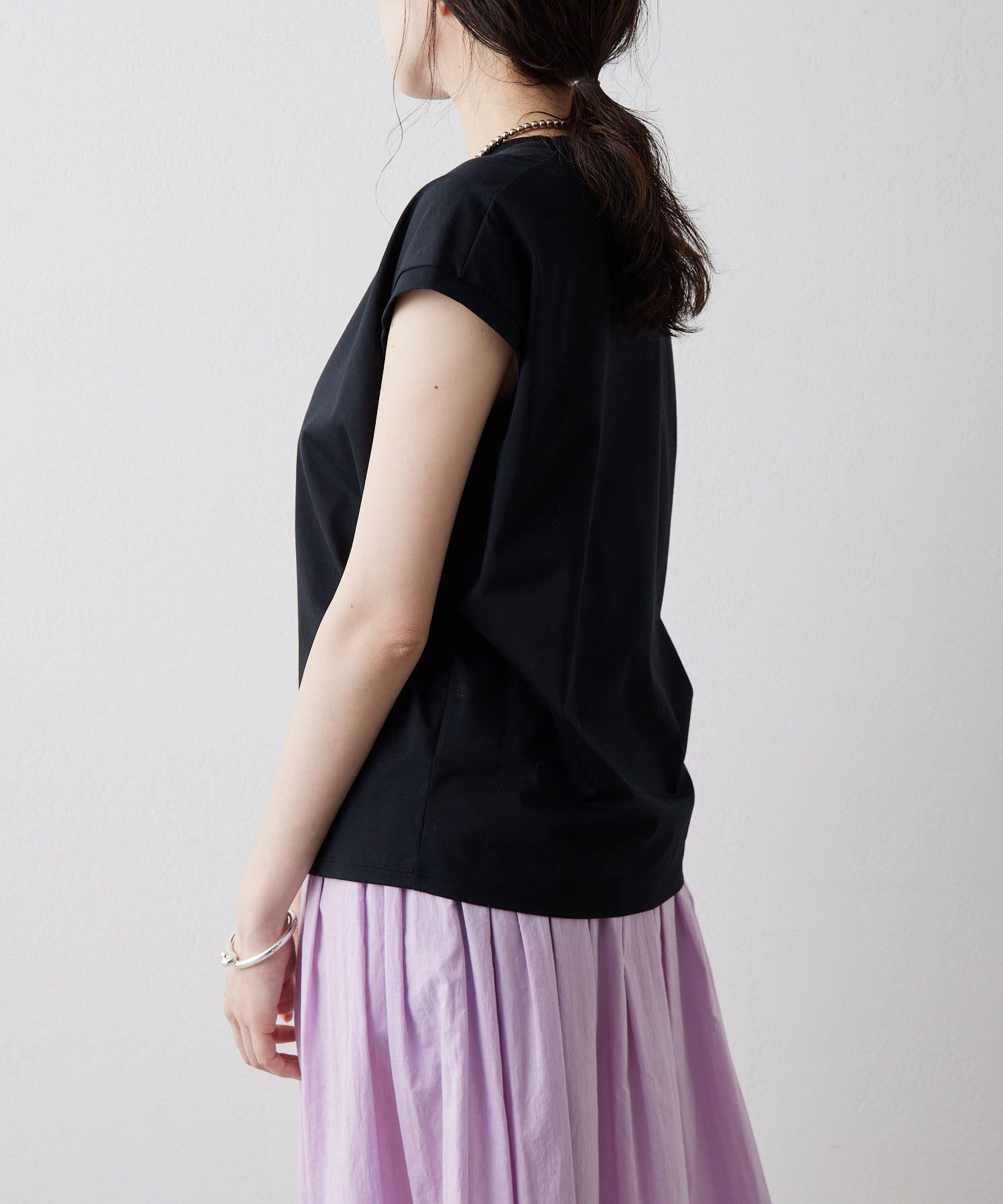 シンプルデザインが嬉しい、上品なフレンチスリーブTEE