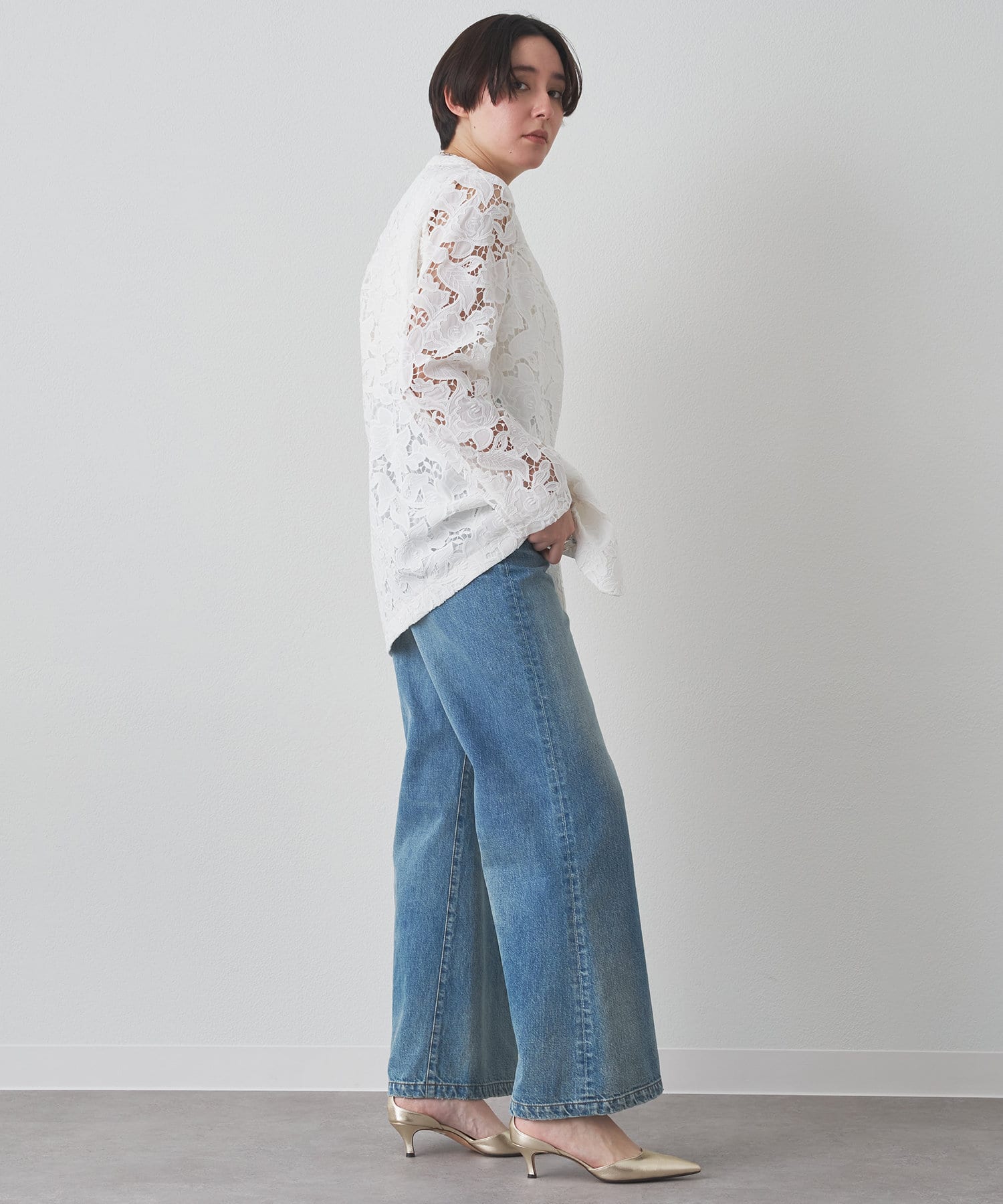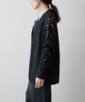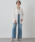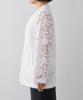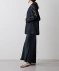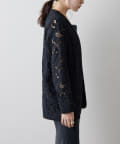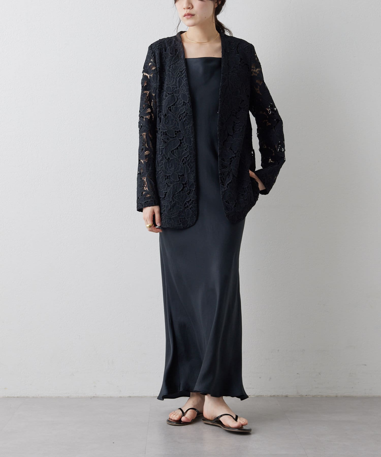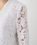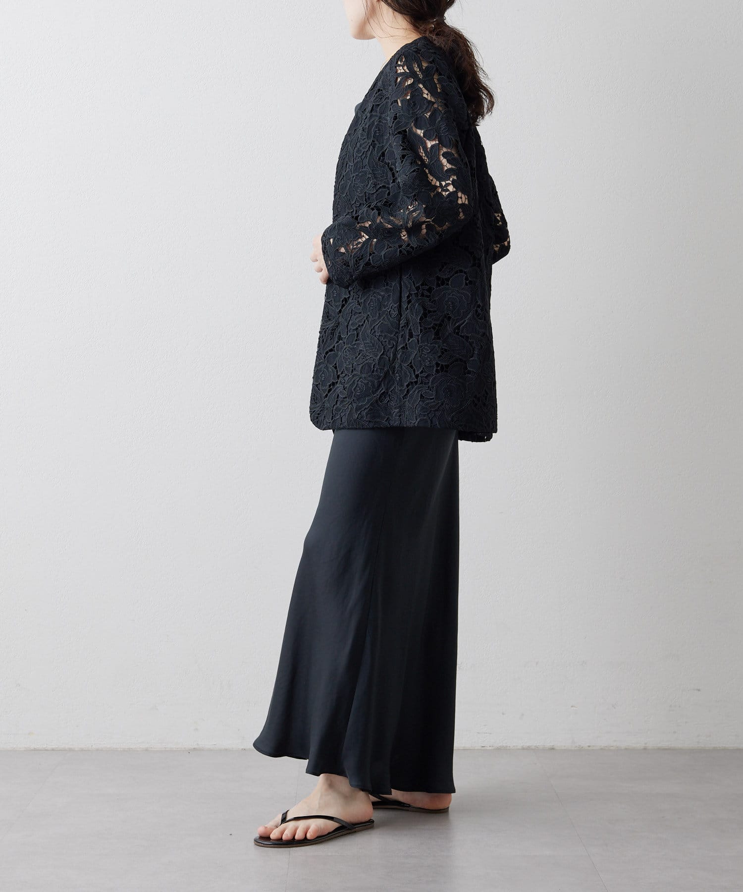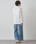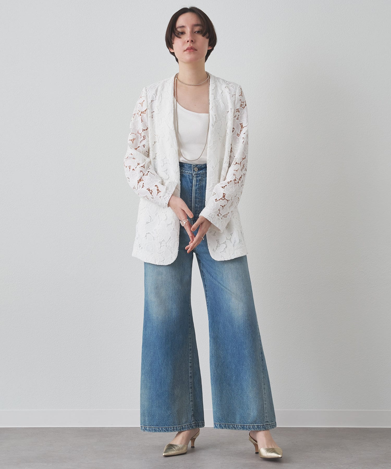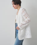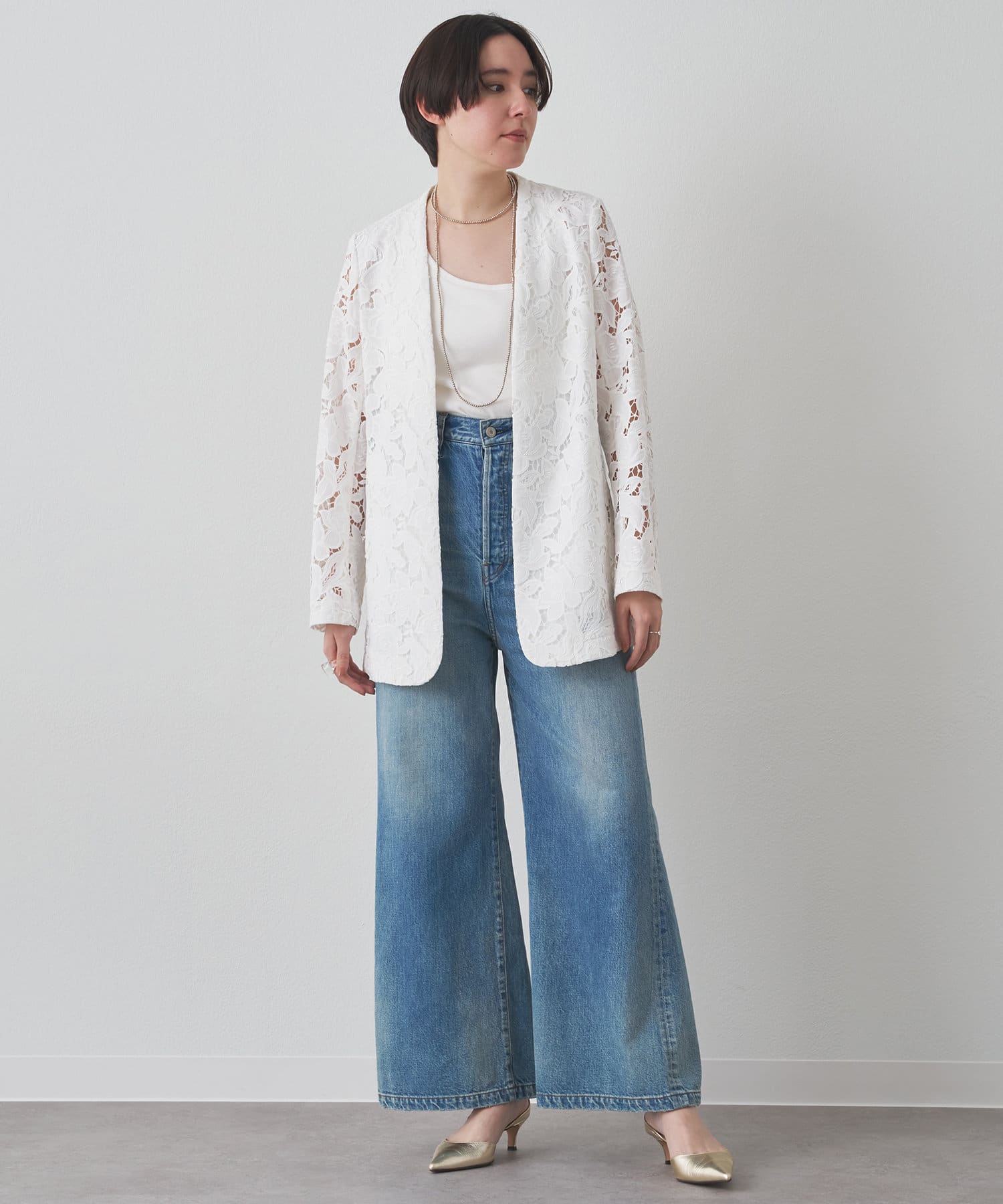 ■大柄のレース生地が目を惹くノーカラージャケット。