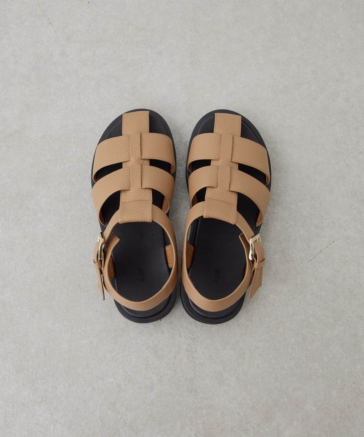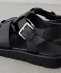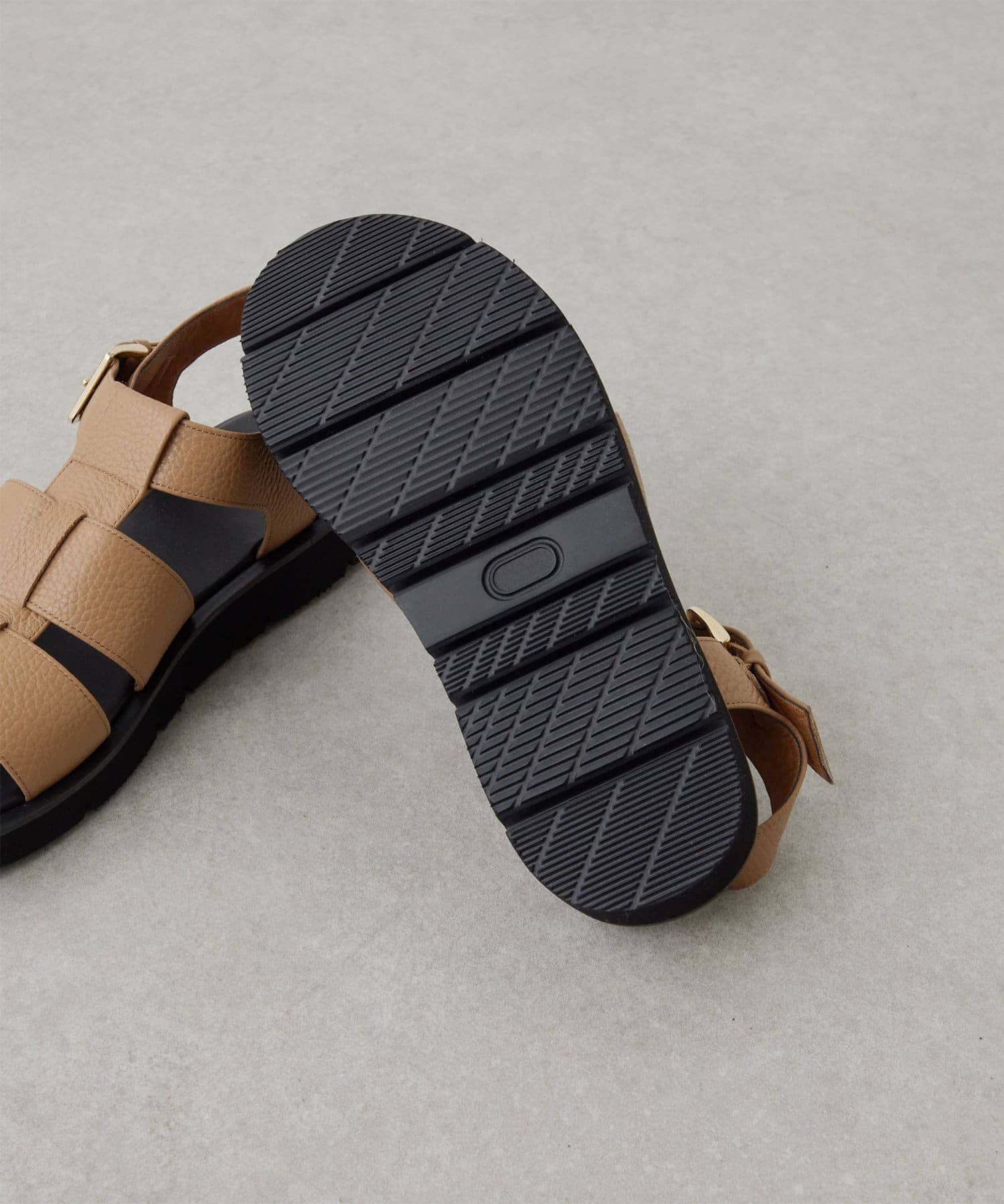 ■編み込まれたレザーと丸みのあるトゥが特徴のグルカサンダル。
