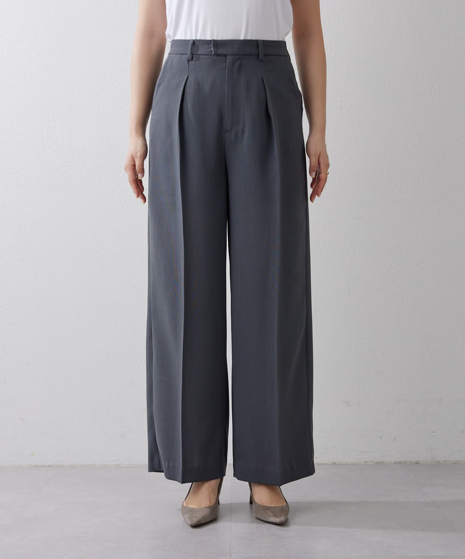 ■フロントタック入りのワイドシルエットにセンタープレスを施したスタイリッシュなデザイン。