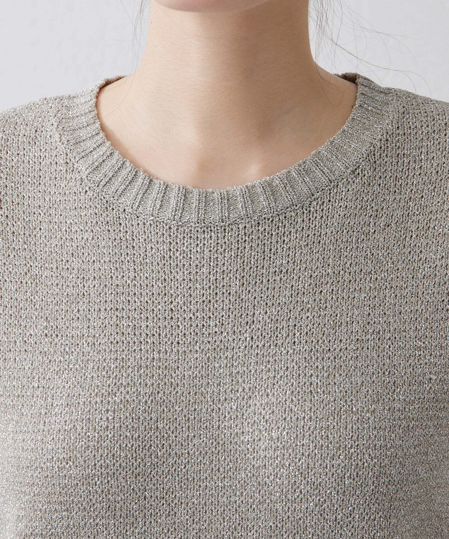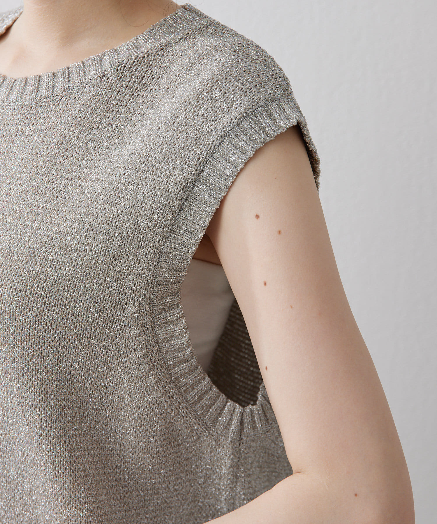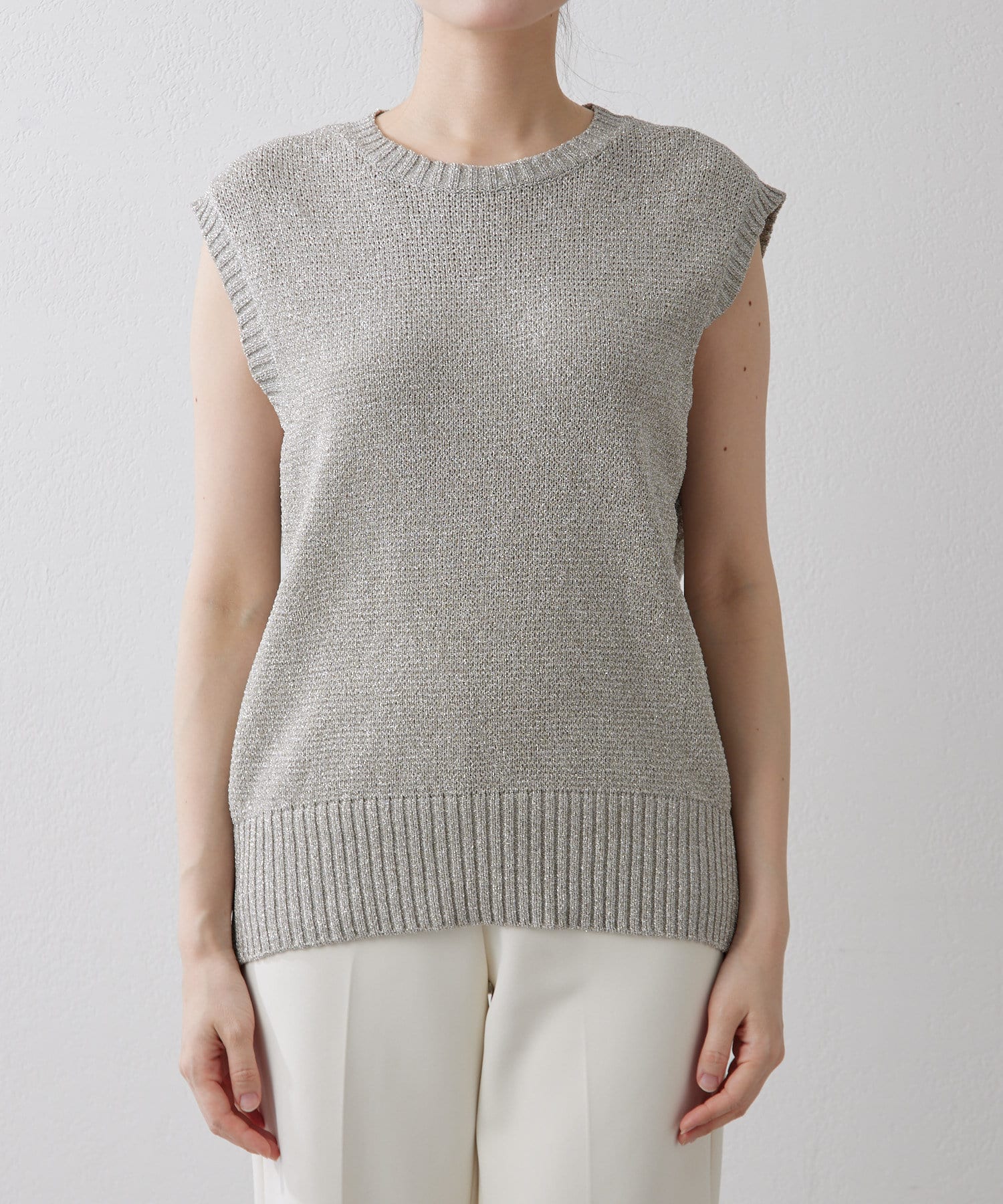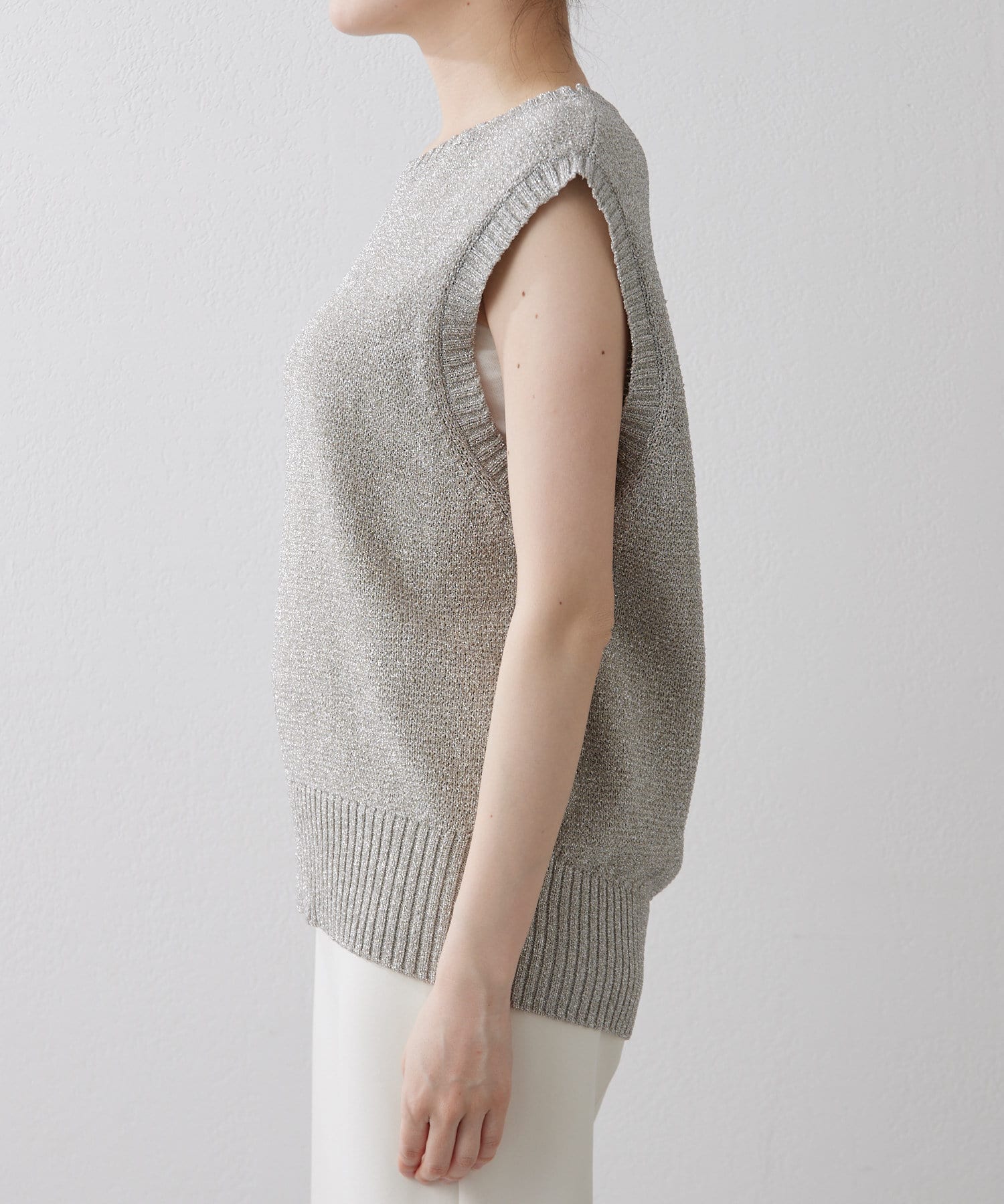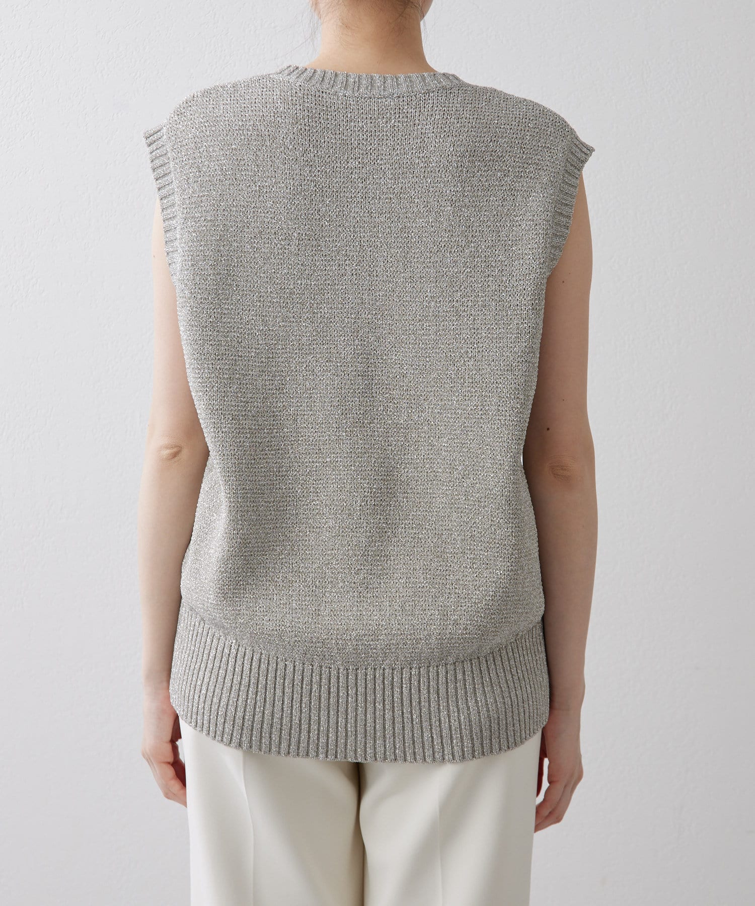 ■キラキラと輝くラメリリヤーン糸で編まれたノースリーブニット。