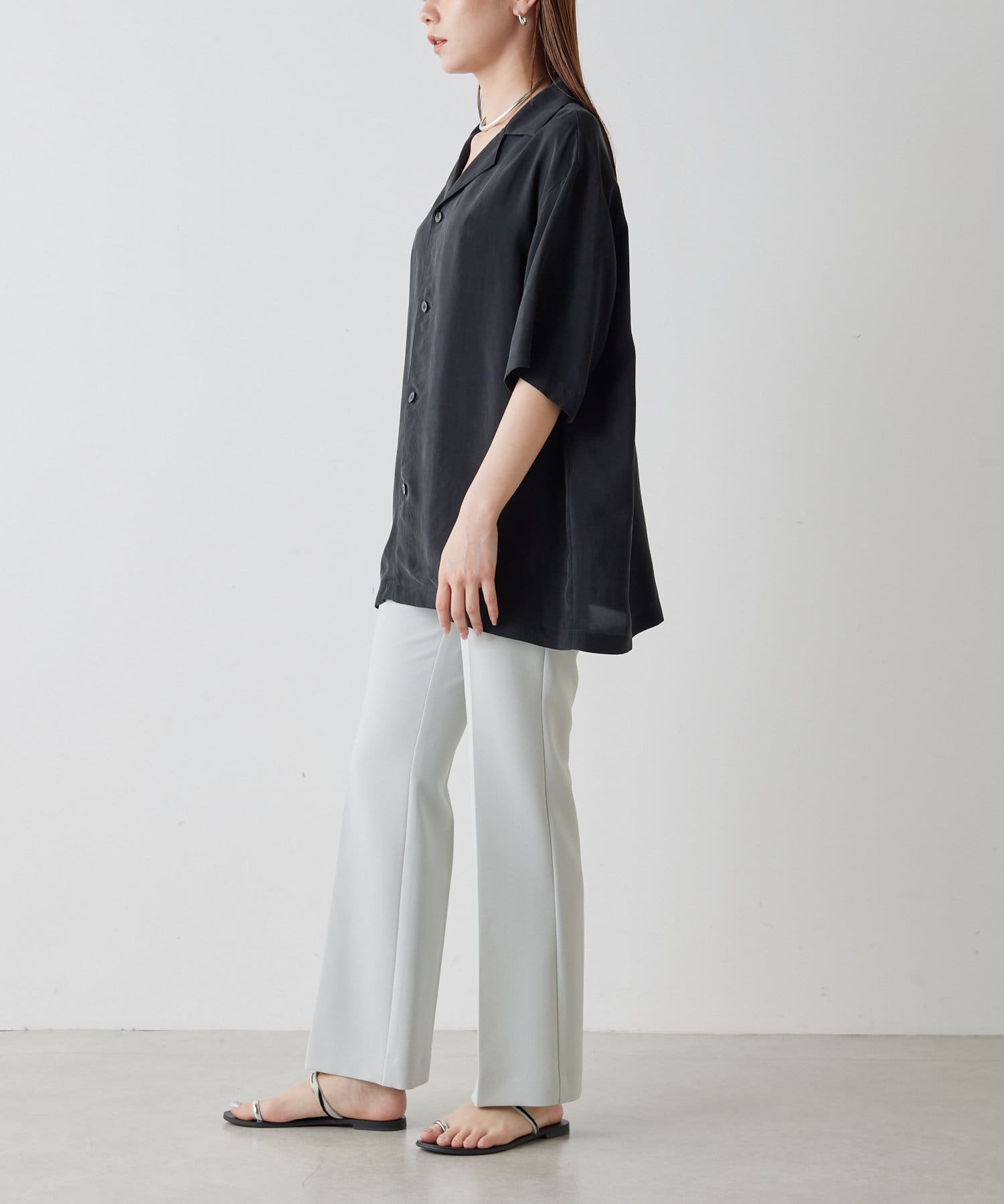 ■ダブルクロス素材で上品に仕上げられたソフトフレアパンツ。