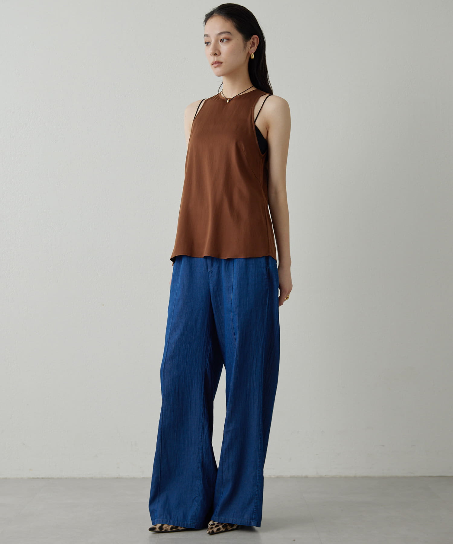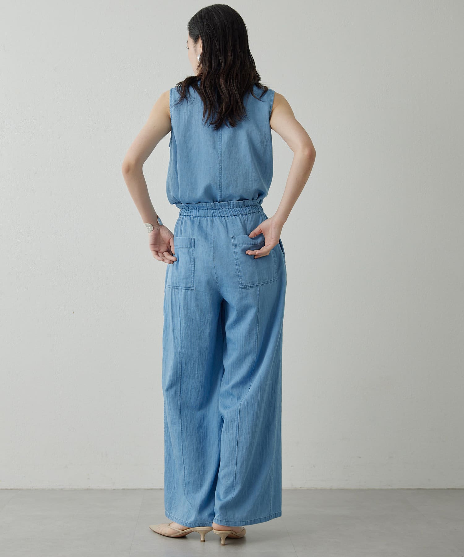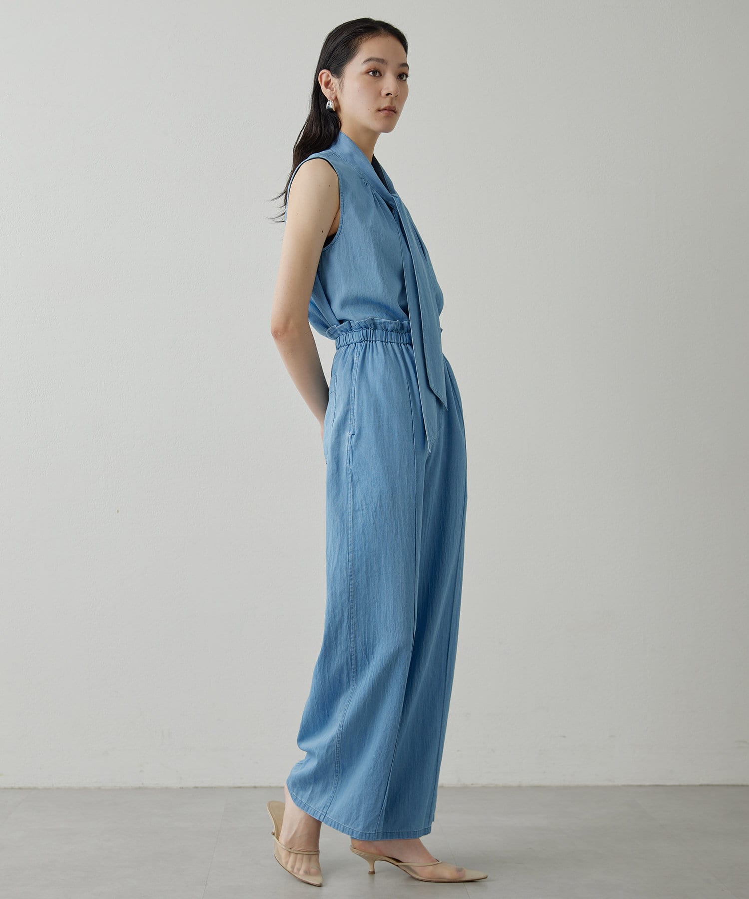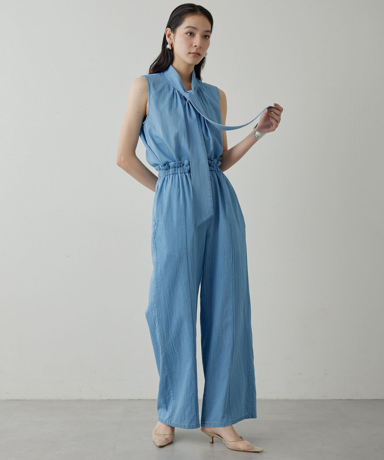 ■同素材のソフトデニムボウタイブラウス(ブランド品番:DNZ1051504A0001)とのセットアップもおすすめ。