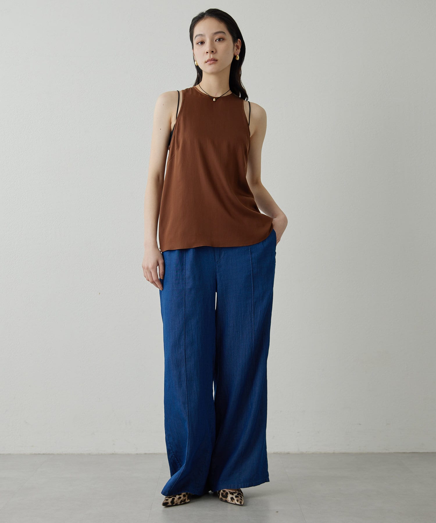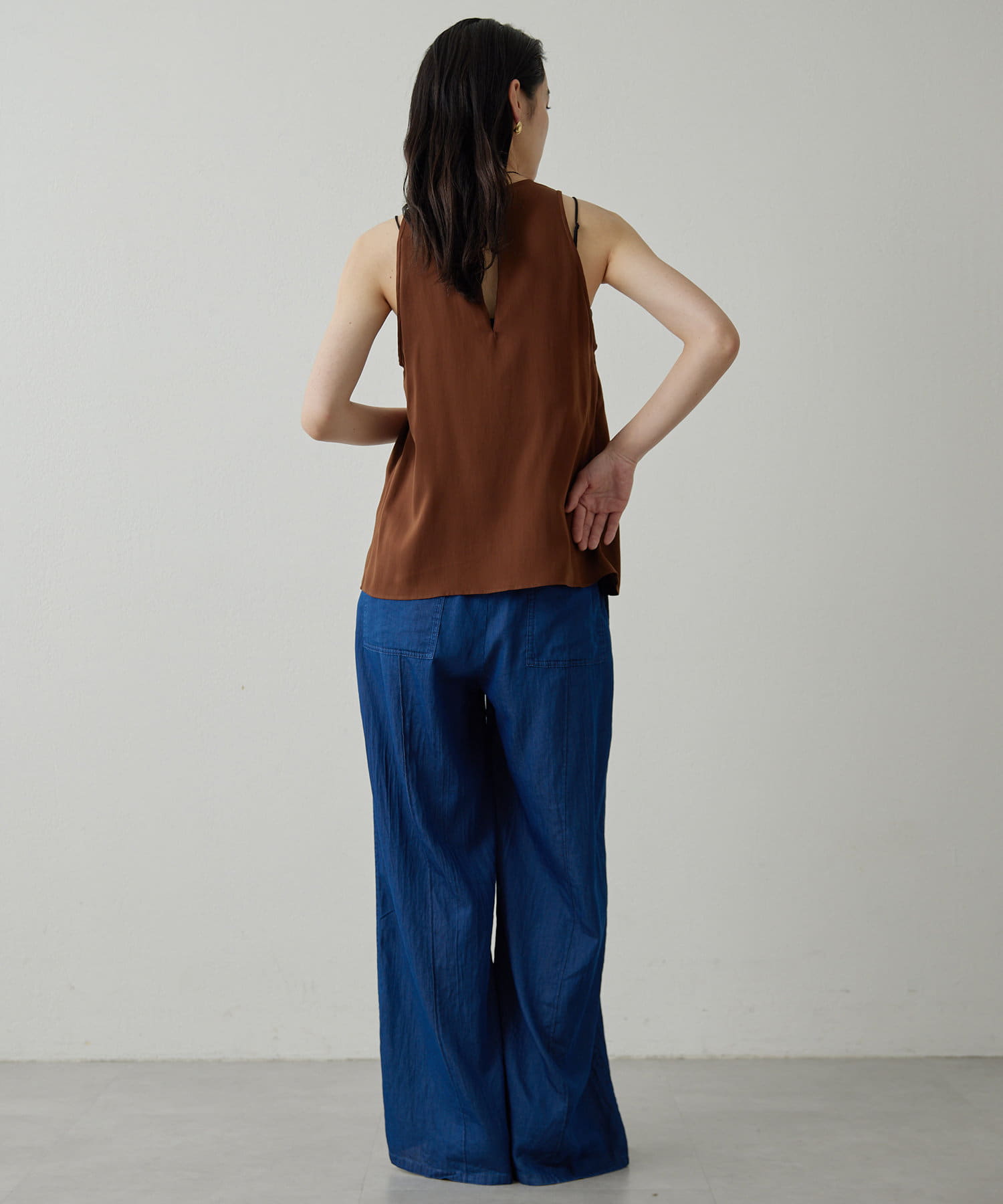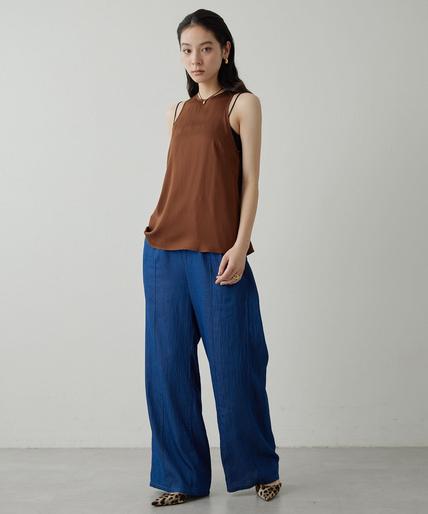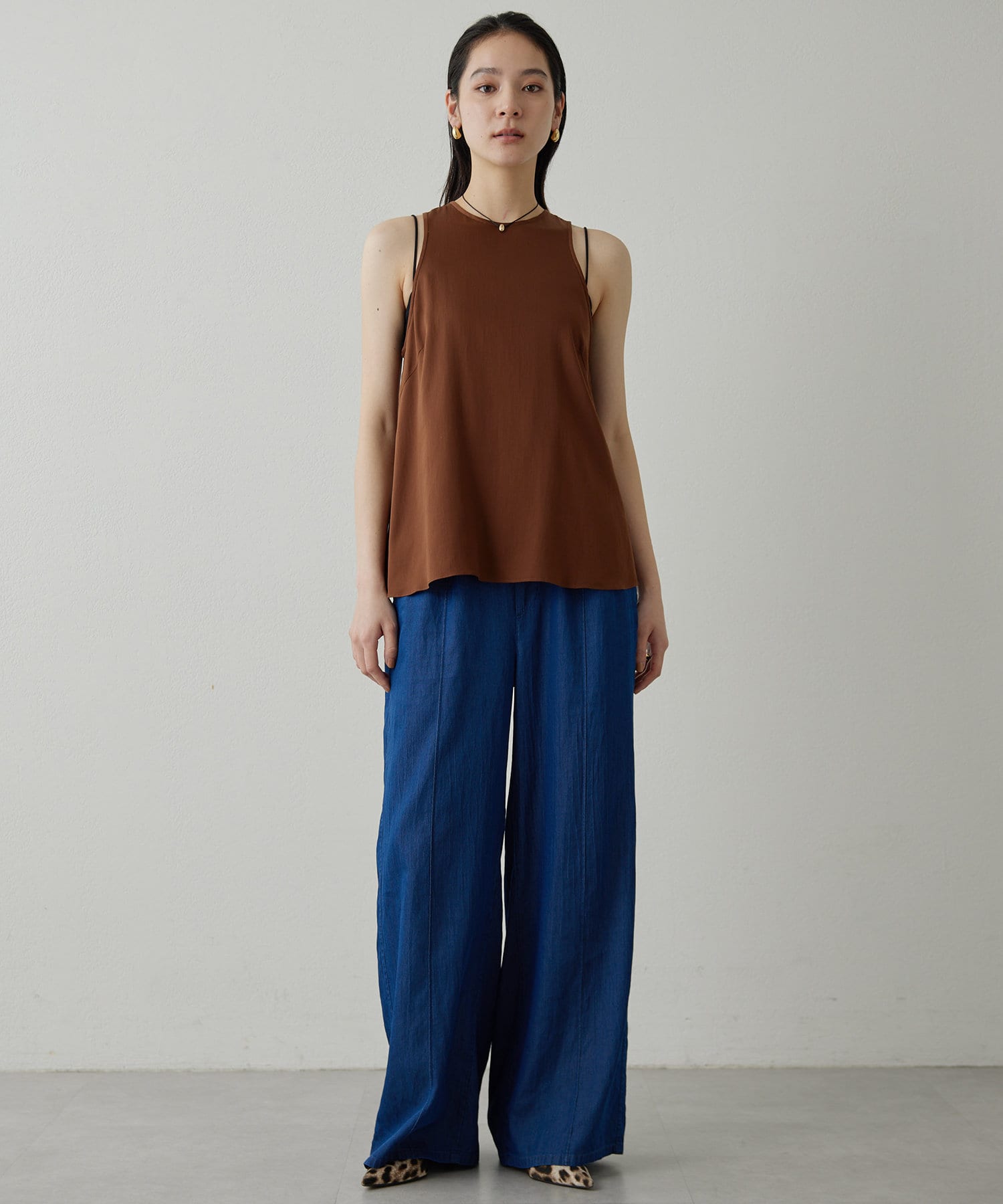 ■同素材のソフトデニムボウタイブラウス(ブランド品番:DNZ1051504A0001)とのセットアップもおすすめ。