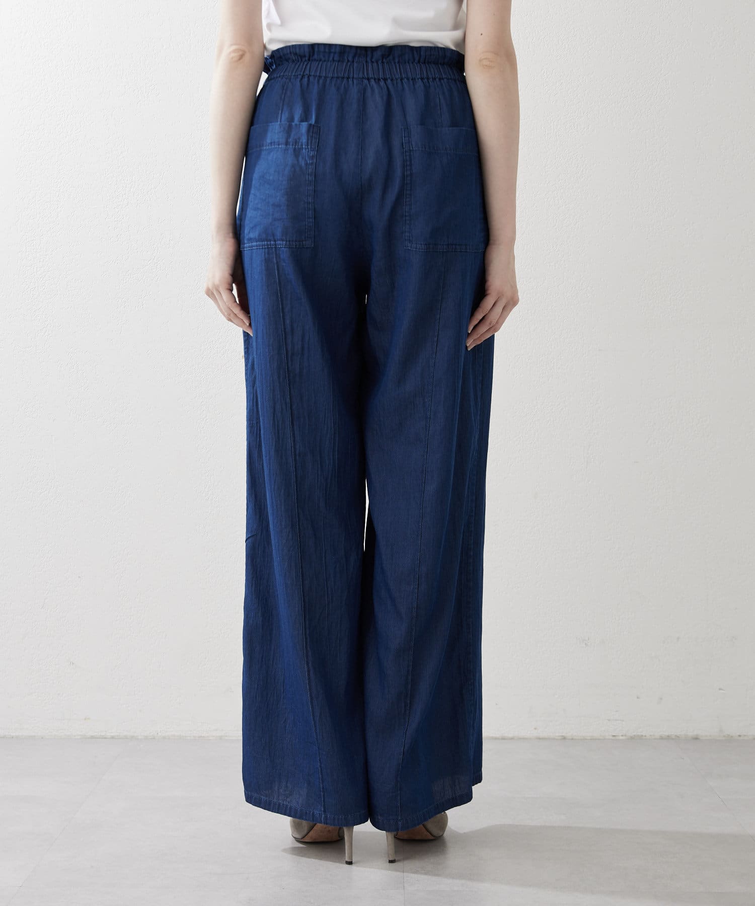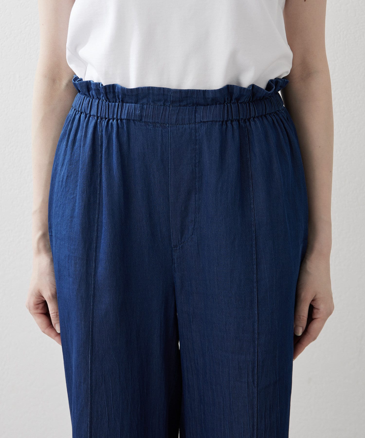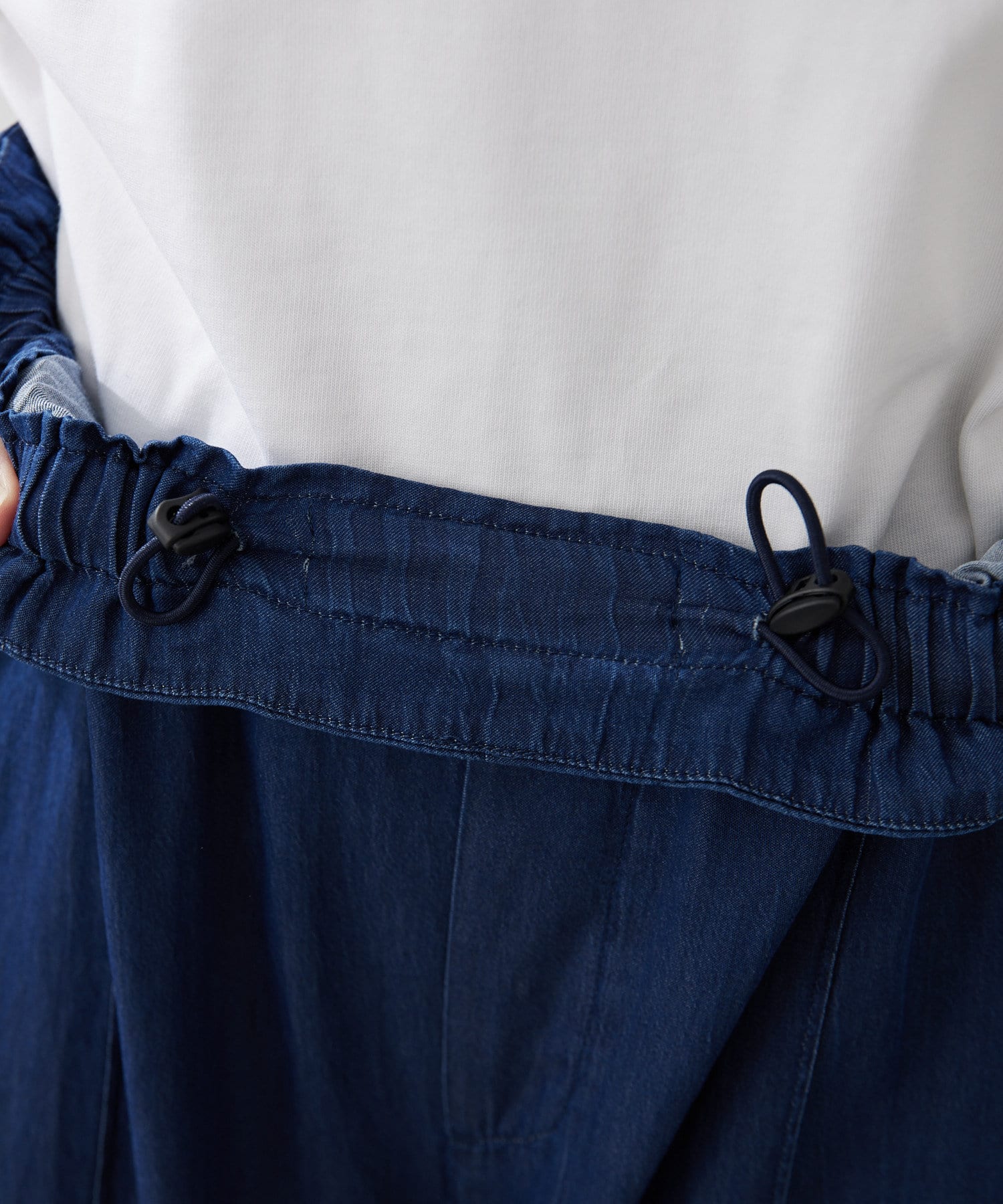 ■ウエストは平ゴムと内側のゴムスピンドルでサイズ感を調整できる気軽な仕様に。