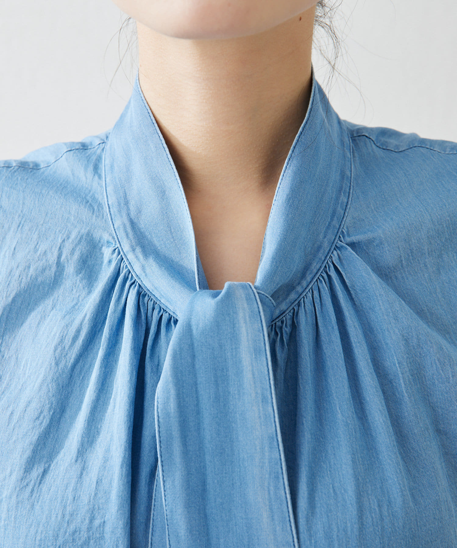 《セットアップ対応可》ソフトデニムボウタイブラウス
