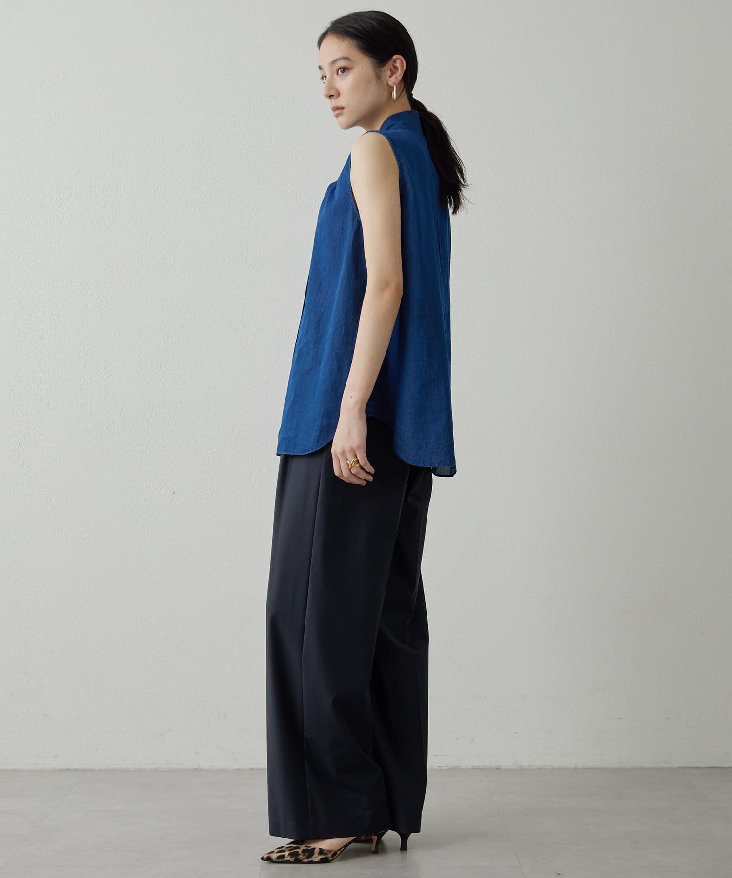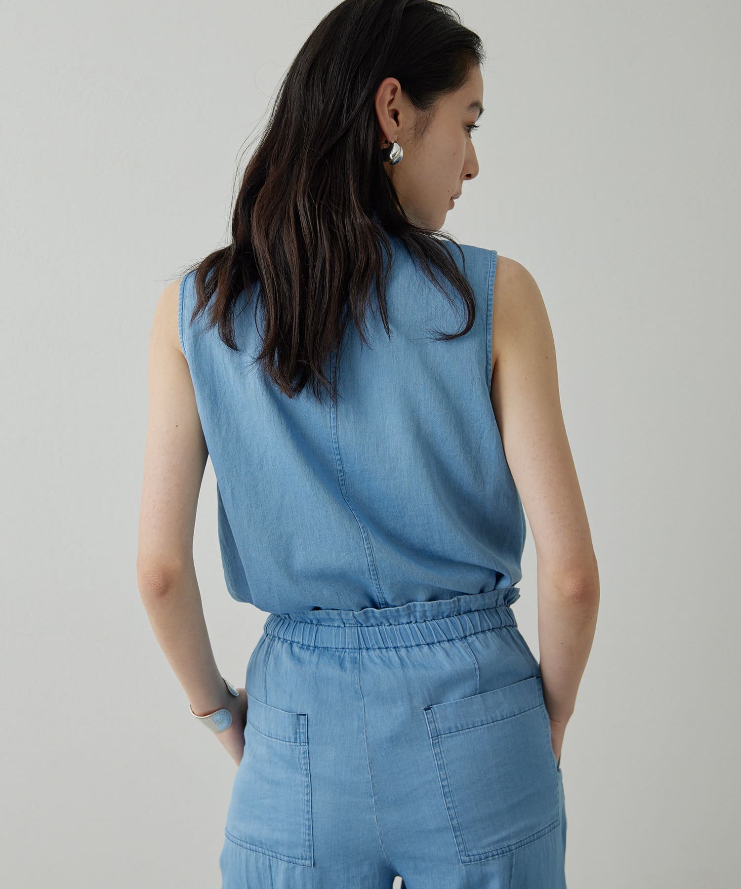 ■軽やかな生地やスリーブレスデザインが嬉しく、暑い季節も涼しくデニムスタイルを楽しめるアイテム。