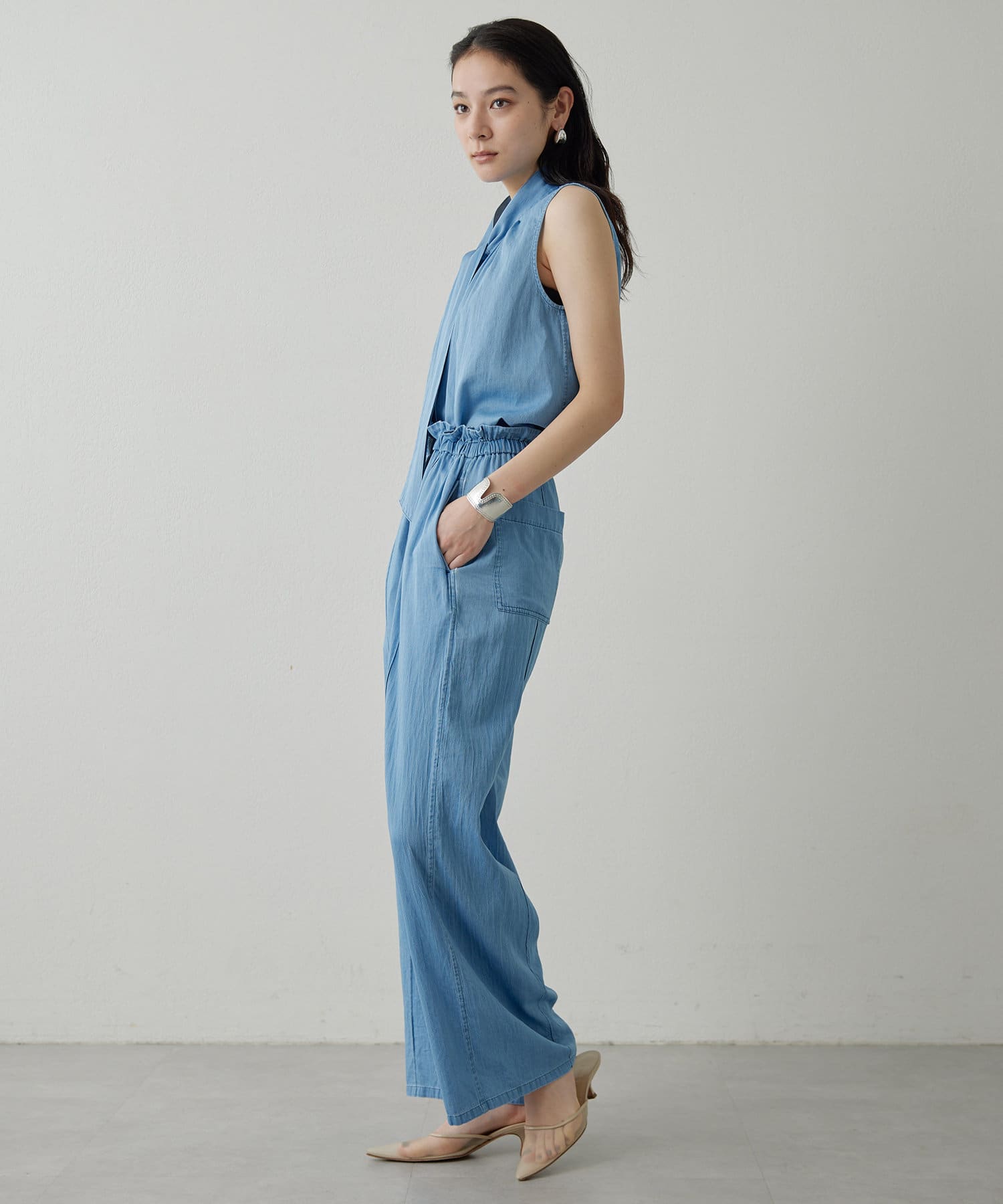 ■同素材のソフトデニムワイドパンツ(ブランド品番:DNZ1051503A0001)とのセットアップもおすすめ。