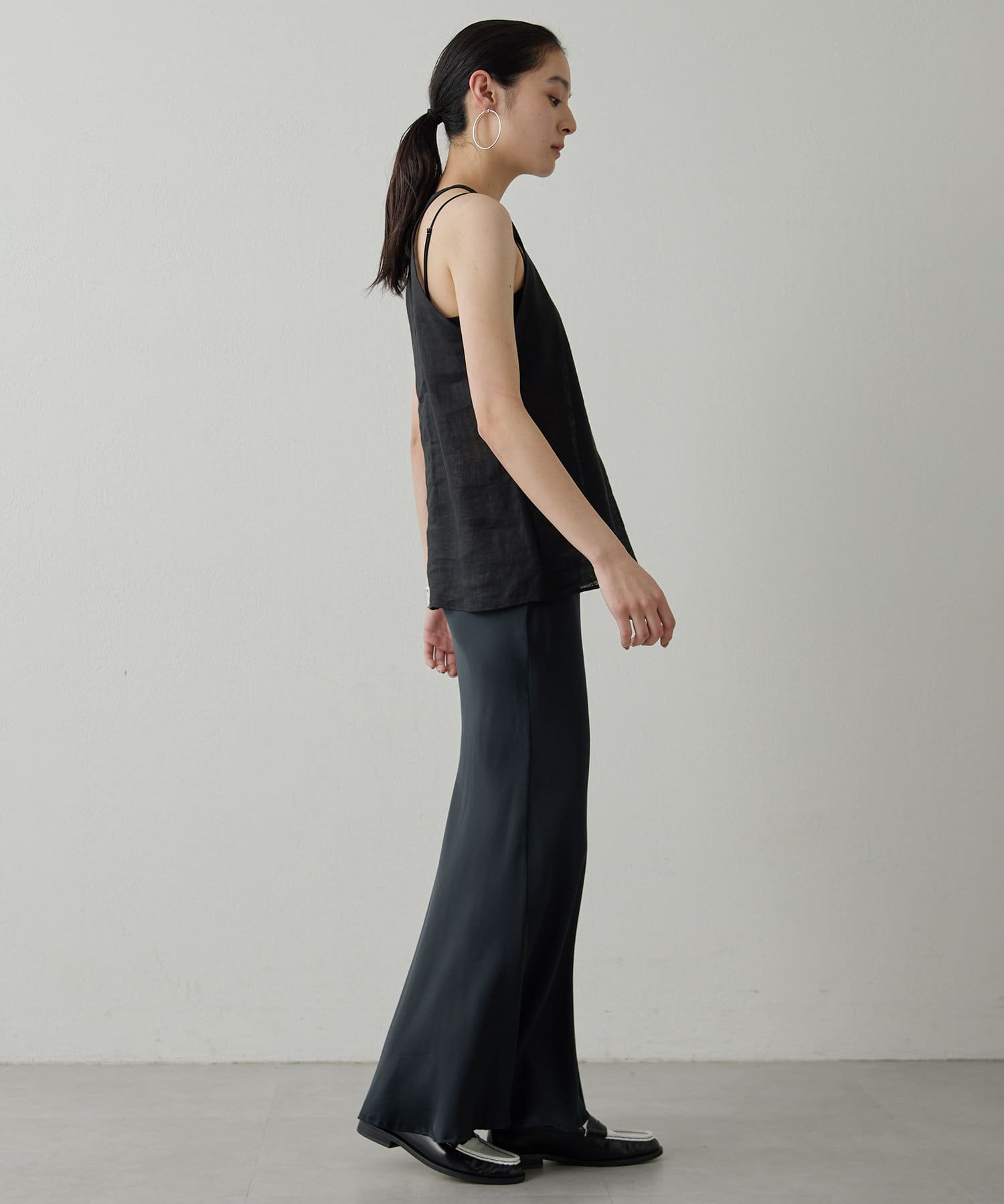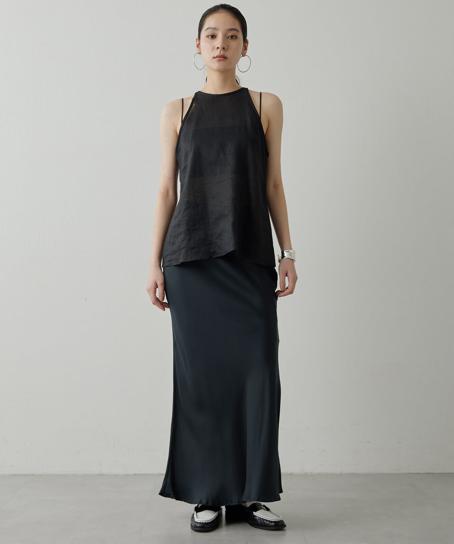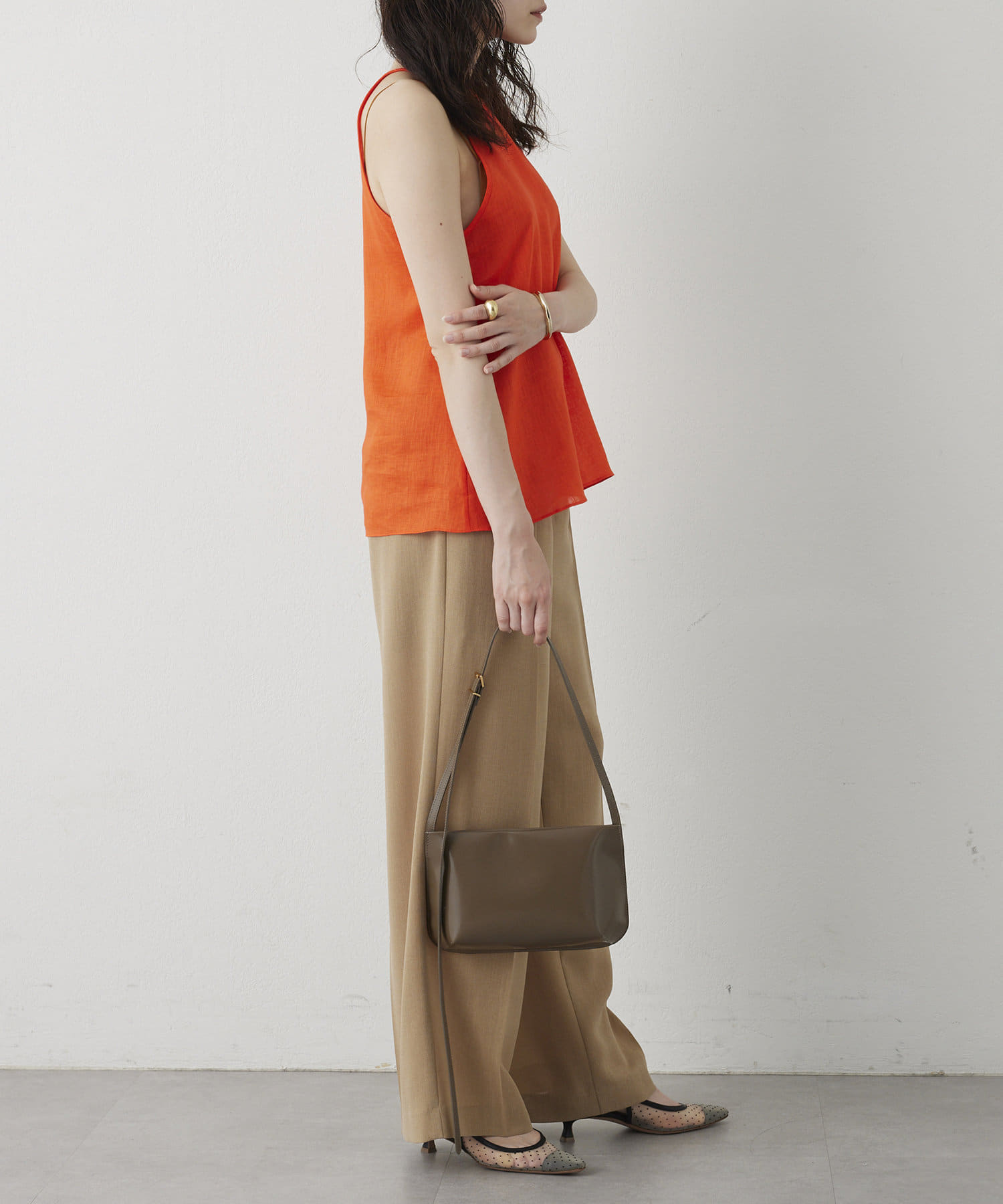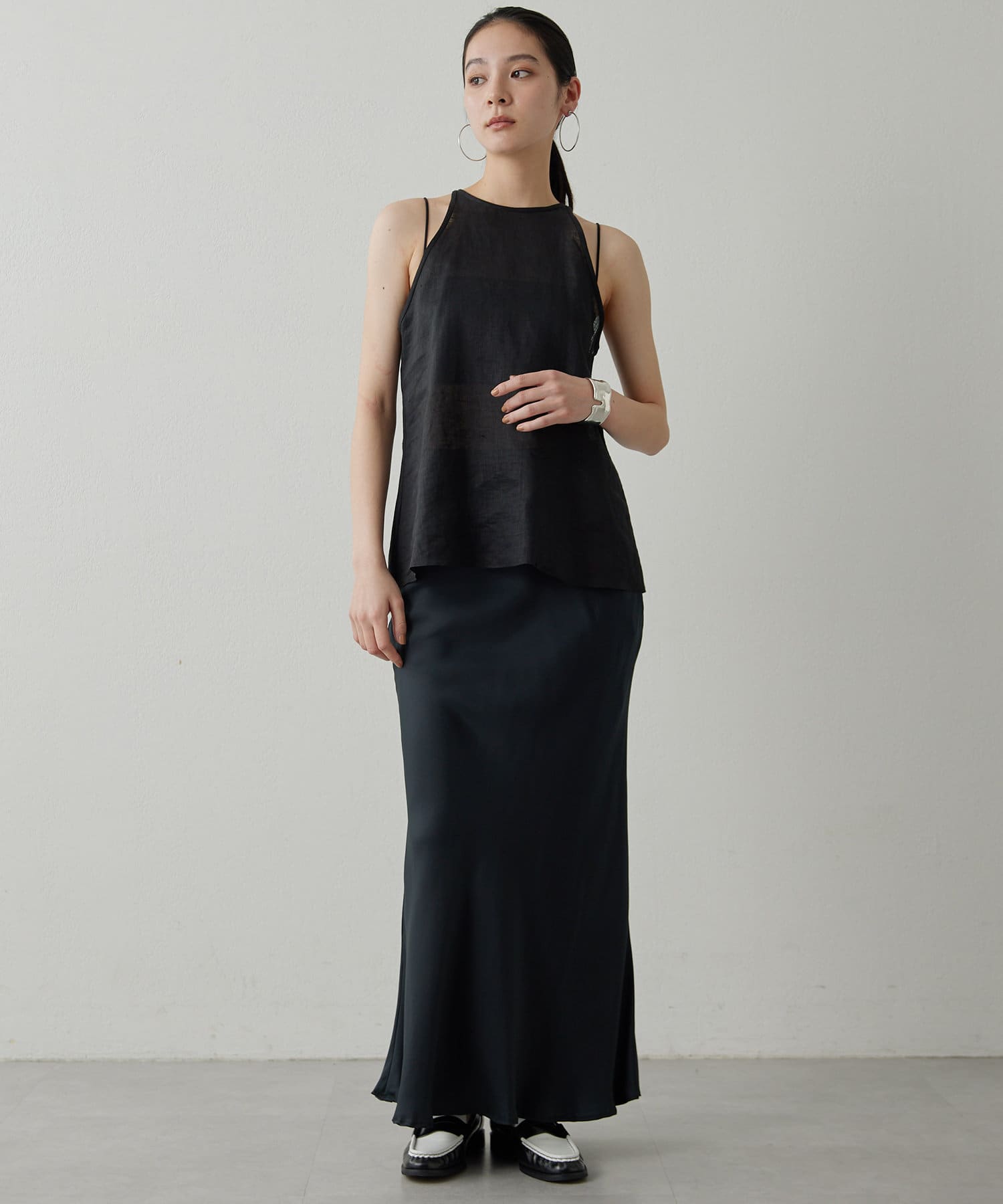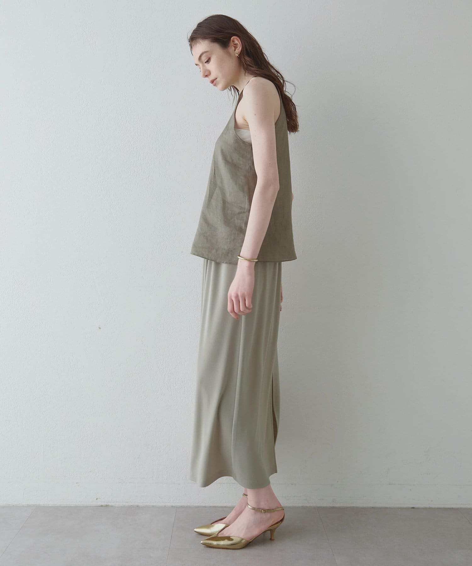 定番の平織りリネンで1枚でも活躍するホルターブラウス