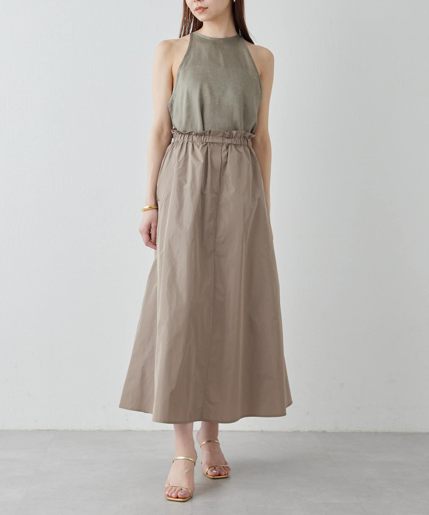 ■Aラインのフレアシルエットが女性らしいホルターブラウス。
