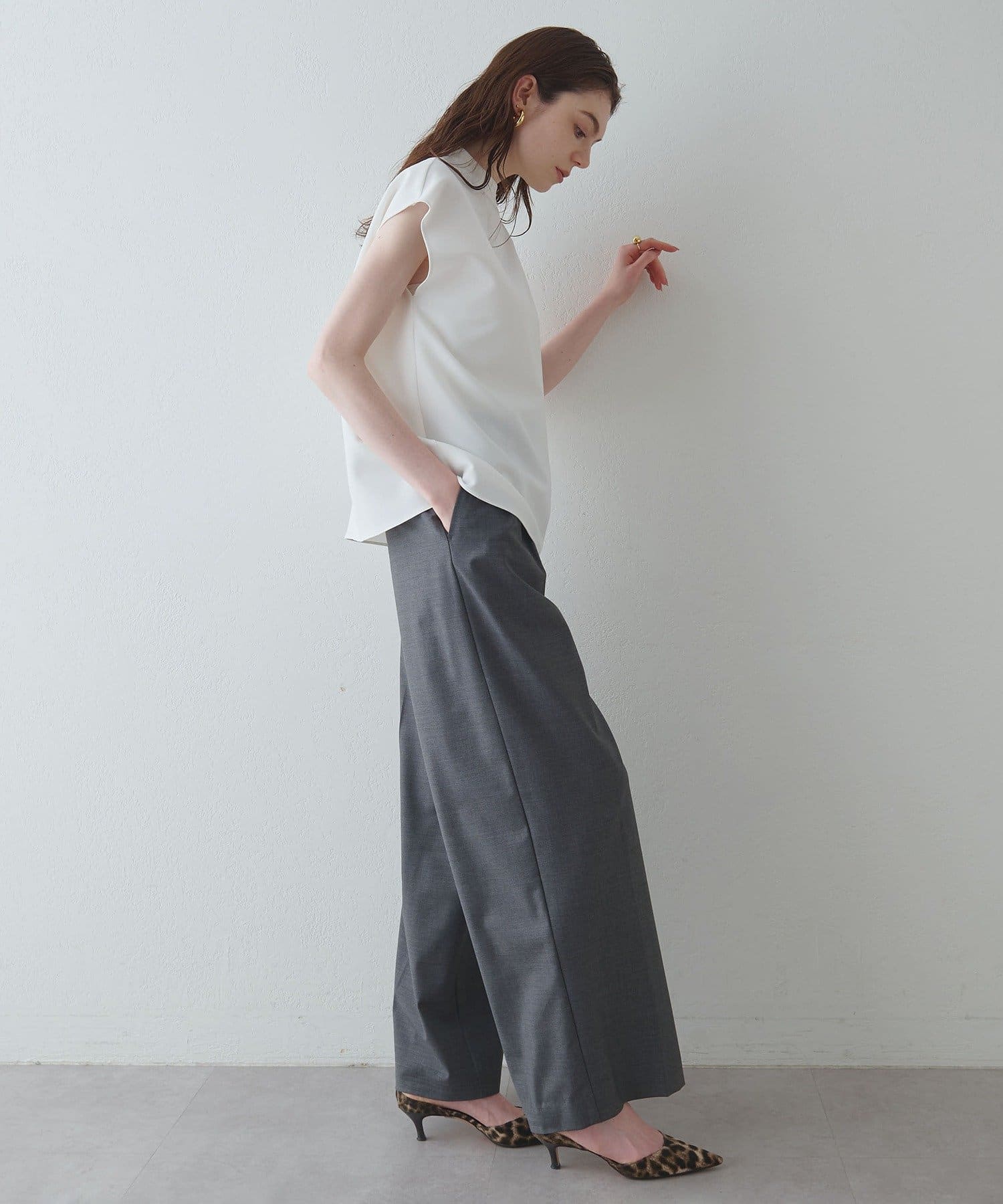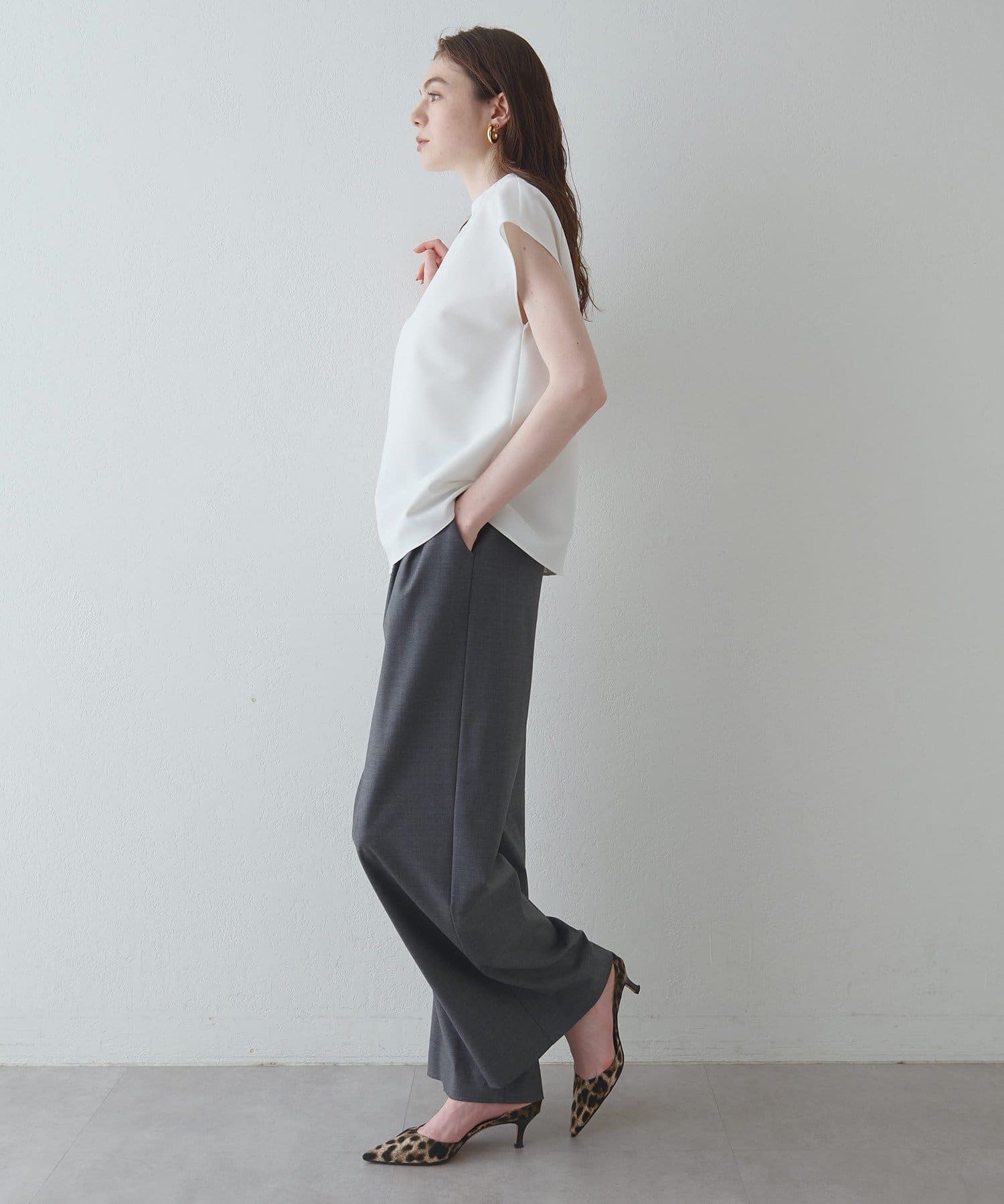 ■同素材のダブルクロスソフトフレアパンツ(ブランド品番:DNZ1051502A0002)とのセットアップもおすすめ。
