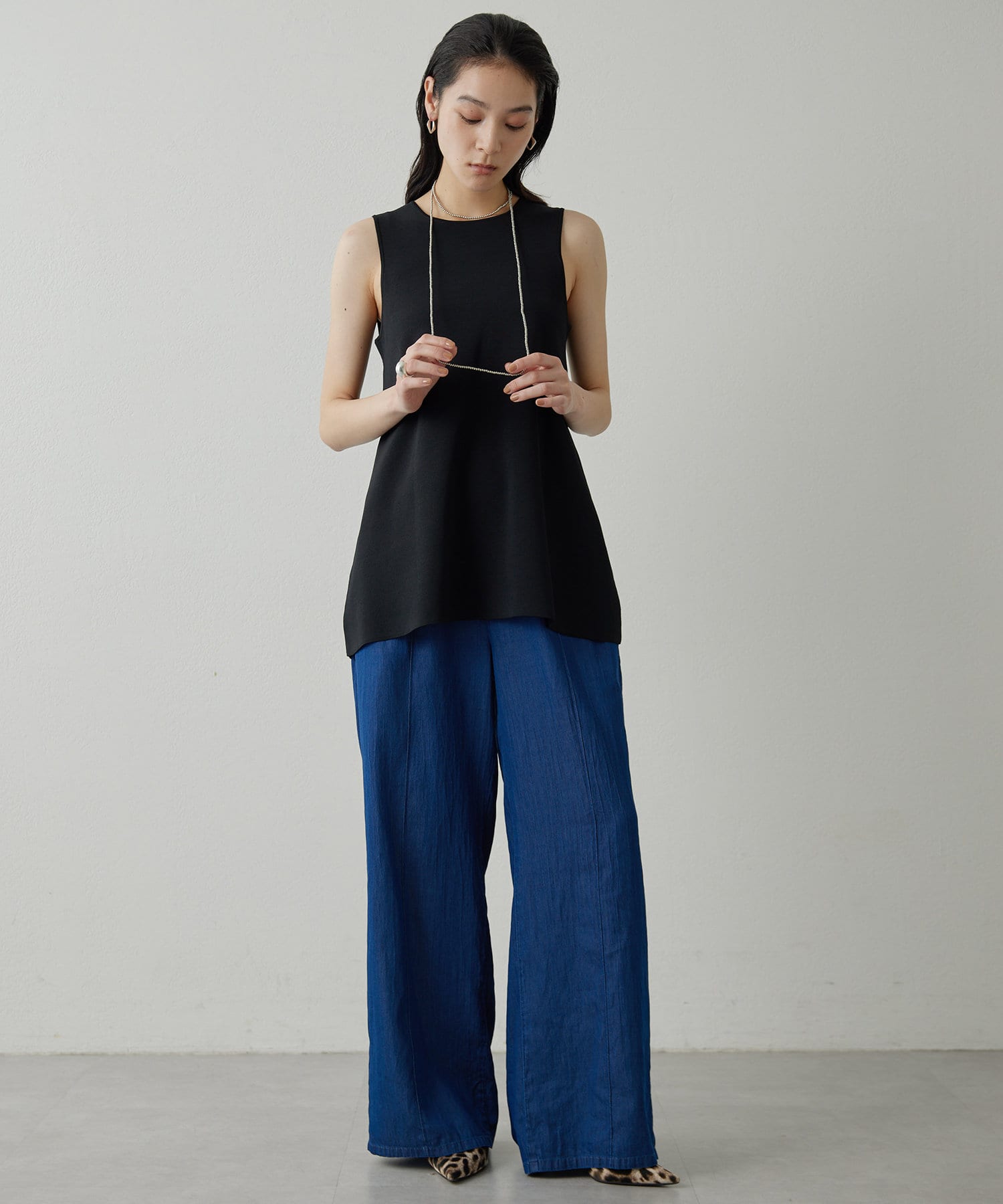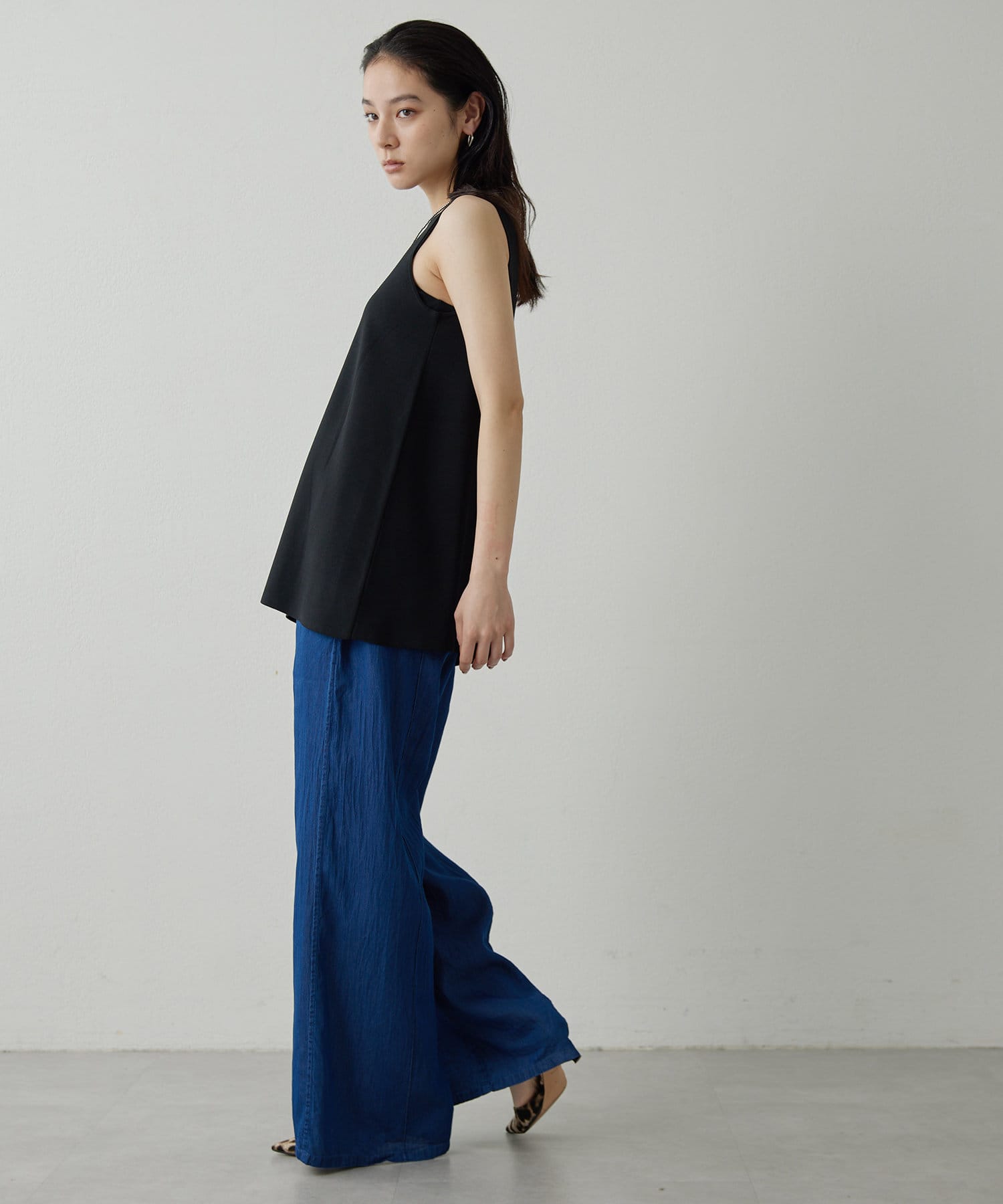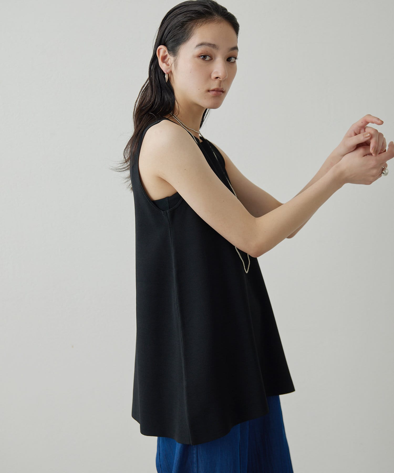■Aラインのフレアシルエットが女性らしいニットタンクトップ。
