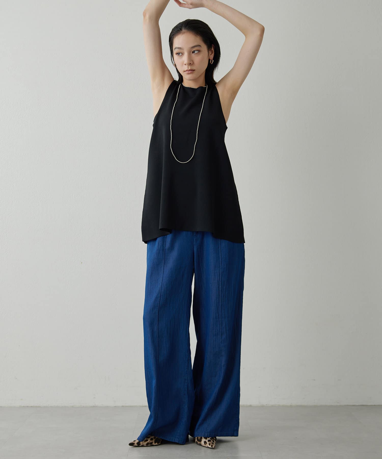■程よいハリ感と落ち感があり馴染みが良く、レーヨン混のツヤのある表情できれいめな印象に。