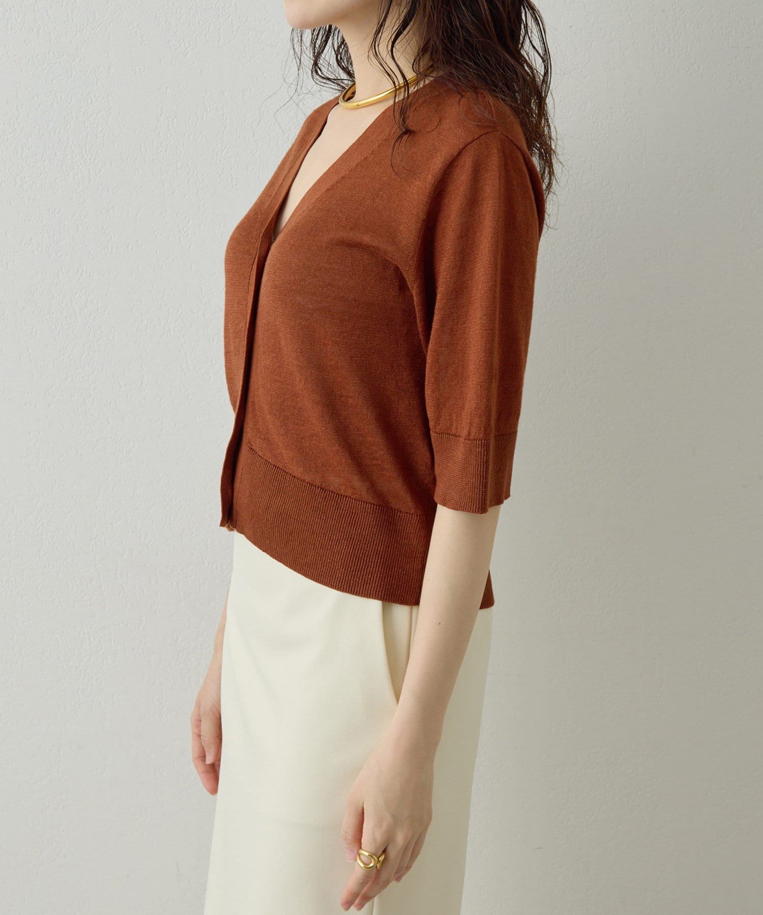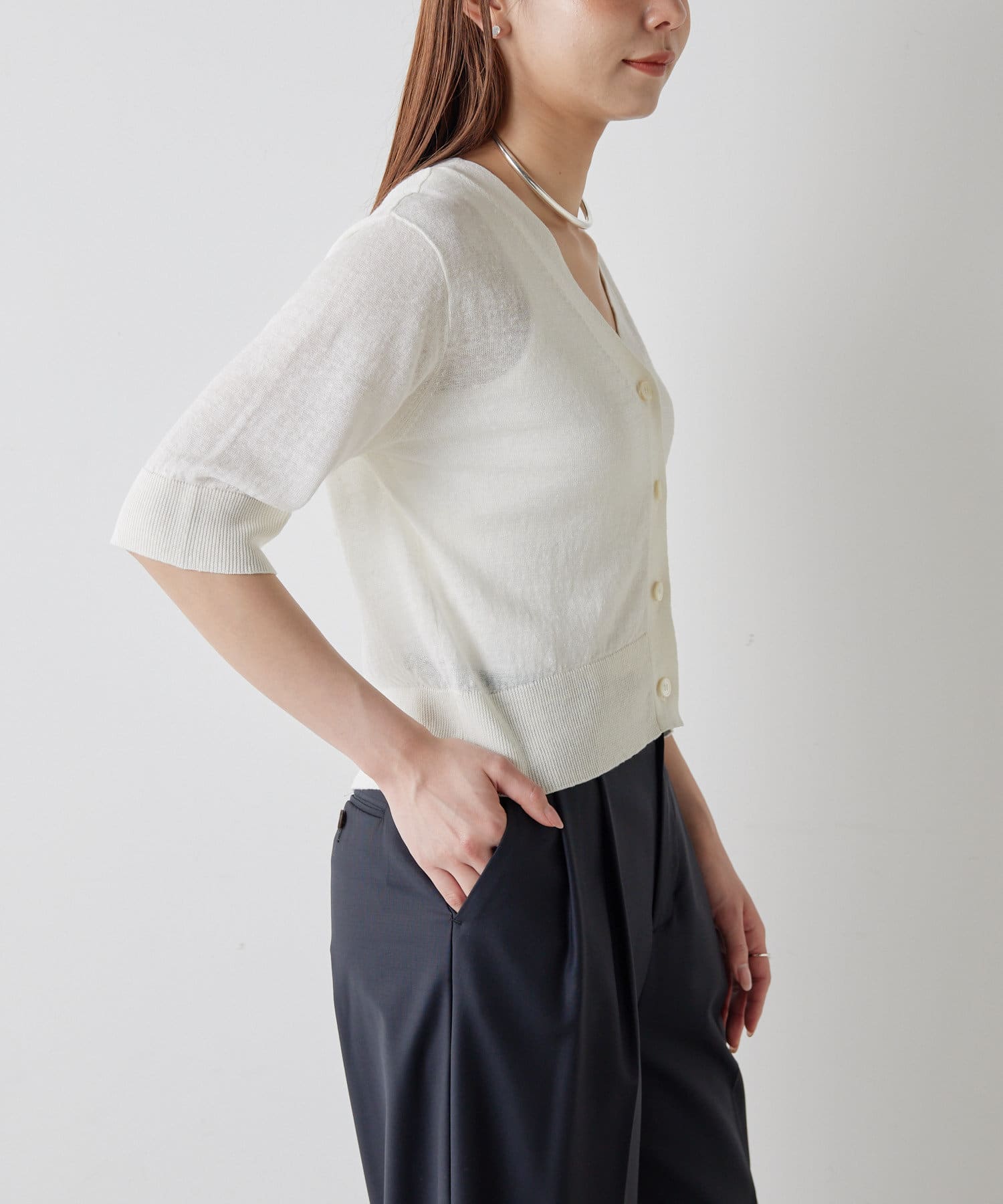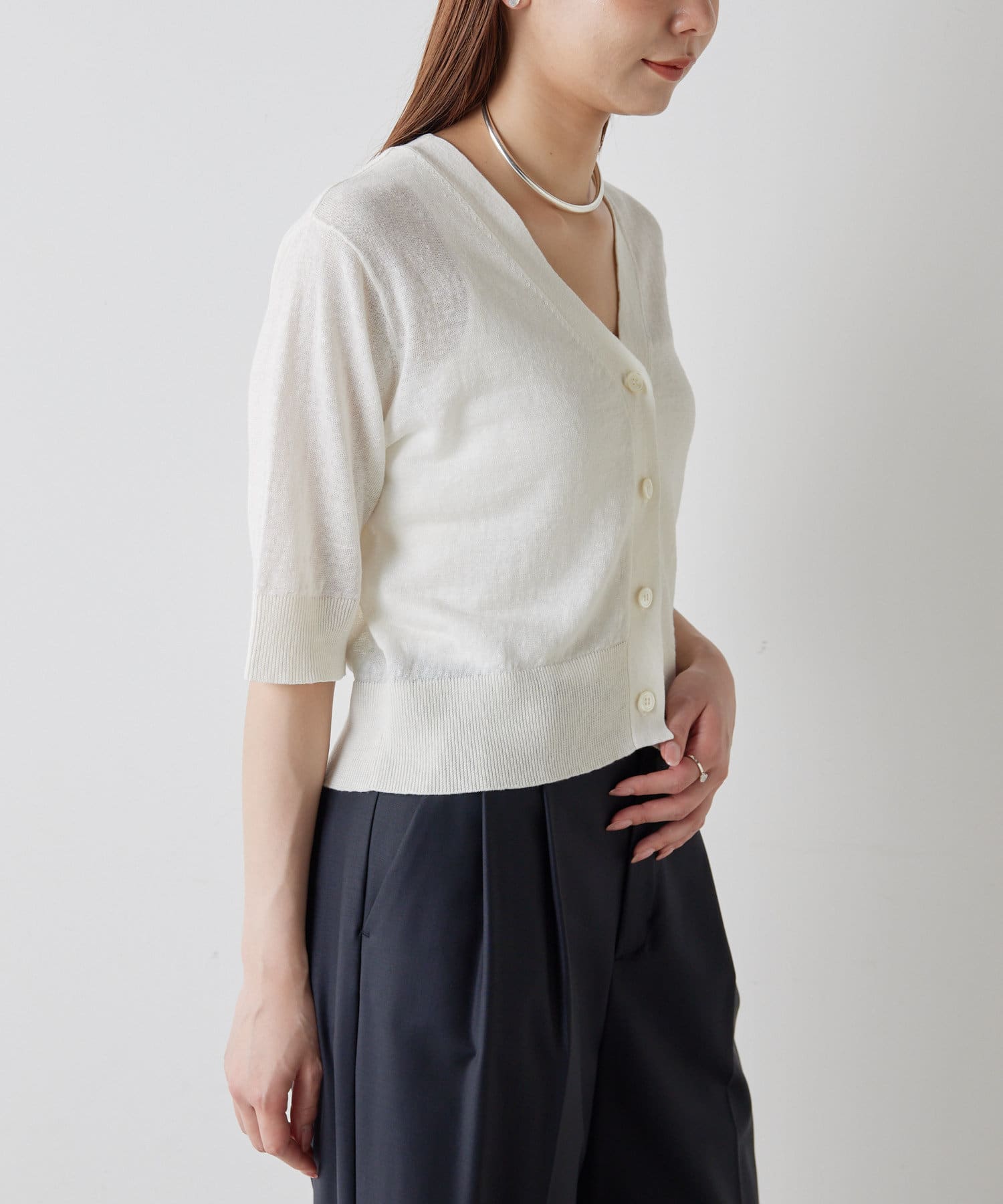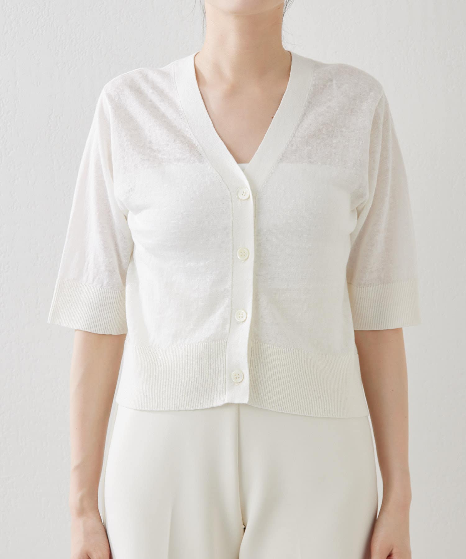 すっきりと爽やかに楽しめる、コンパクトなリネンカーデ